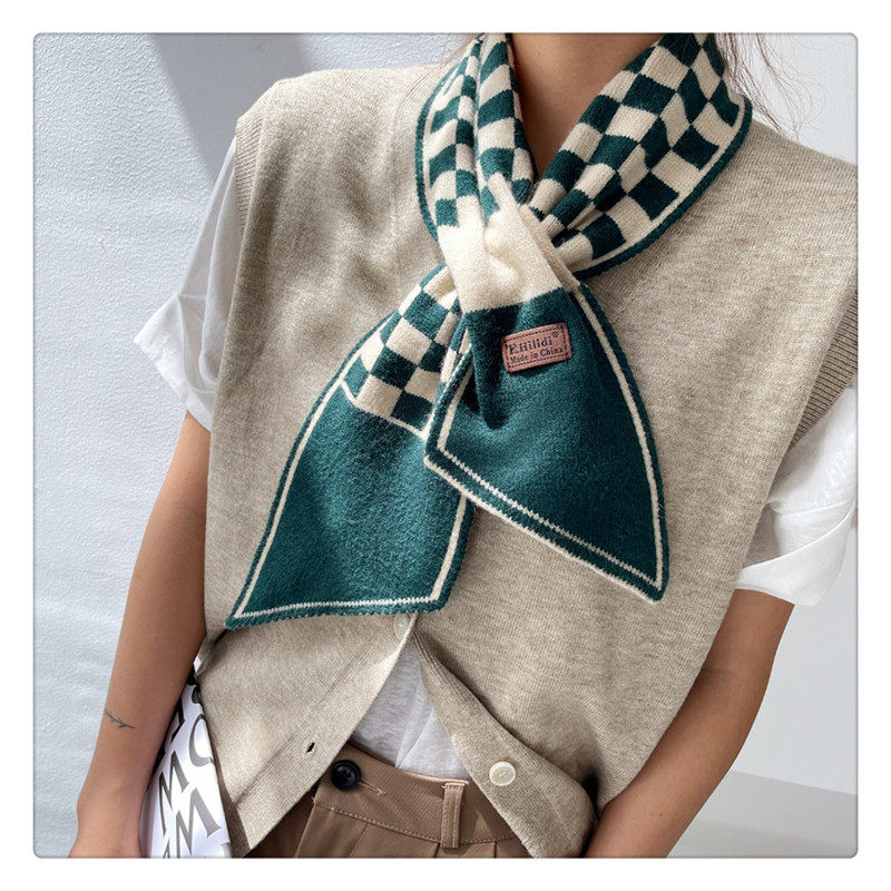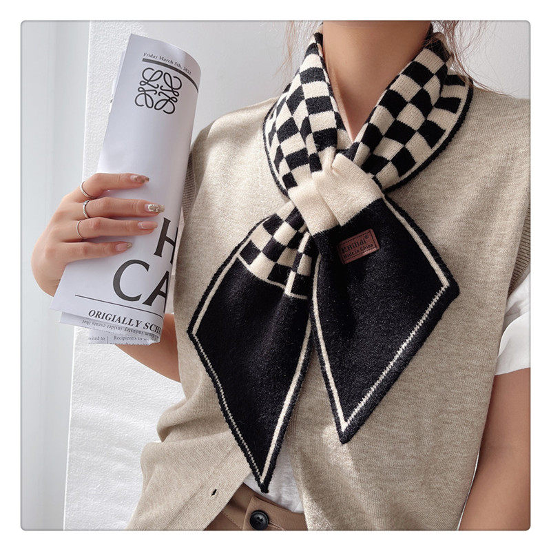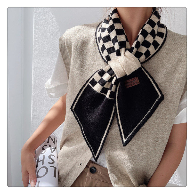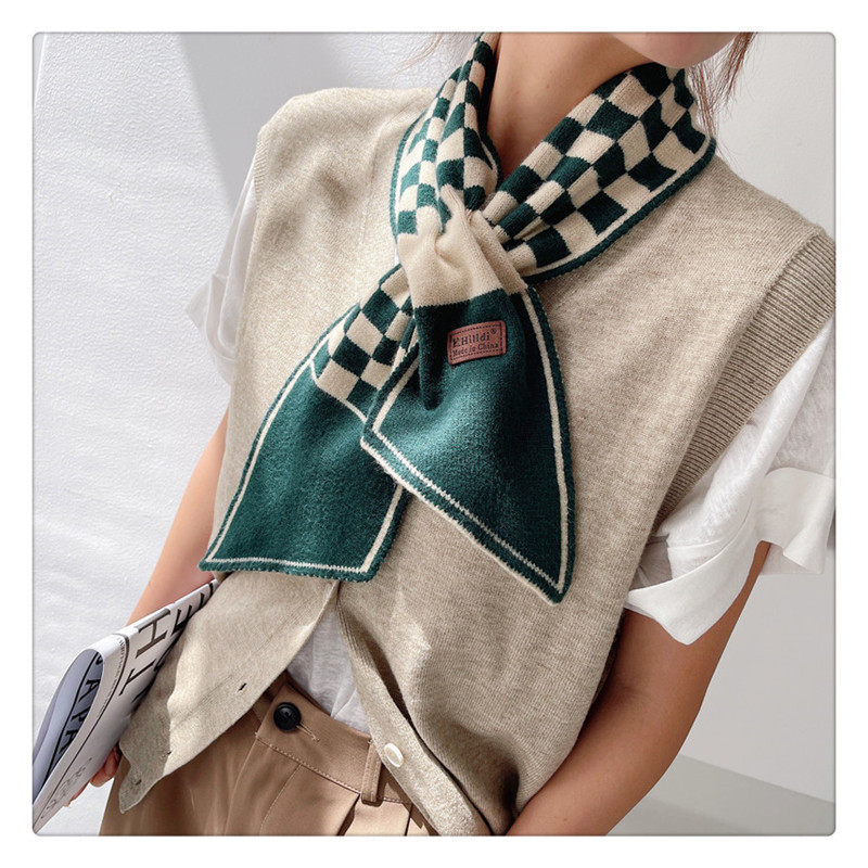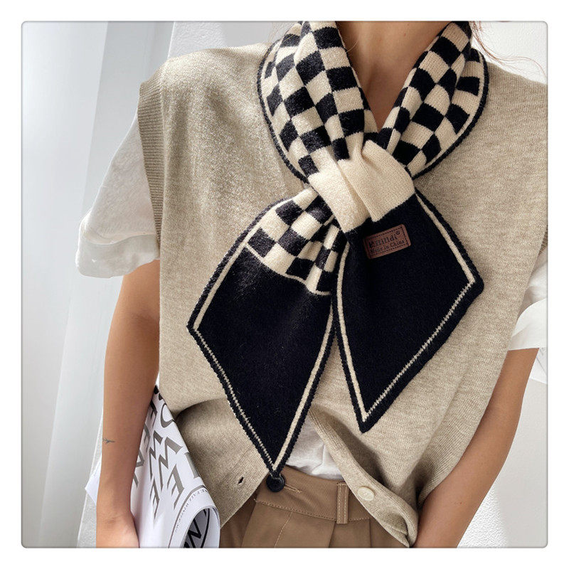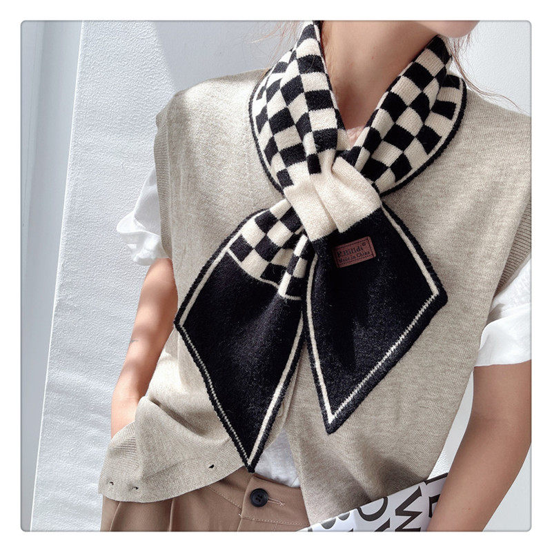 Демисезонный универсальный шарф, удерживающие тепло трикотажные короткие шахматы, в корейском стиле, с защитой шеи