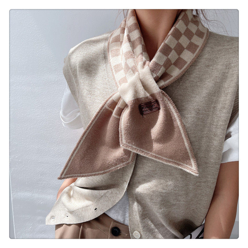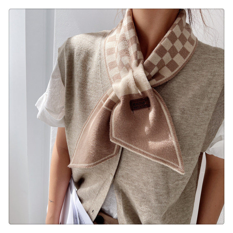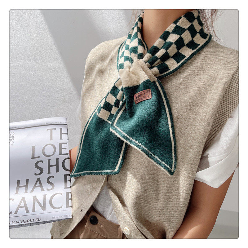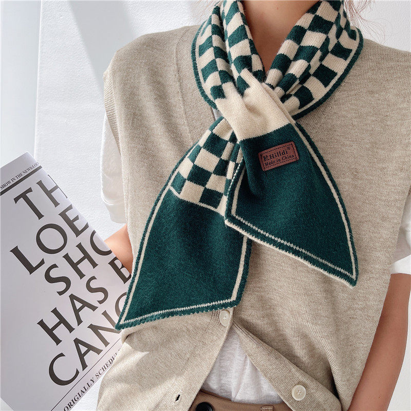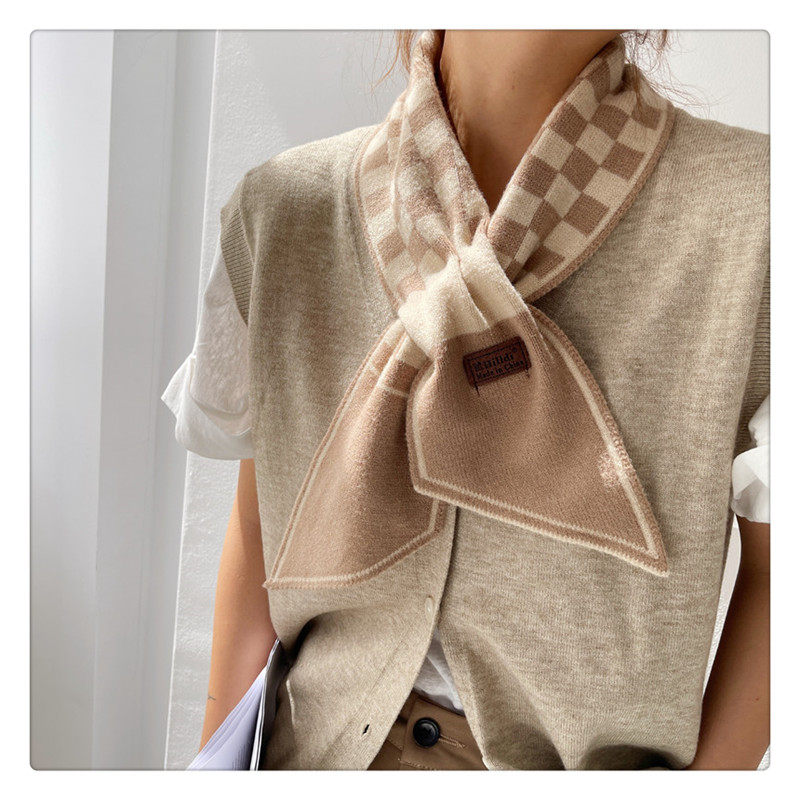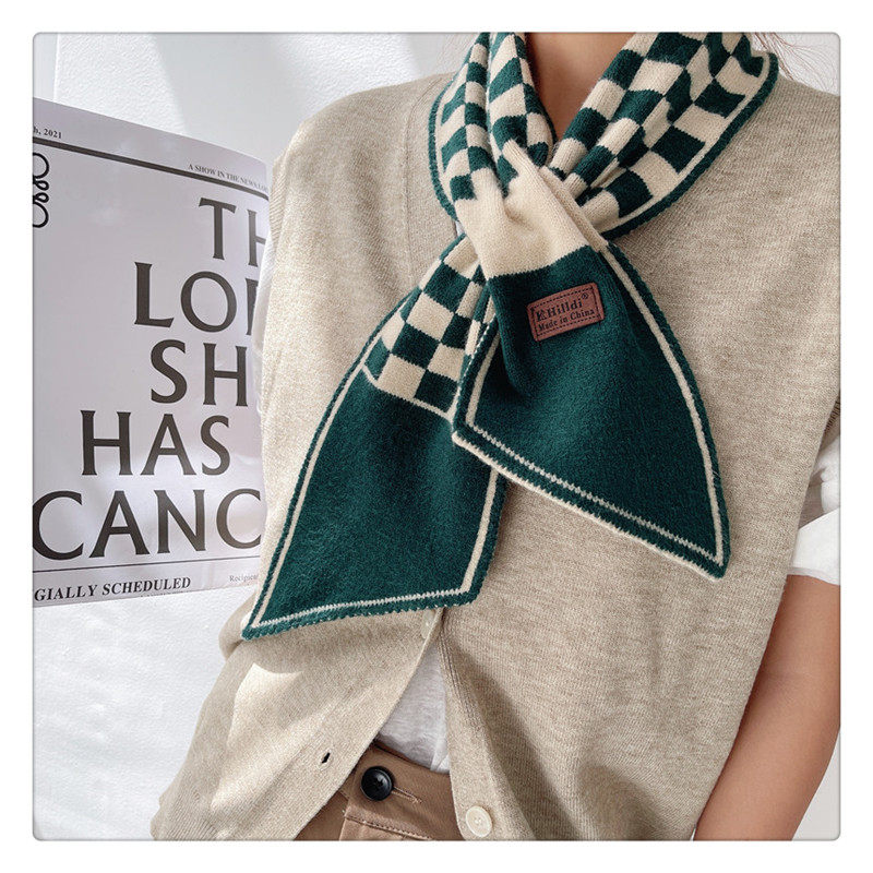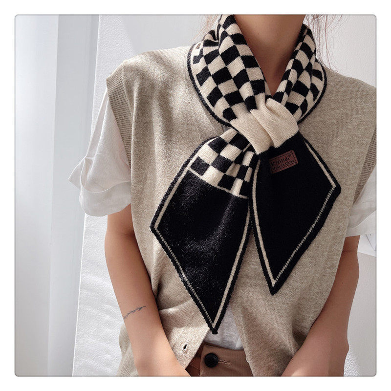 Демисезонный универсальный шарф, удерживающие тепло трикотажные короткие шахматы, в корейском стиле, с защитой шеи