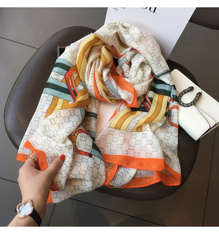 Южнокорейский демисезонный товар, универсальная накидка, шарф с буквами, из хлопка и льна