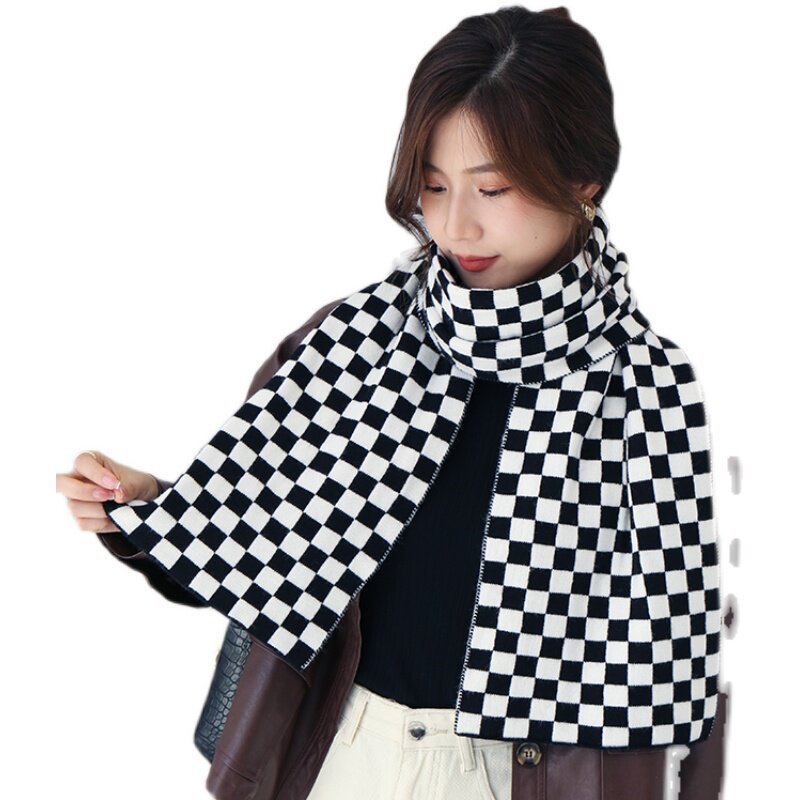 Шахматы, демисезонный удерживающий тепло брендовый универсальный модный шарф для школьников и студентов, японская версия, популярно в интернете