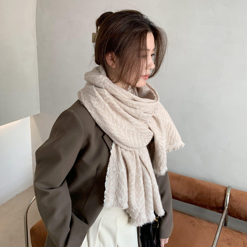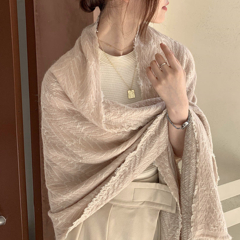 Белая демисезонная тонкая накидка, универсальный удерживающий тепло шарф, в корейском стиле