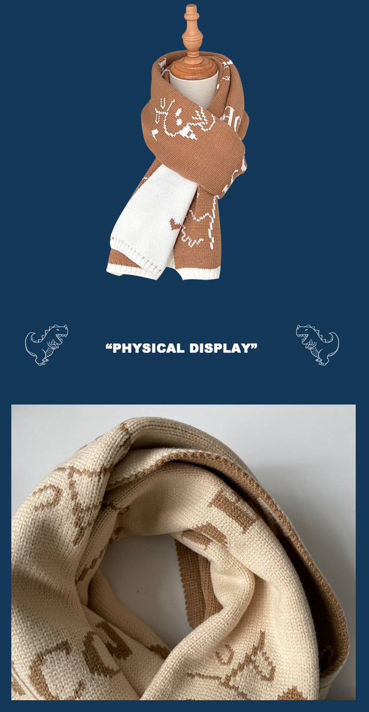 Милый мультяшный динозавр, демисезонный утепленный короткий универсальный шарф для школьников, в корейском стиле
