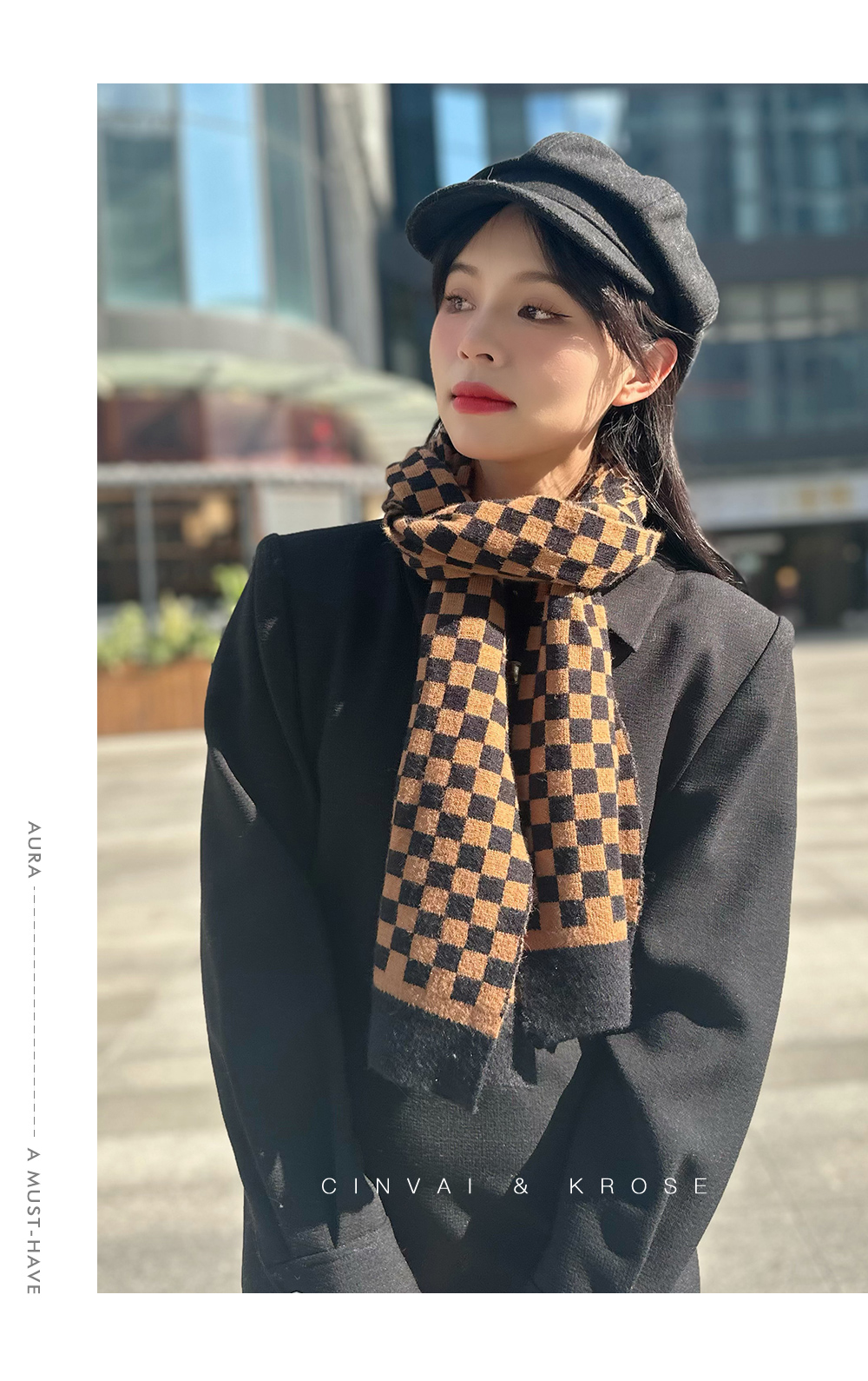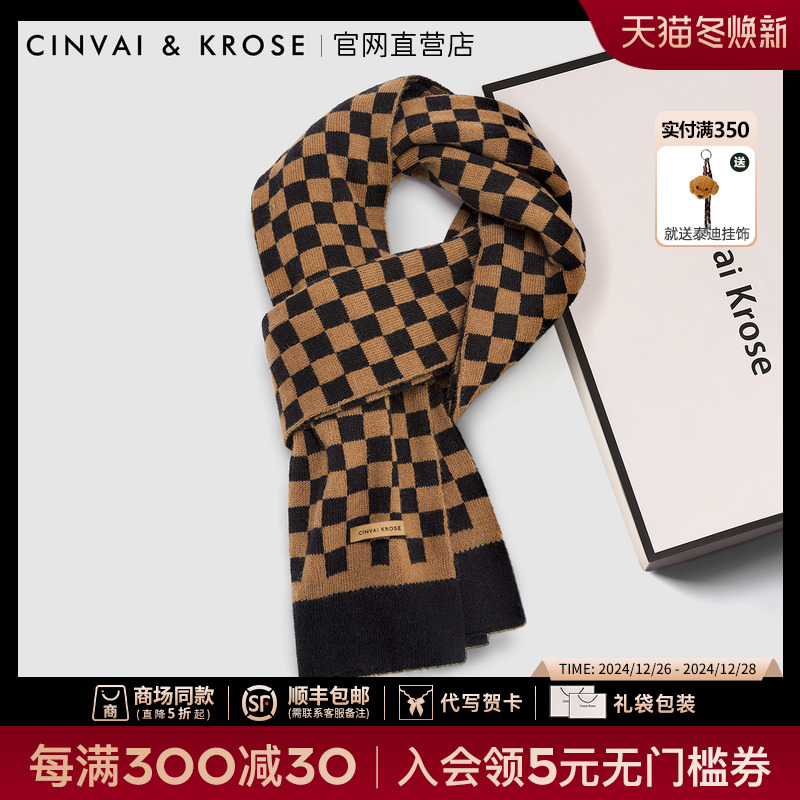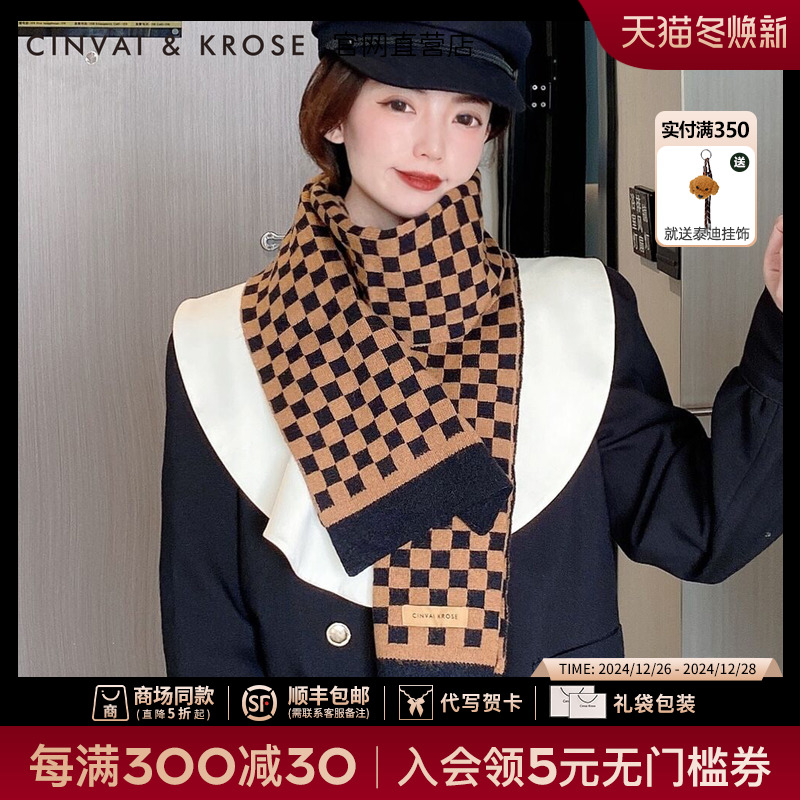 Демисезонный шарф, клетчатая универсальная утепленная накидка, в корейском стиле