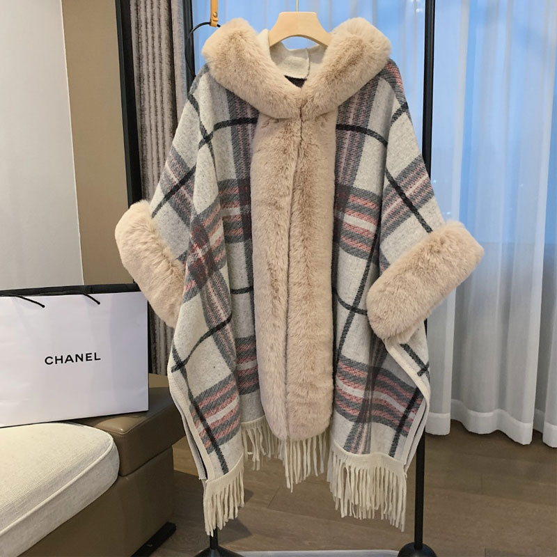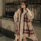 Ретро трикотажная накидка, плащ, демисезонная куртка с капюшоном, 2024 года, в западном стиле