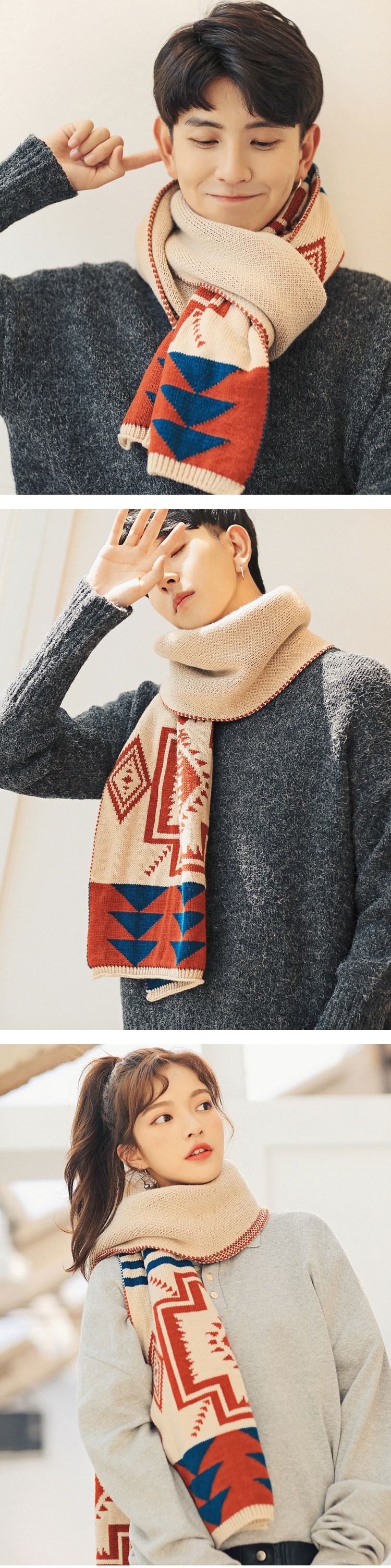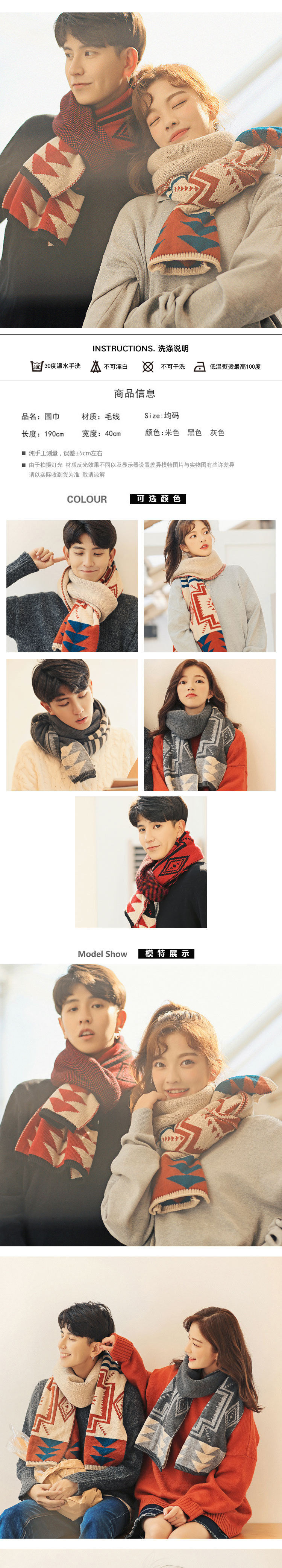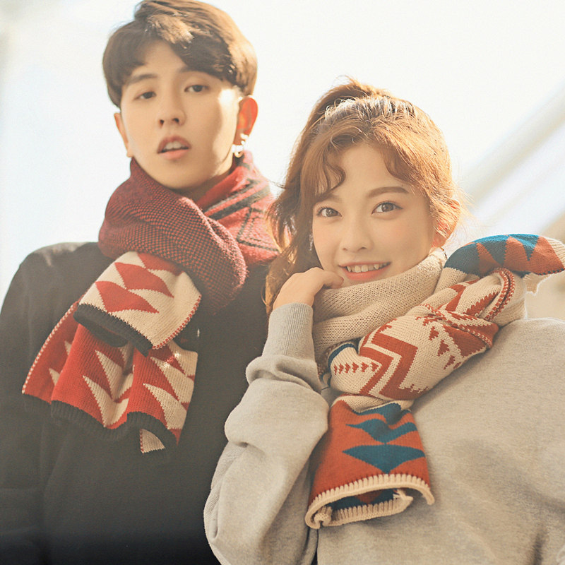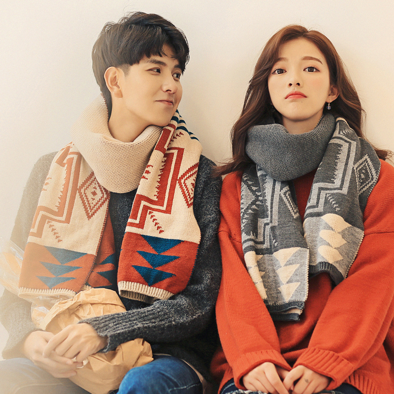 Трикотажный утепленный универсальный шарф для влюбленных, коллекция 2021, тренд сезона, в корейском стиле