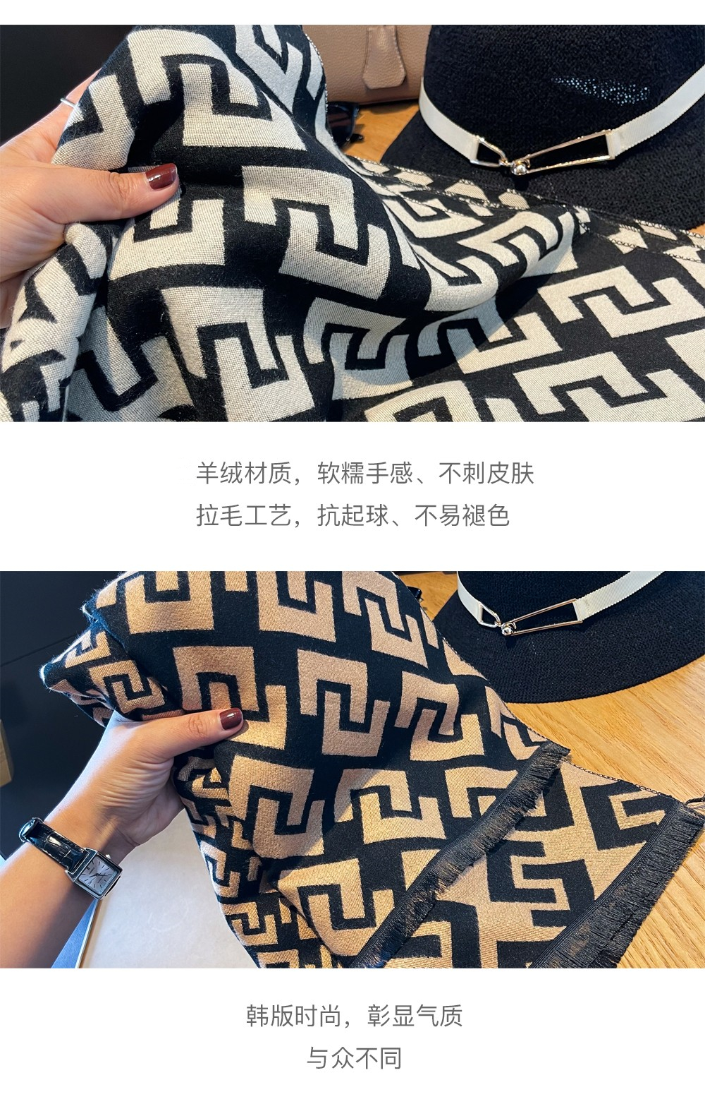 Демисезонная длинная двусторонная удерживающая тепло кашемировая накидка, шарф, городской стиль, в корейском стиле, увеличенная толщина