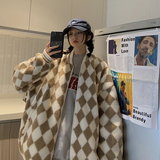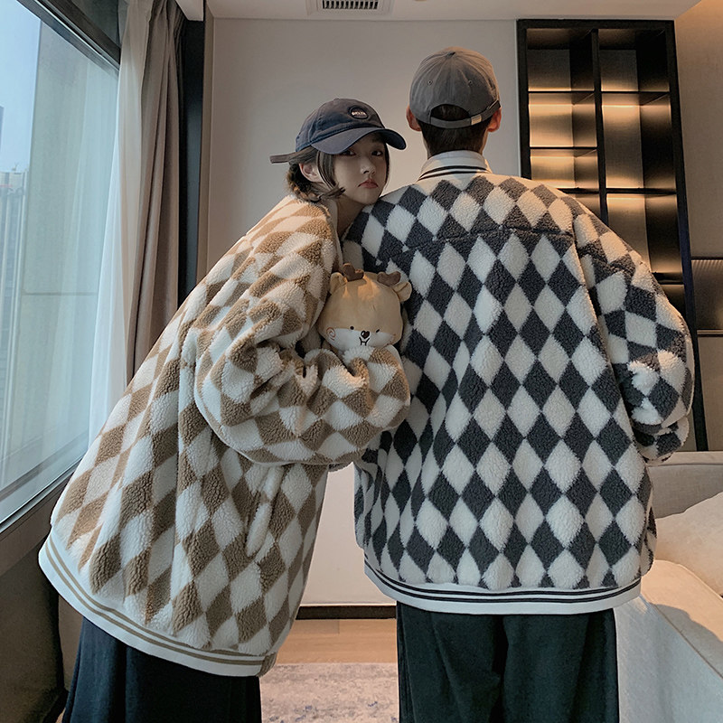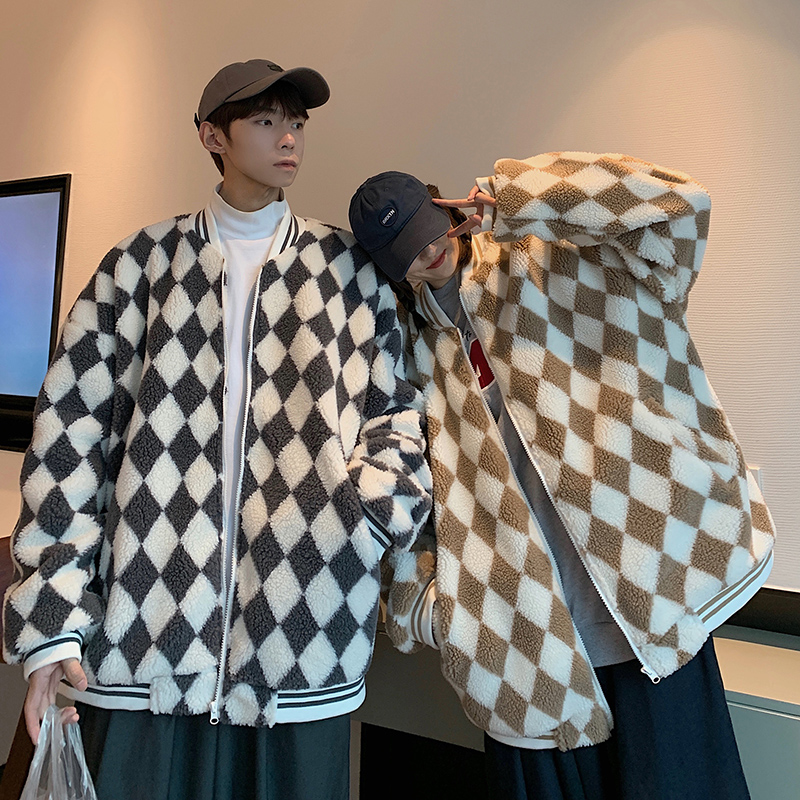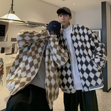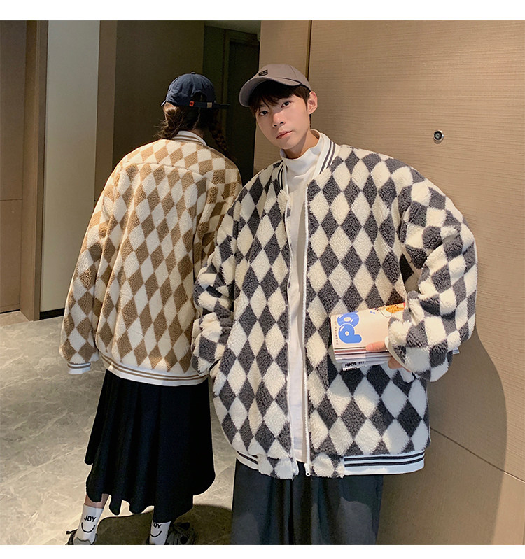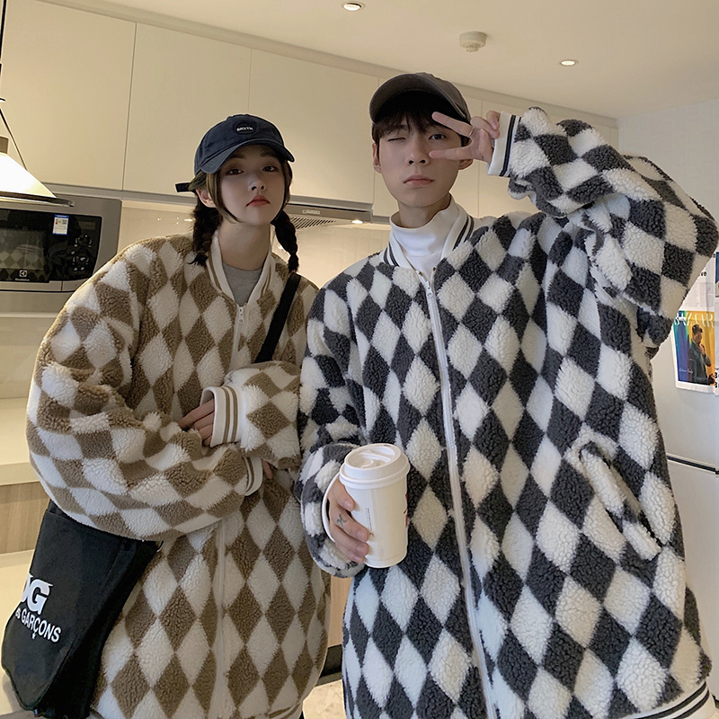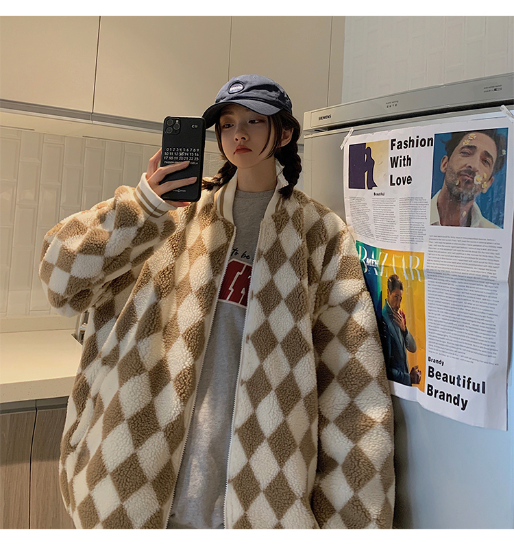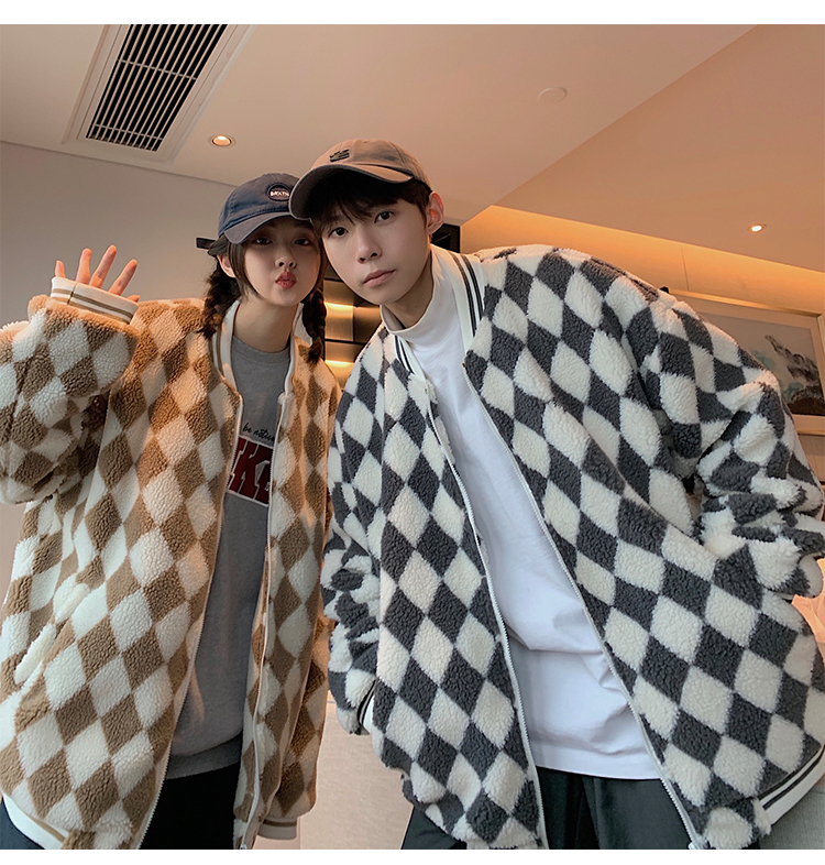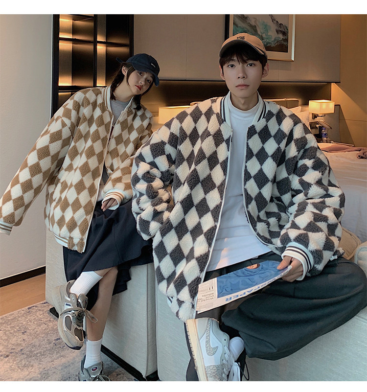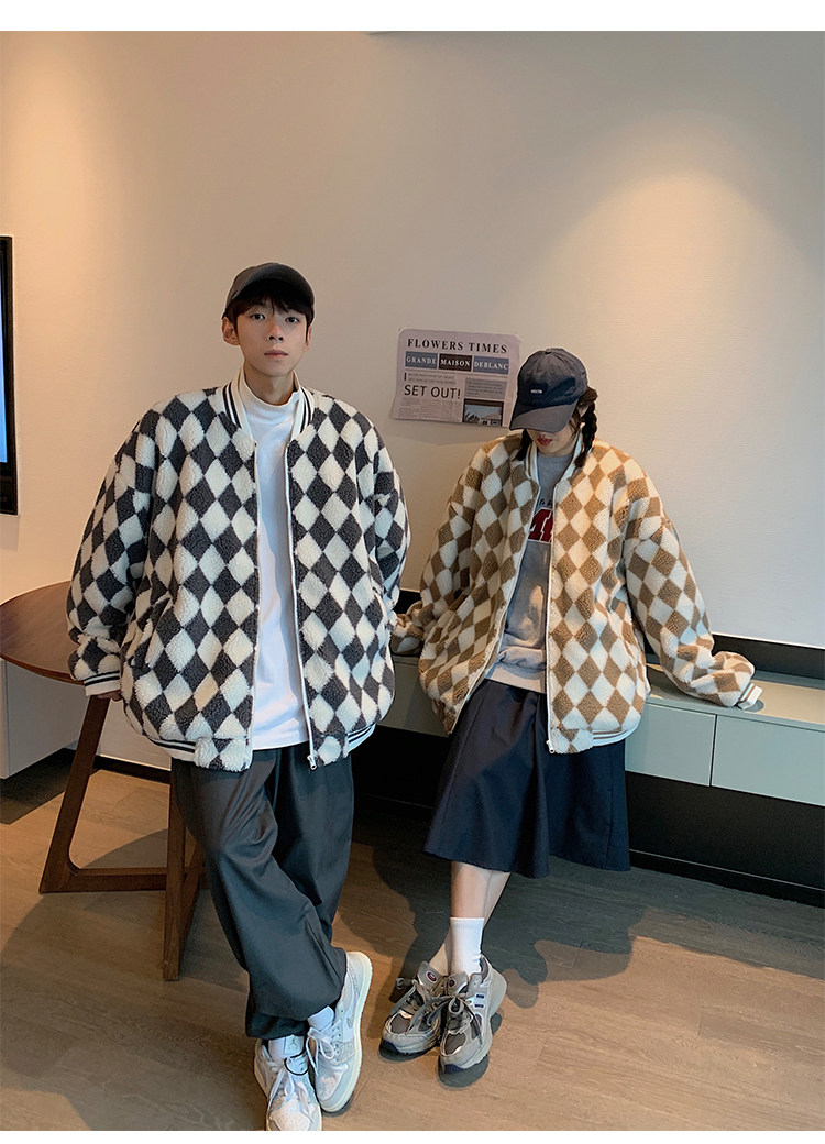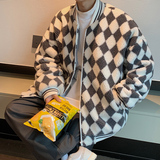 Шахматы, ретро куртка, утепленная бейсбольная форма, пуховик, парная одежда для влюбленных, в американском стиле, оверсайз