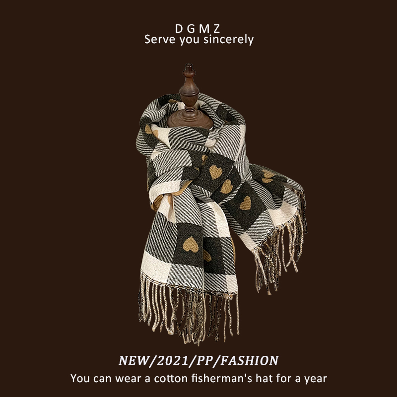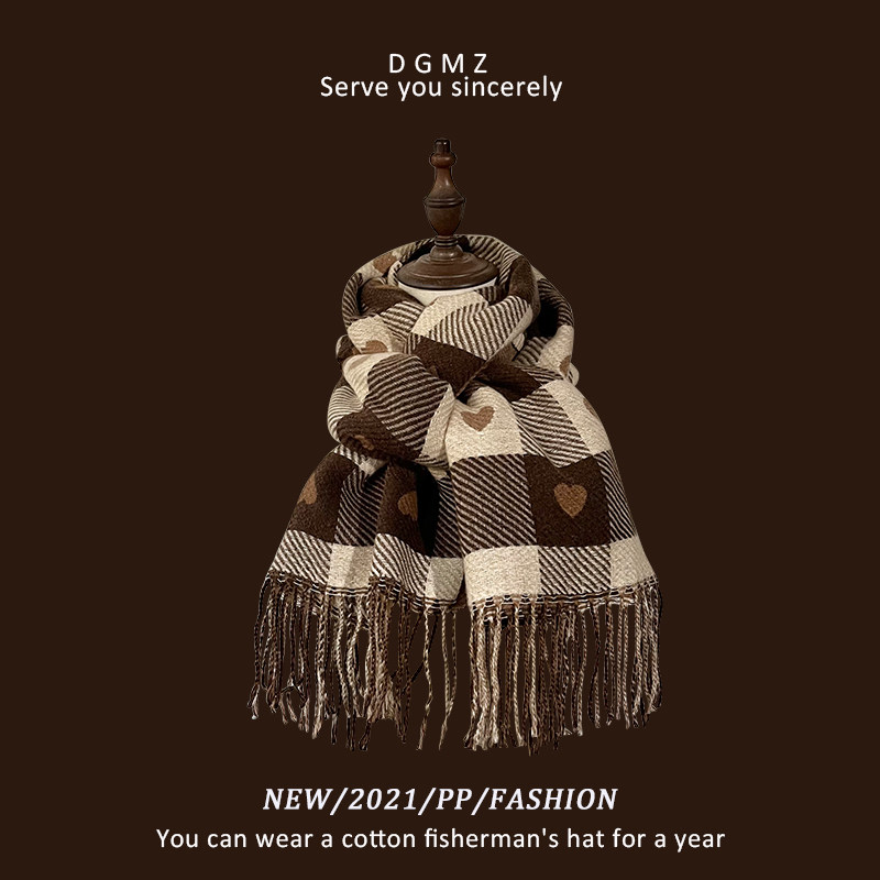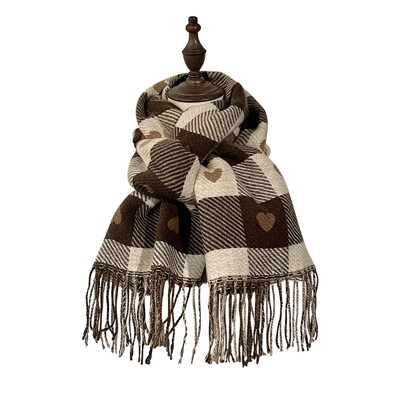 Кофейный цветной демисезонный шарф, универсальная удерживающая тепло цветная накидка для школьников с кисточками, в корейском стиле, увеличенная толщина