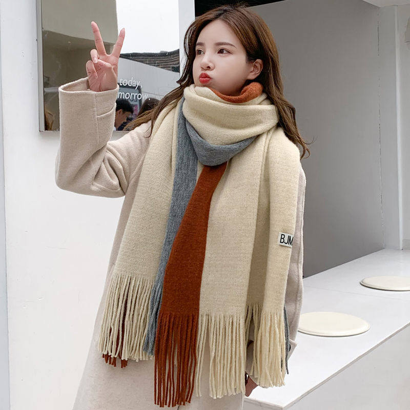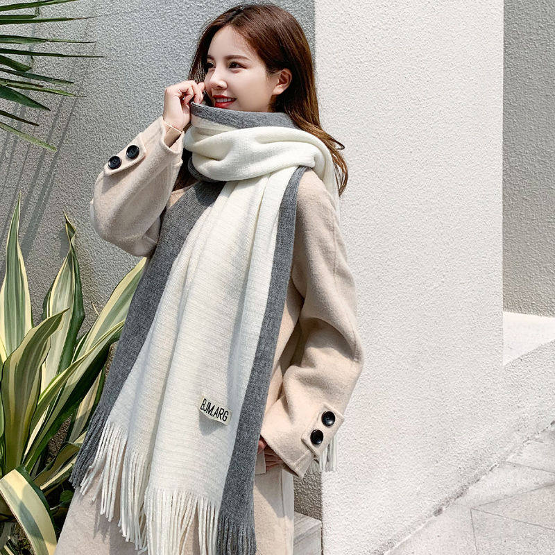 Зимний длинный универсальный трикотажный демисезонный шарф для влюбленных, длина макси, в корейском стиле