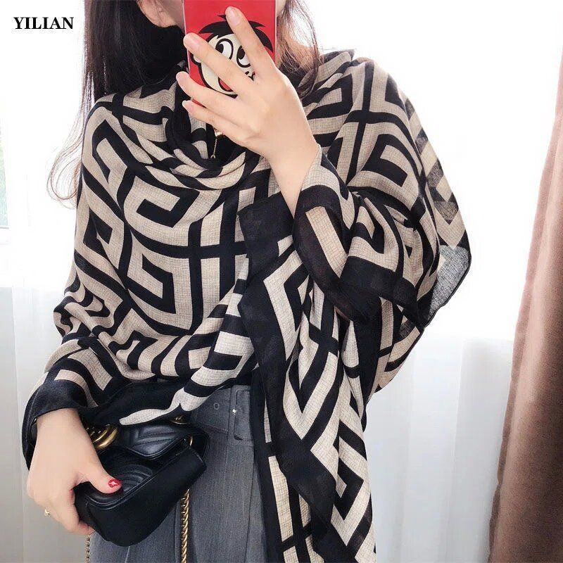 Шарф, модная длинная универсальная удерживающая тепло накидка, из хлопка и льна, популярно в интернете