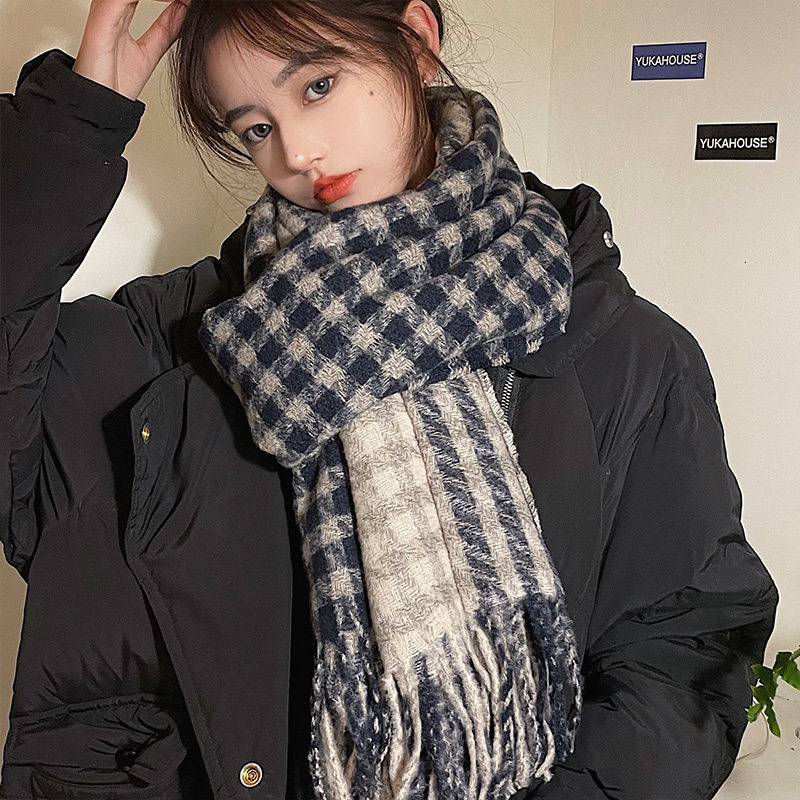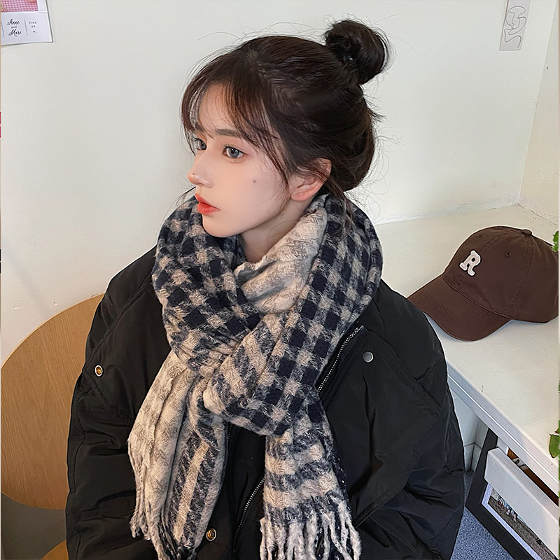 Демисезонный ретро универсальный утепленный брендовый шарф, популярно в интернете, в корейском стиле