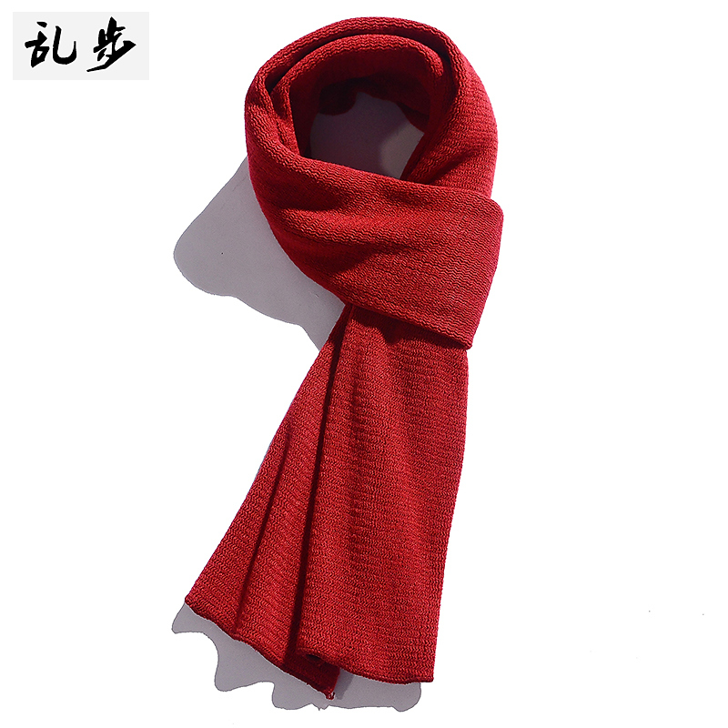 Брендовый трикотажный демисезонный утепленный красный универсальный шарф подходит для мужчин и женщин, в корейском стиле