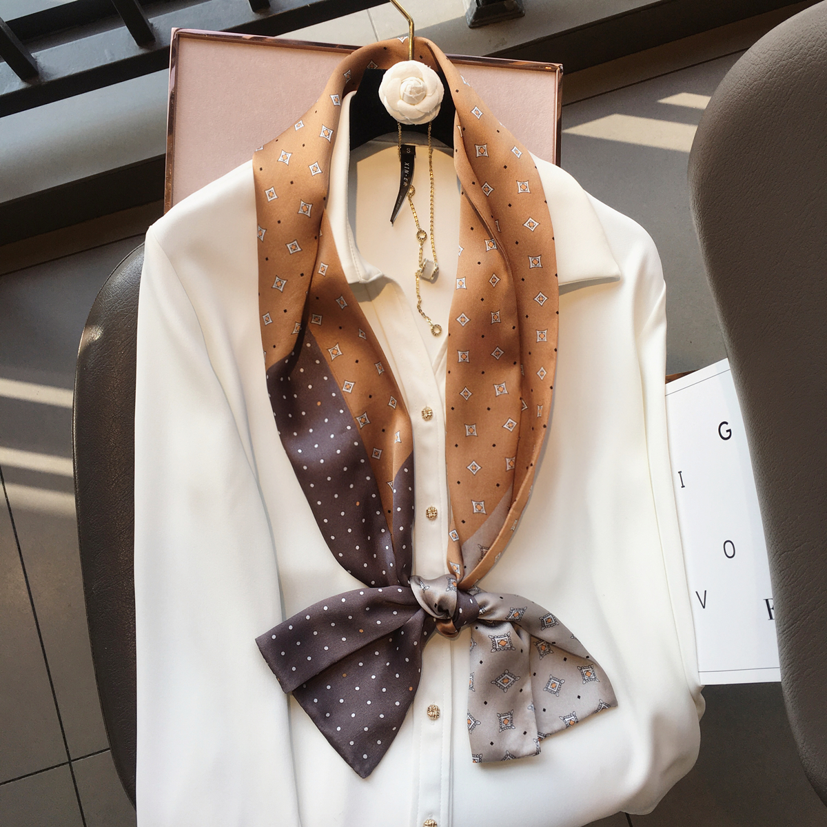 Шелковый универсальный ретро длинный шарф, двусторонний шейный платок, накидка