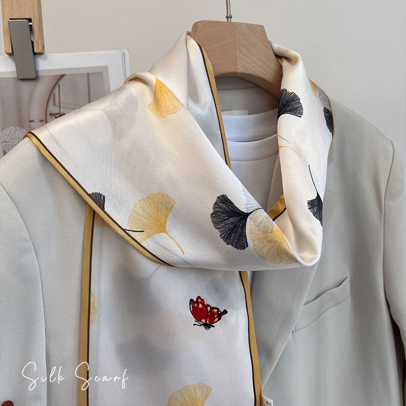 Уменьшенье интеллектуальная красавица 100%шелковая двойная двойная двойная длинная длинная шелковая длинная шарф -шарф женская пружина и осень многофункциональная декоративная лента