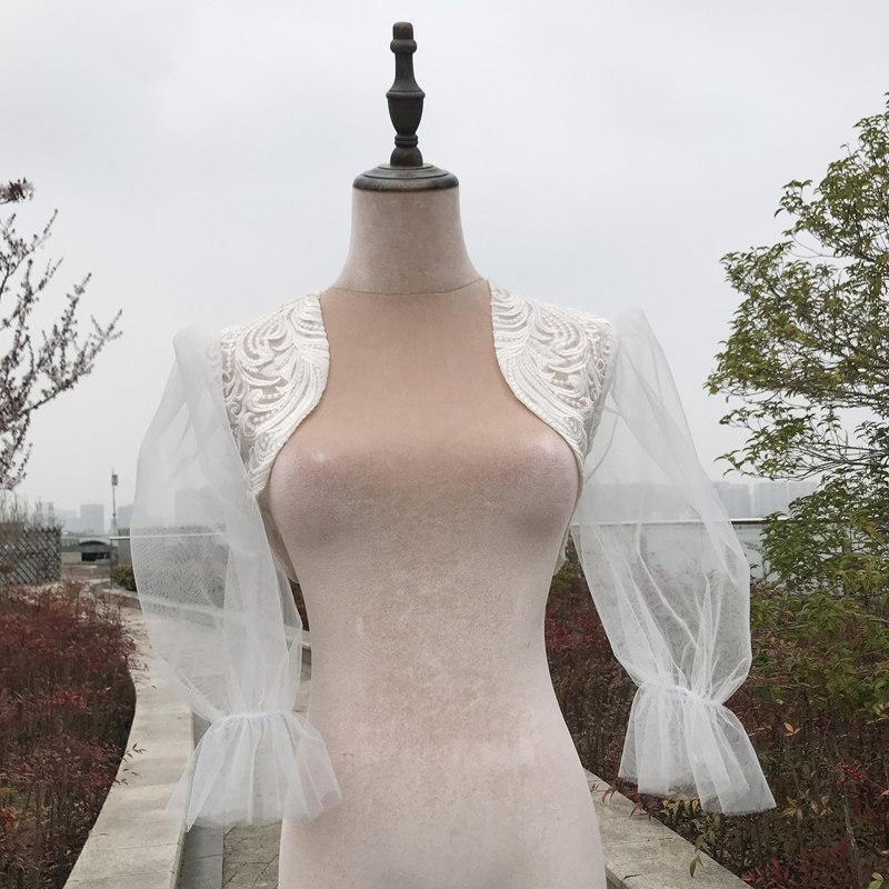 Лонгслив для невесты, короткая куртка, жилет, кружевная накидка, коллекция 2023, рукава фонарики