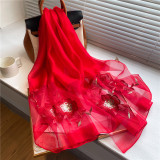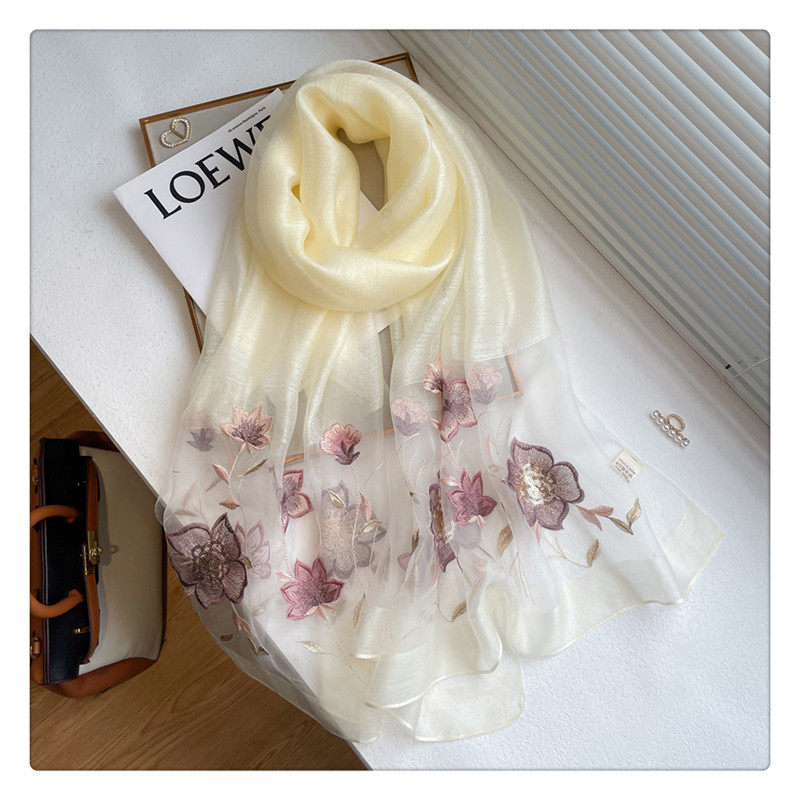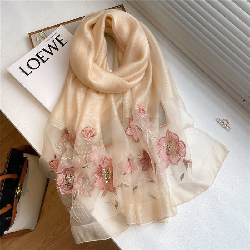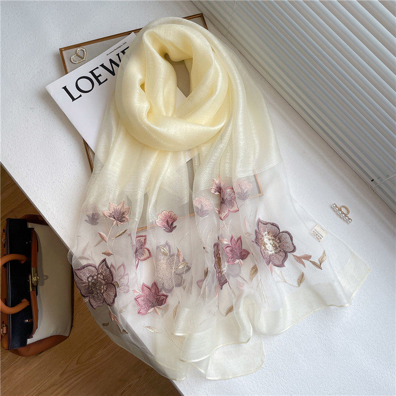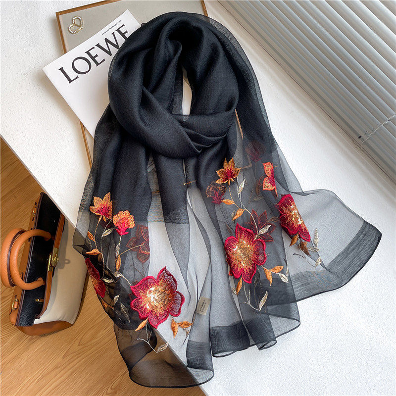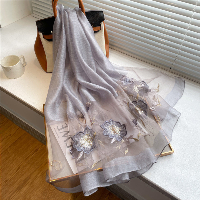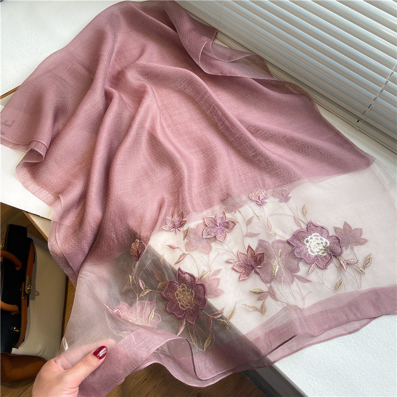 Высококлассный шелковый шерстяной осенний шарф, длинная летняя накидка, с вышивкой, в корейском стиле