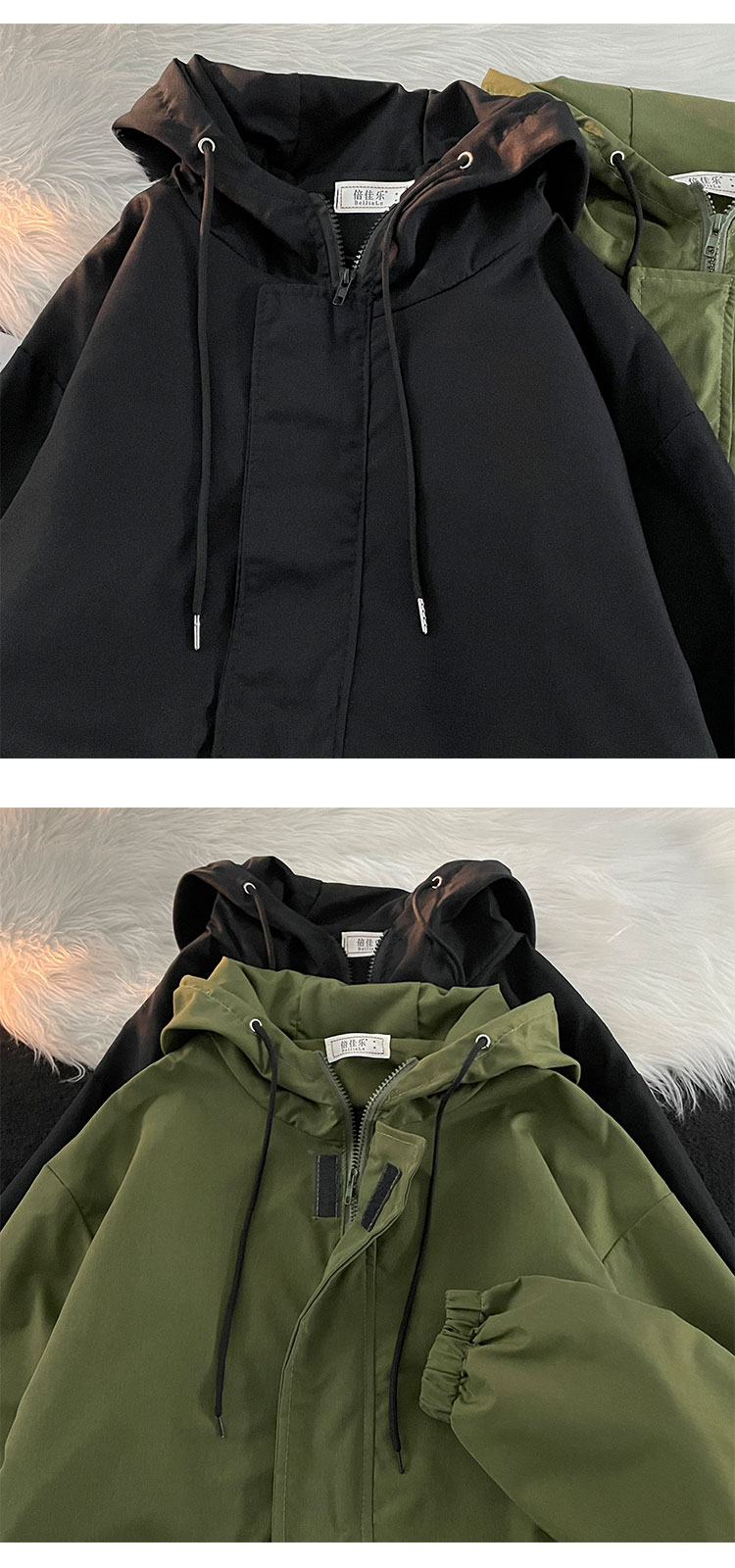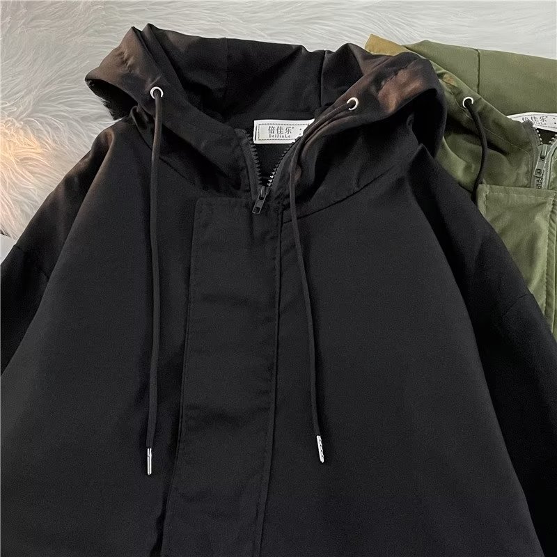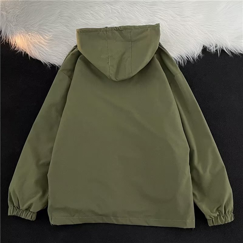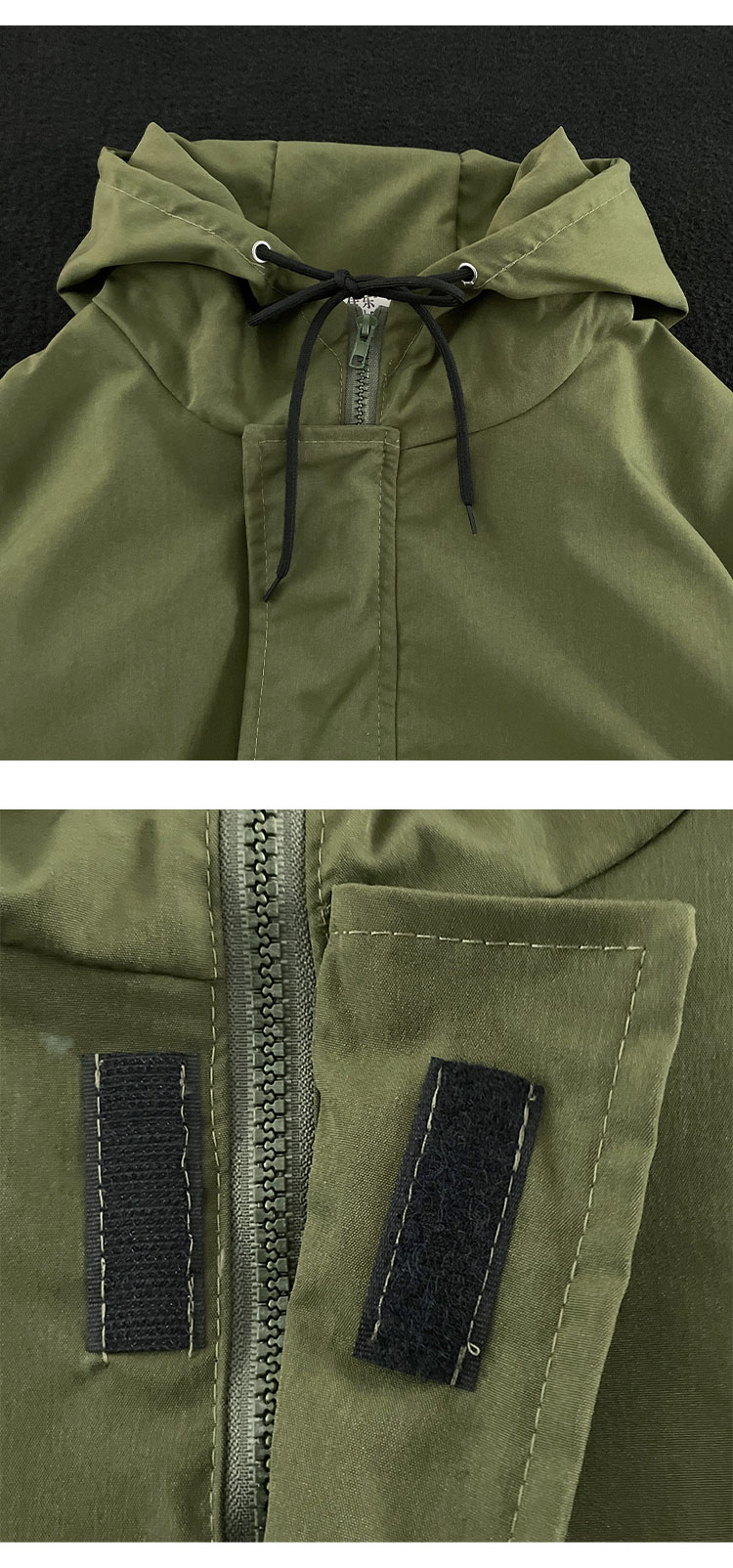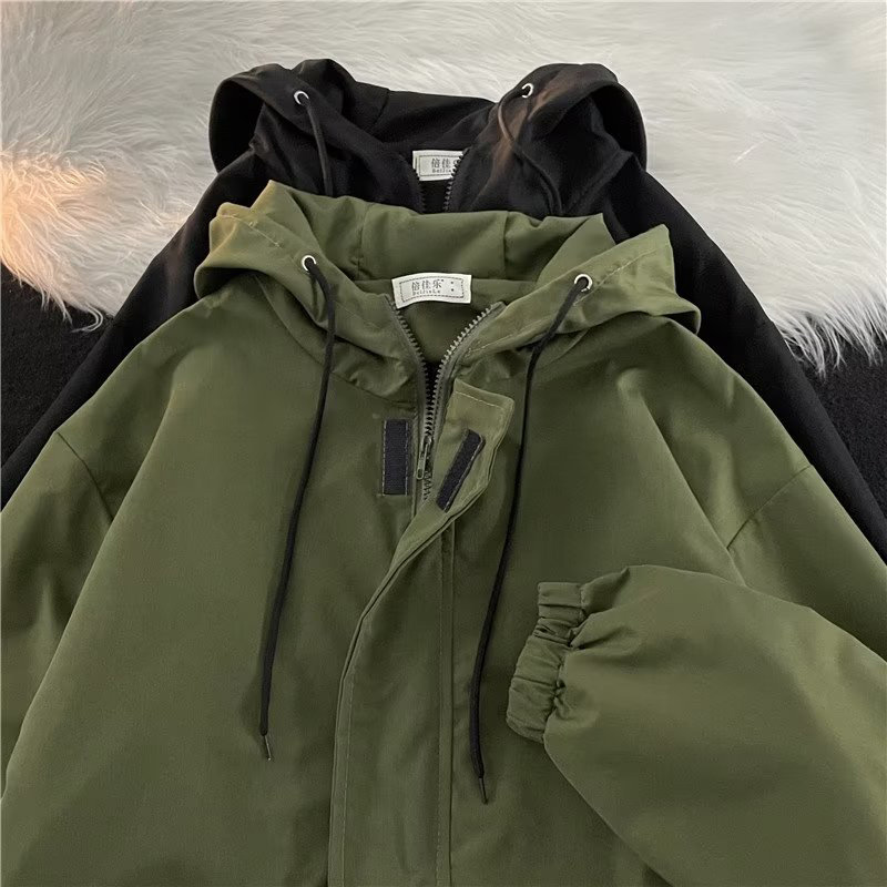 Зеленая мужская демисезонная японская куртка на липучке, в американском стиле, высокий воротник