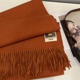 Оранжевый утепленный длинный универсальный шарф из искусственного меха с кисточками
