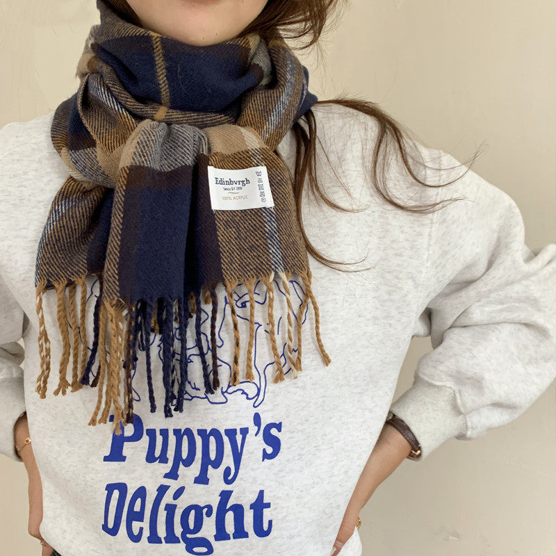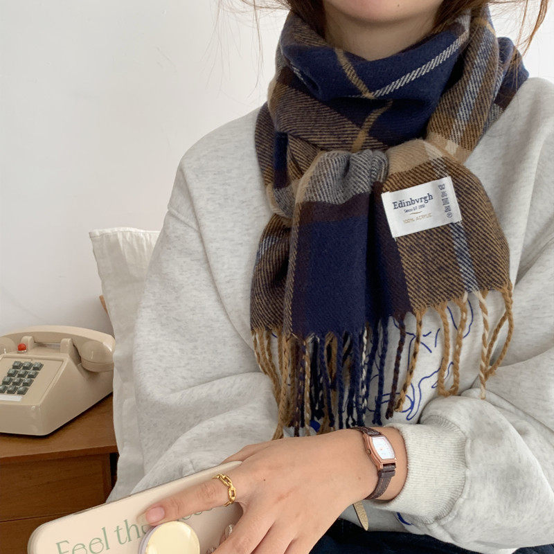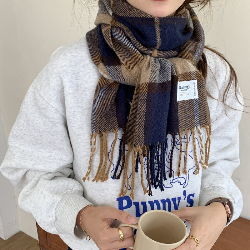 Классический демисезонный шарф для школьников, удерживающая тепло универсальная накидка с кисточками, в корейском стиле