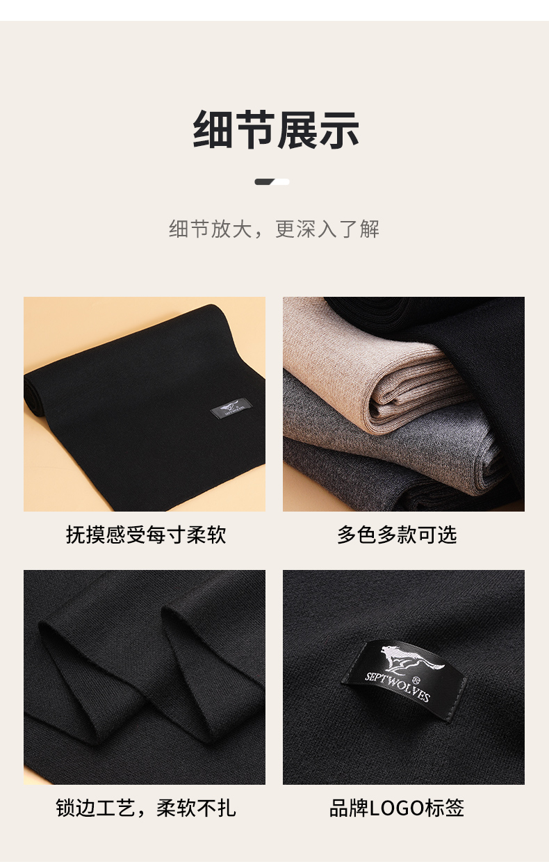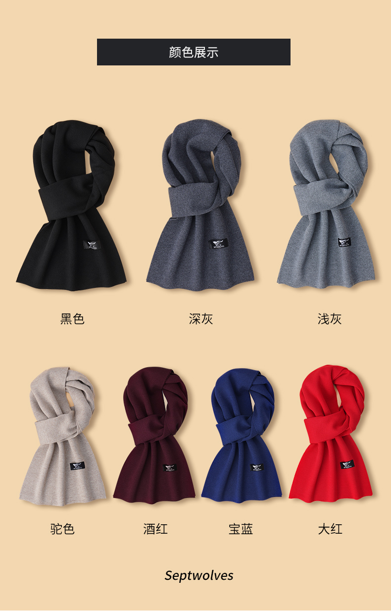 Septwolves, шерстяной демисезонный утепленный цветной шарф, коллекция 2023, подарок на день рождения