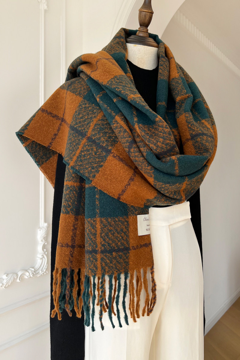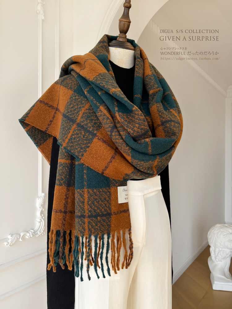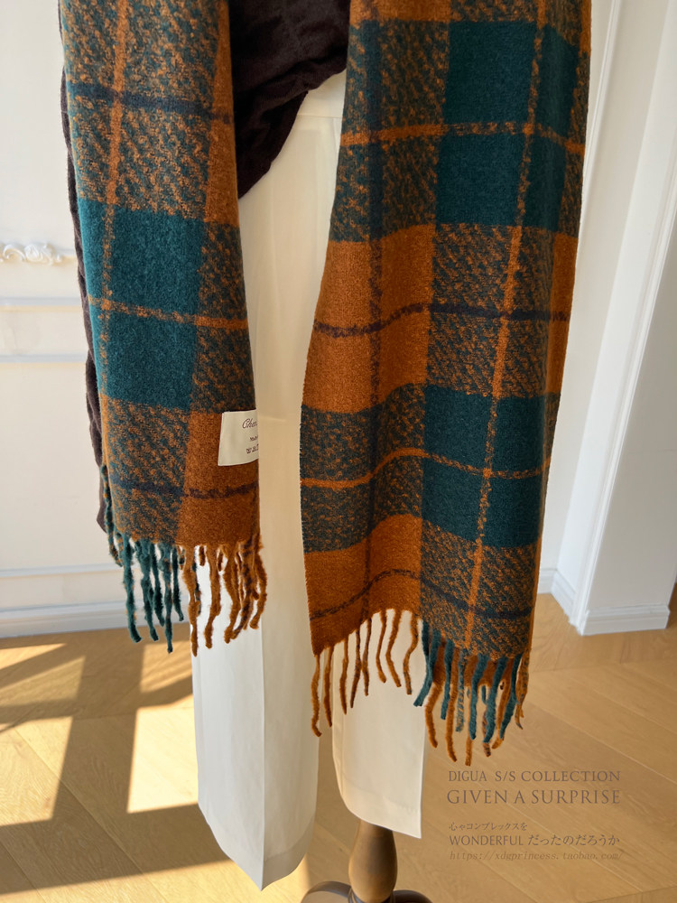 Выход по корейской подлинности ~ ins blogger mina 100%шерстяная ретро -ретро -ретро -релотичный шарф самка