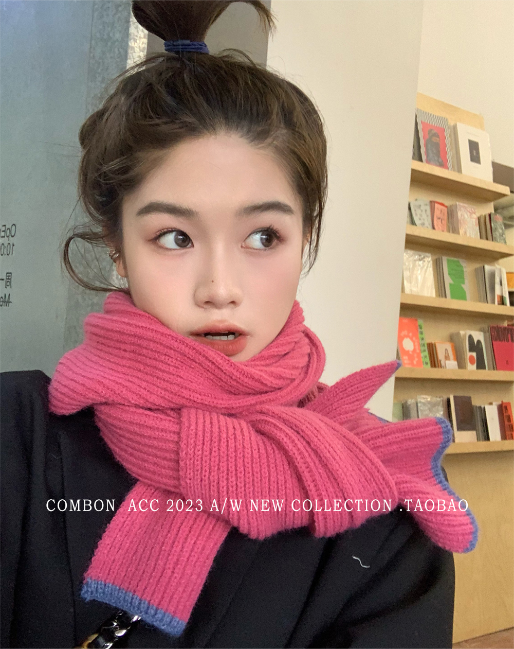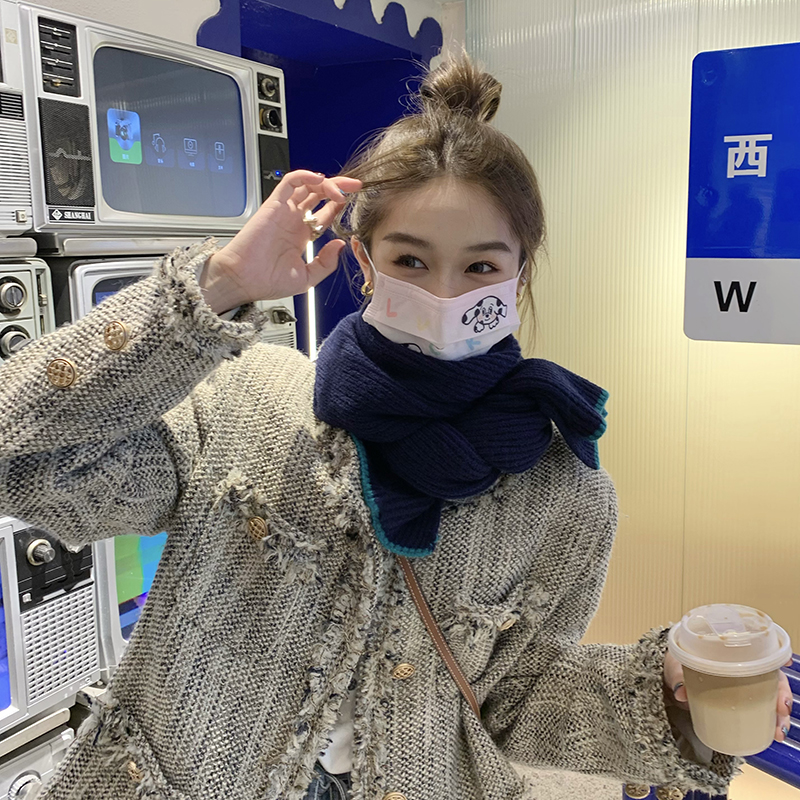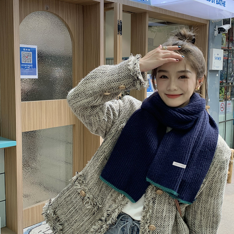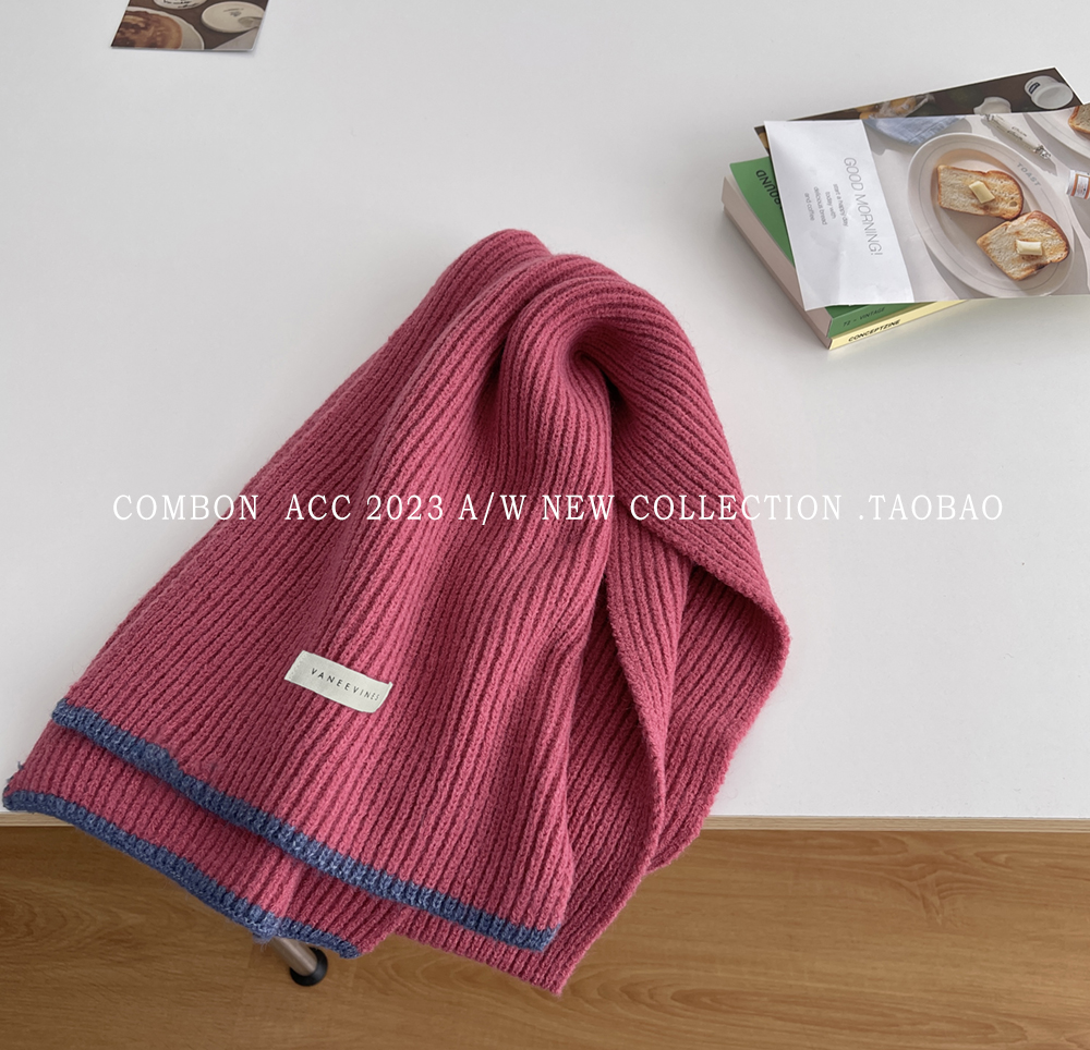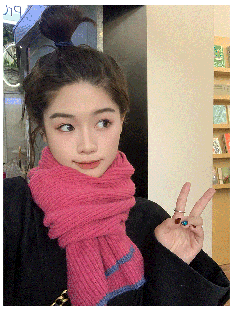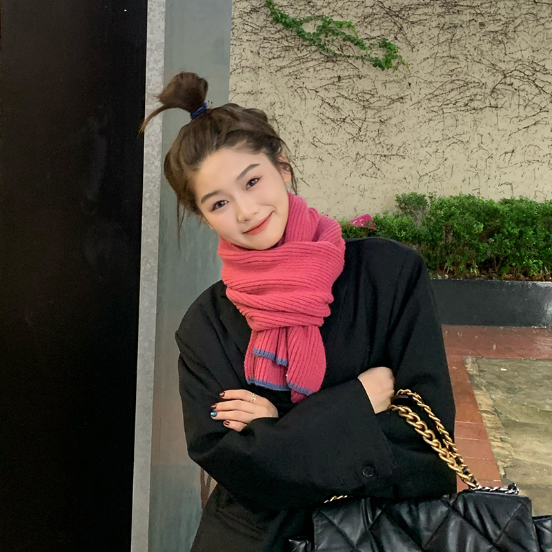 Розовый брендовый универсальный удерживающий тепло трикотажный шарф для отдыха, в корейском стиле