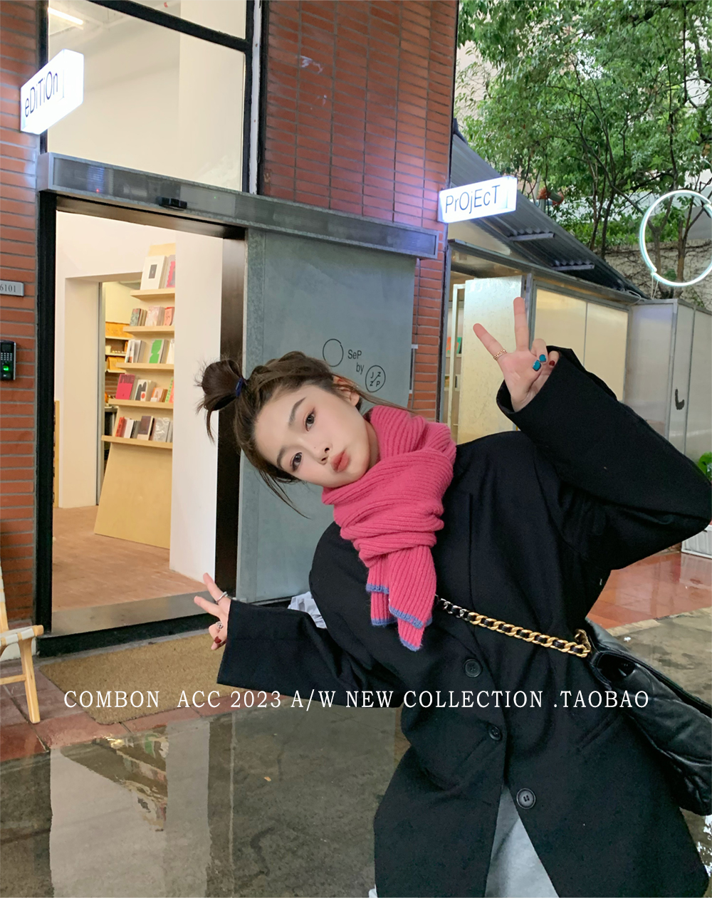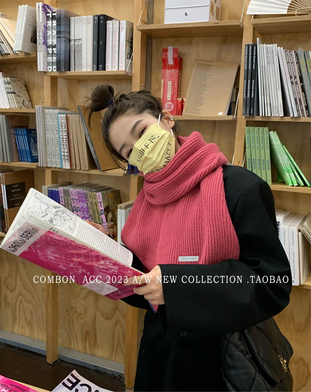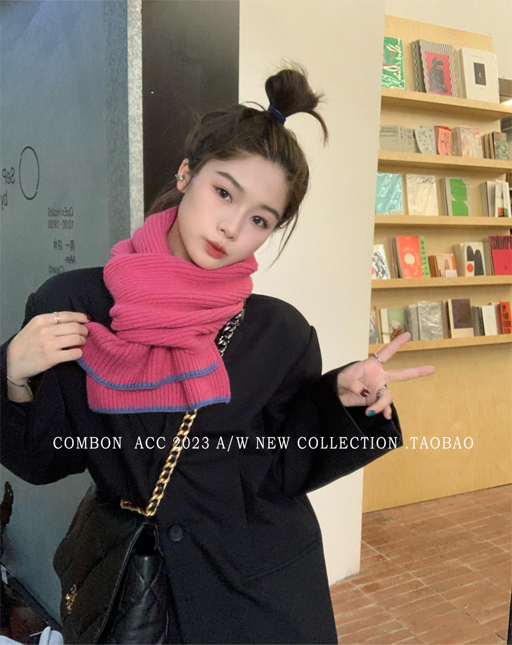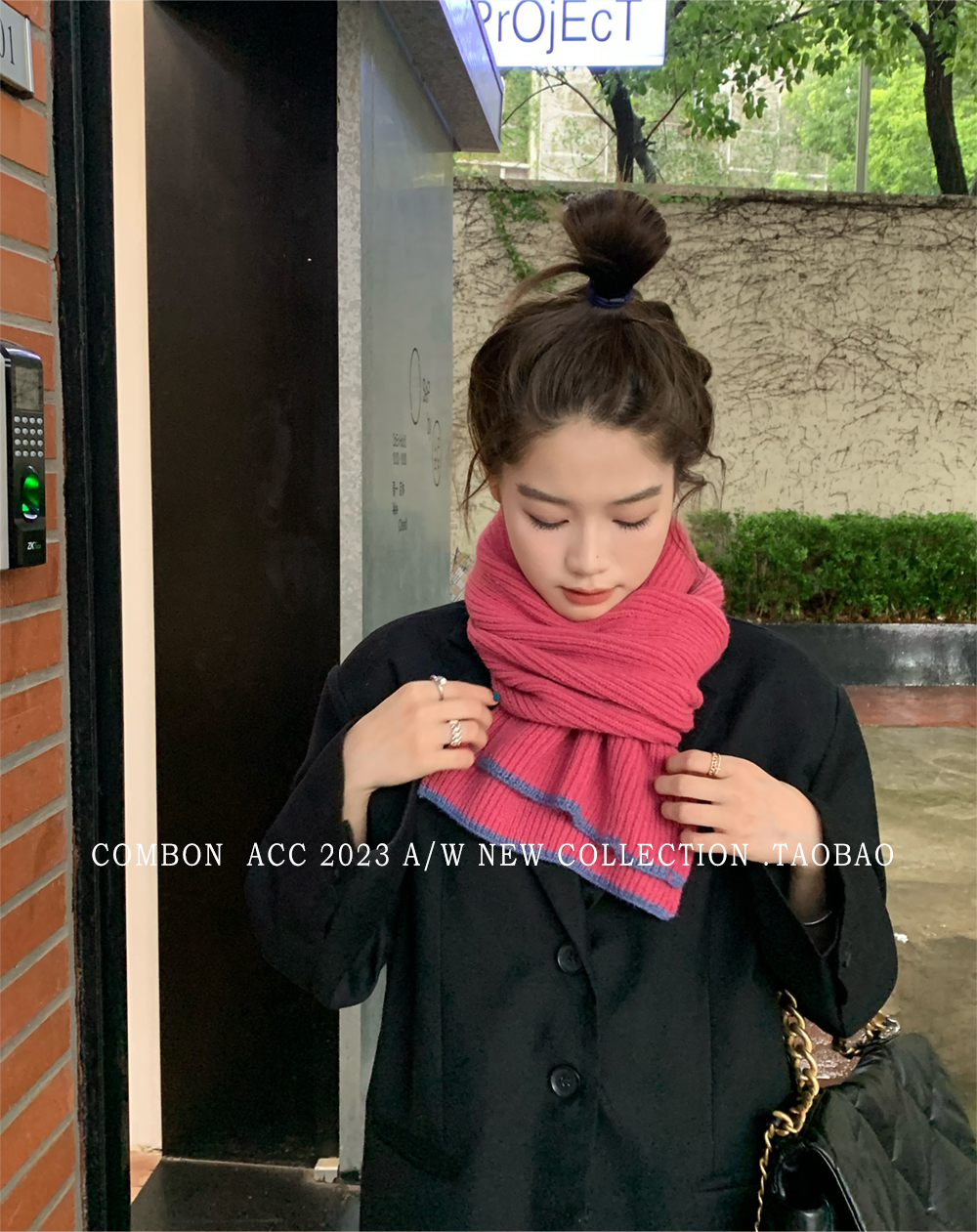 Розовый брендовый универсальный удерживающий тепло трикотажный шарф для отдыха, в корейском стиле