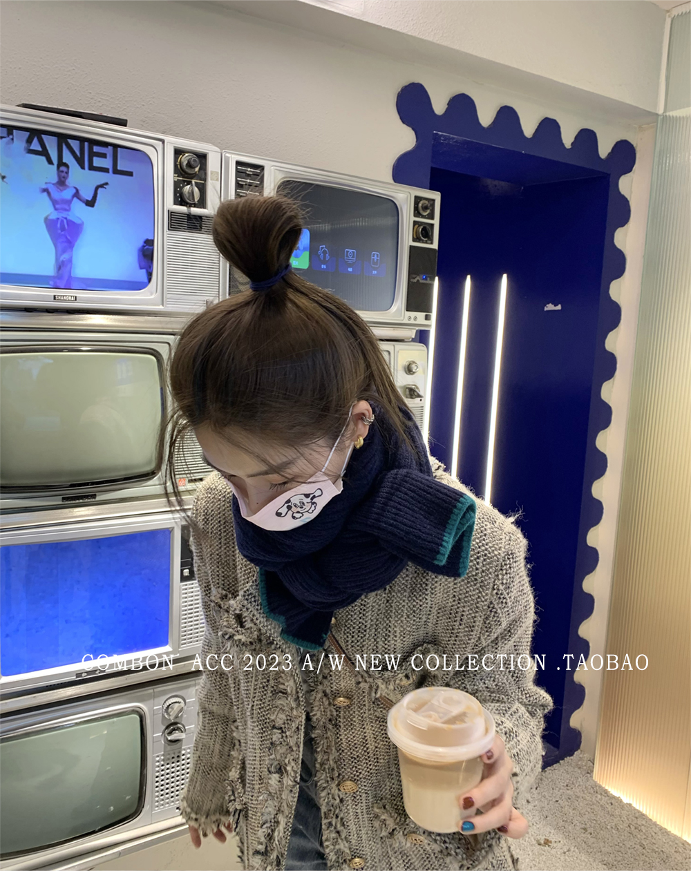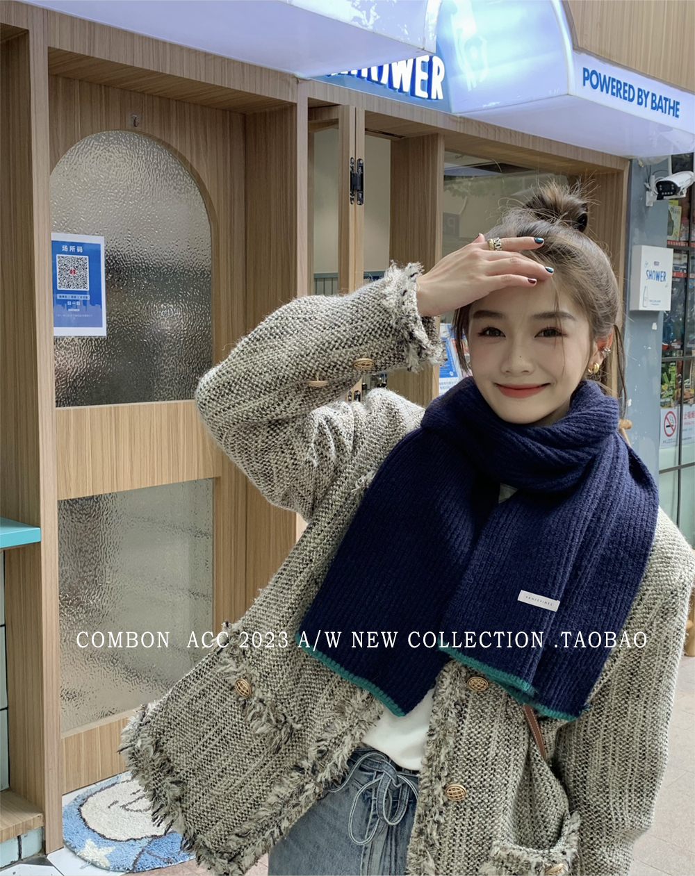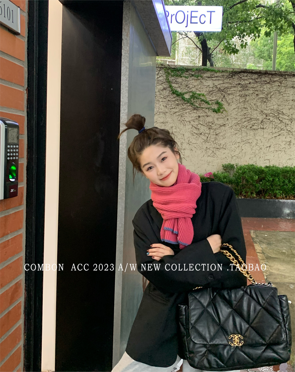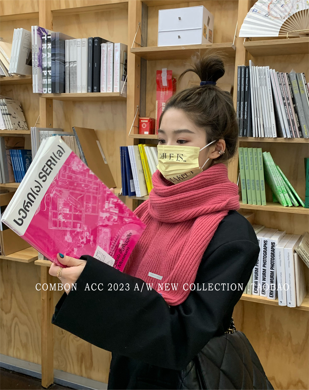 Розовый брендовый универсальный удерживающий тепло трикотажный шарф для отдыха, в корейском стиле