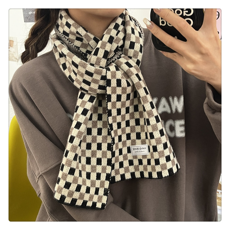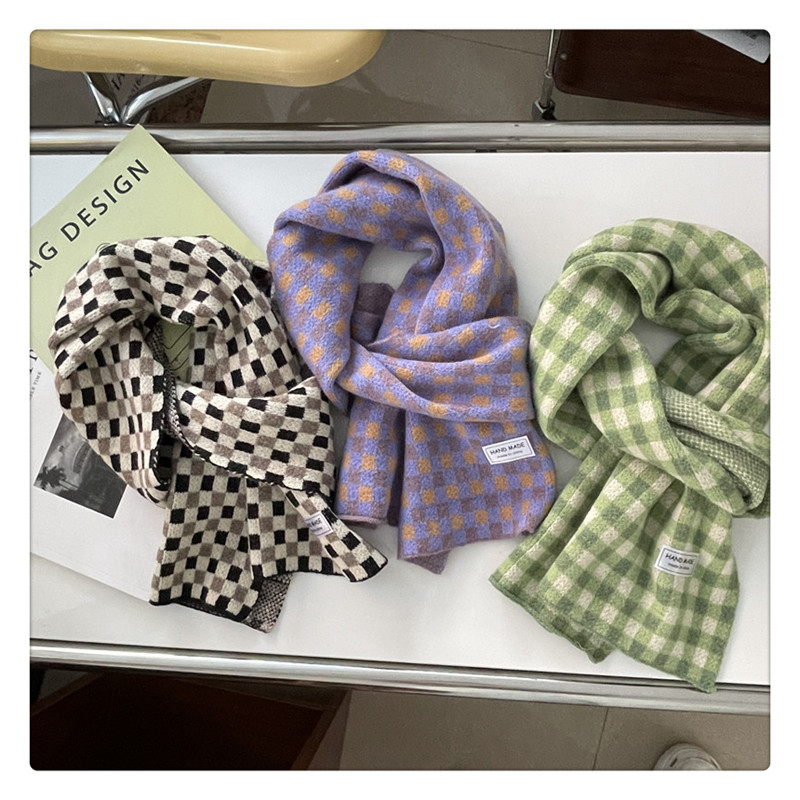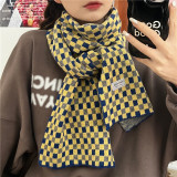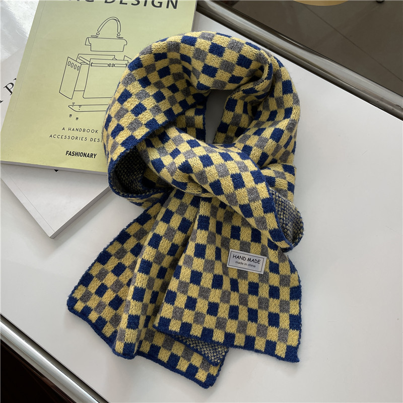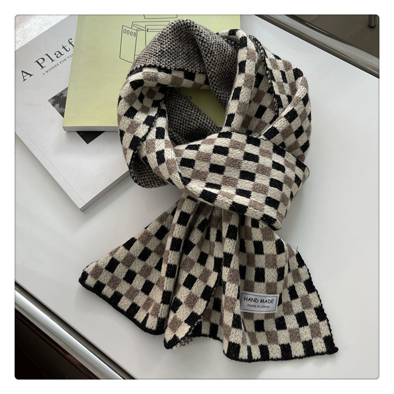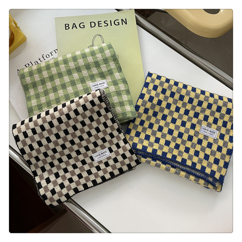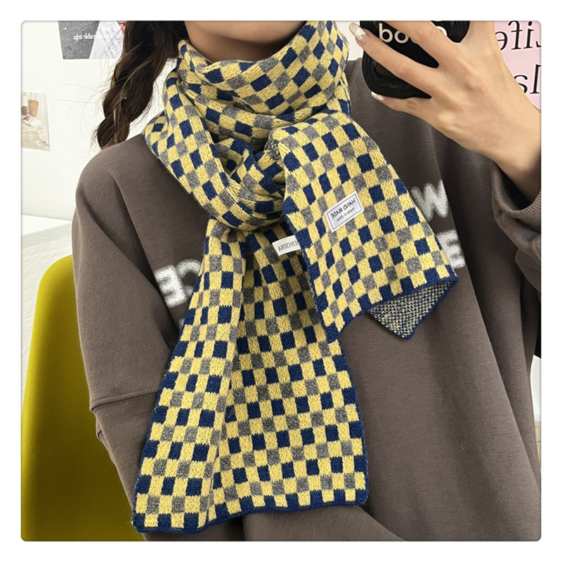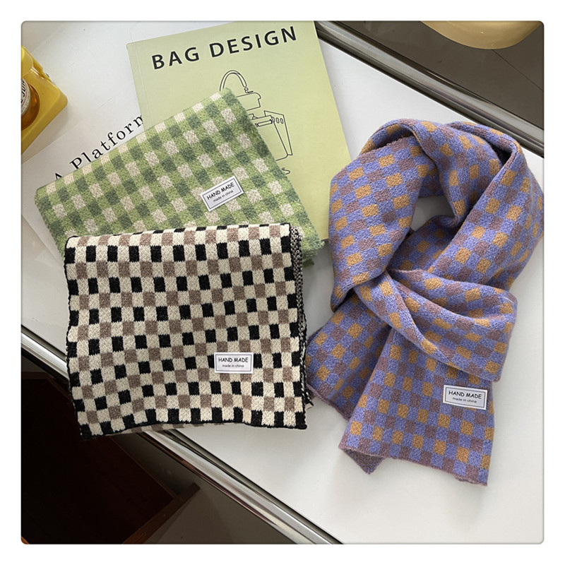 Свежий модный трикотажный шарф, демисезонные универсальные удерживающие тепло шахматы для школьников, в корейском стиле