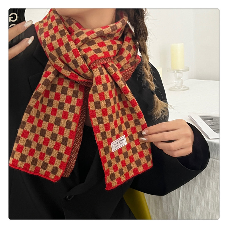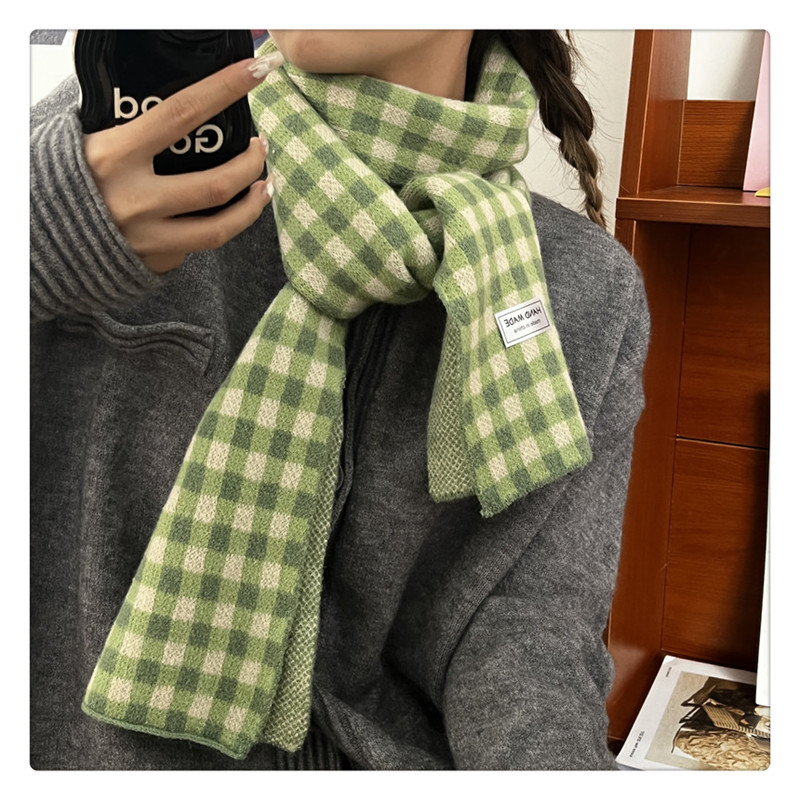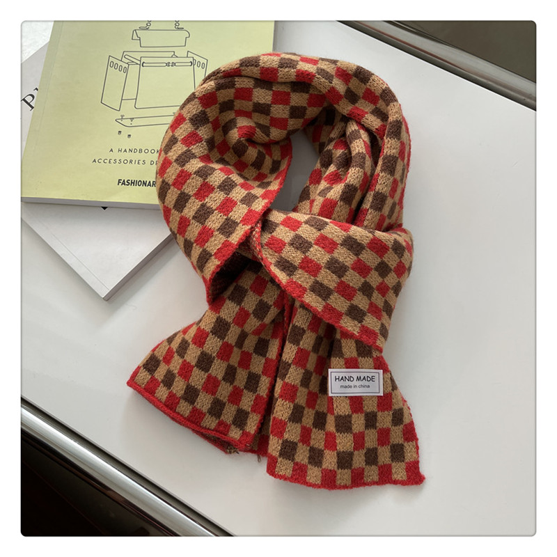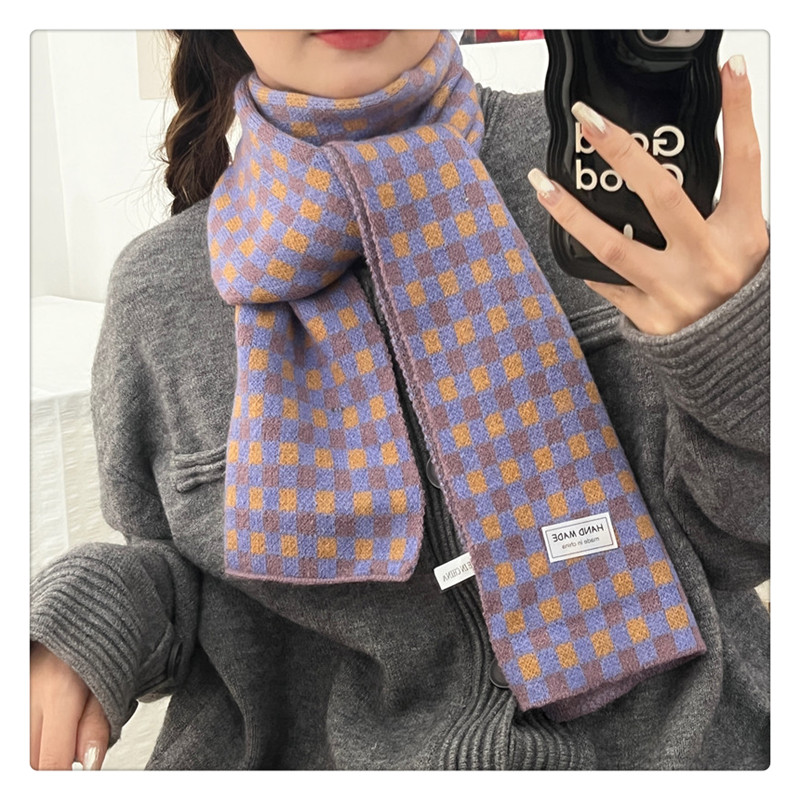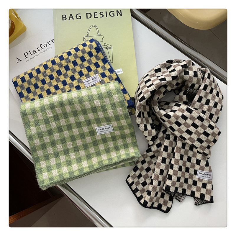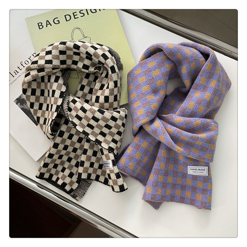 Свежий модный трикотажный шарф, демисезонные универсальные удерживающие тепло шахматы для школьников, в корейском стиле