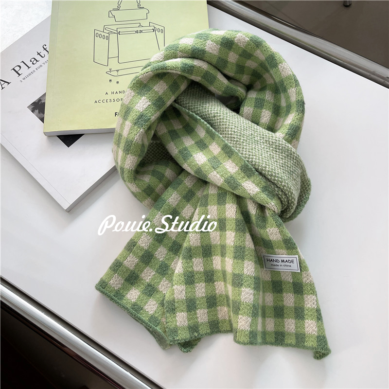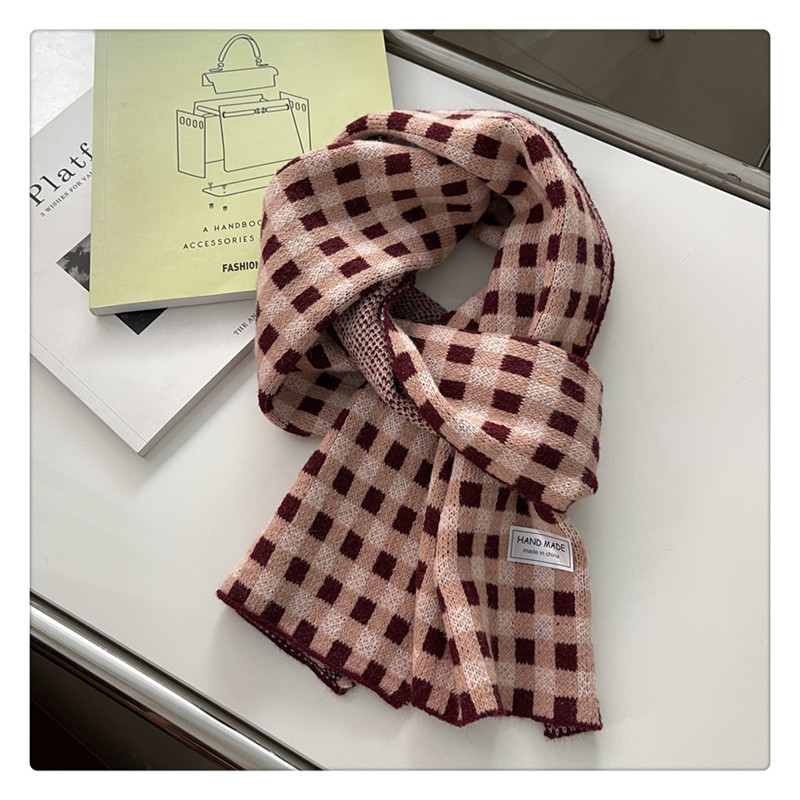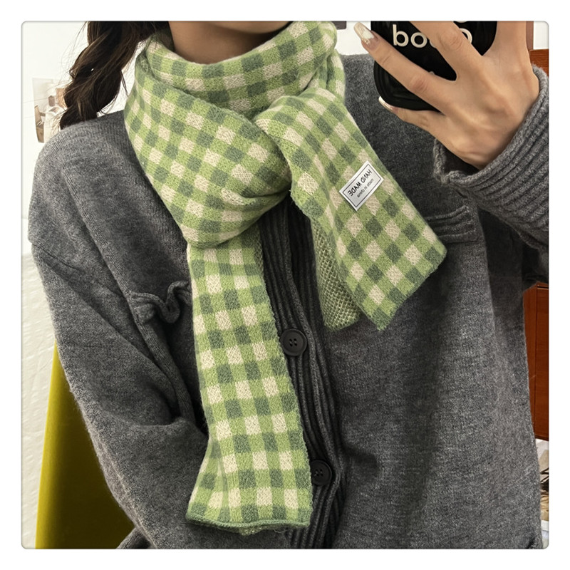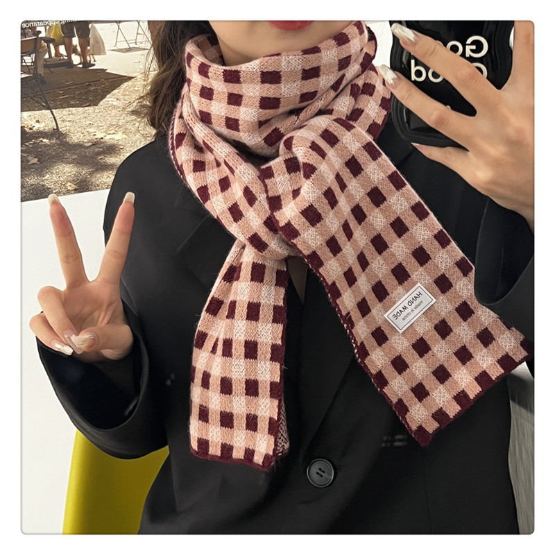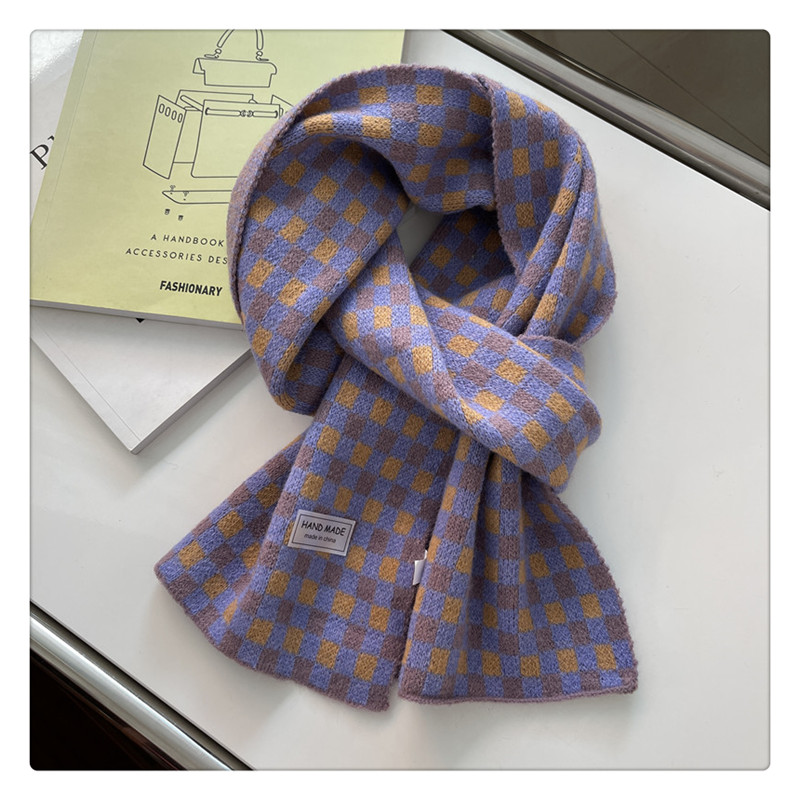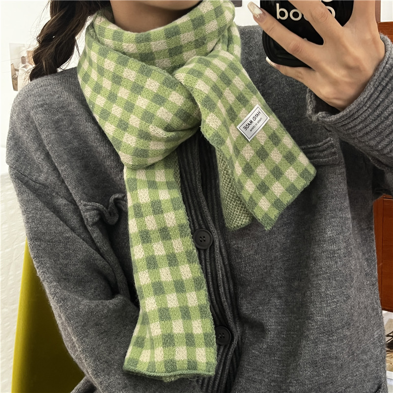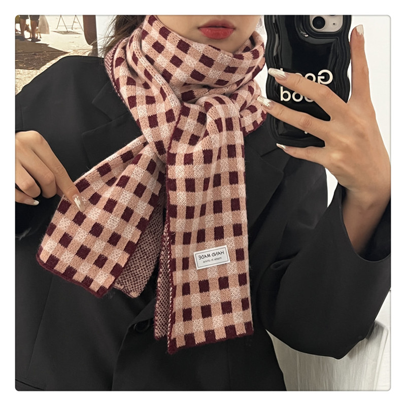 Свежий модный трикотажный шарф, демисезонные универсальные удерживающие тепло шахматы для школьников, в корейском стиле