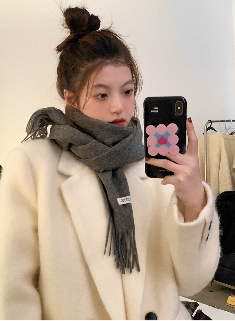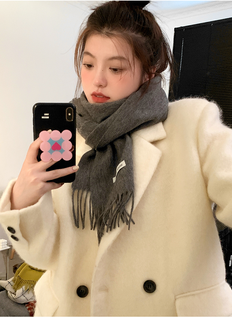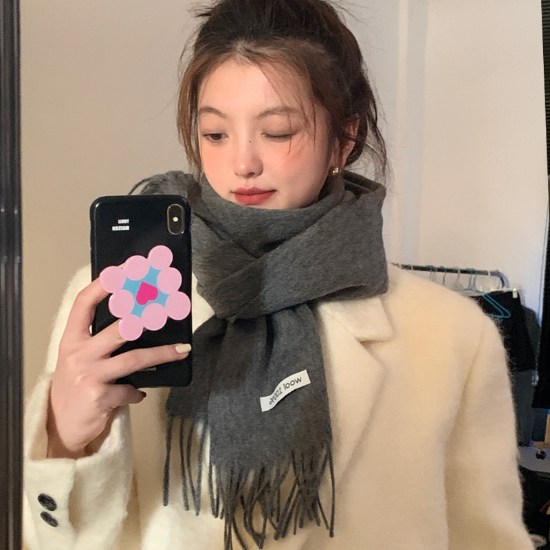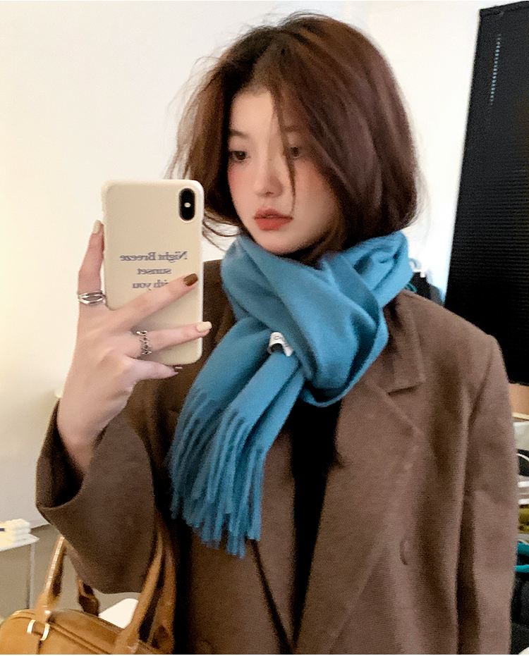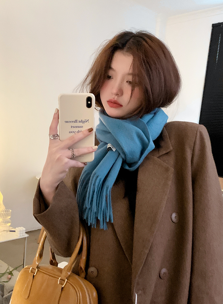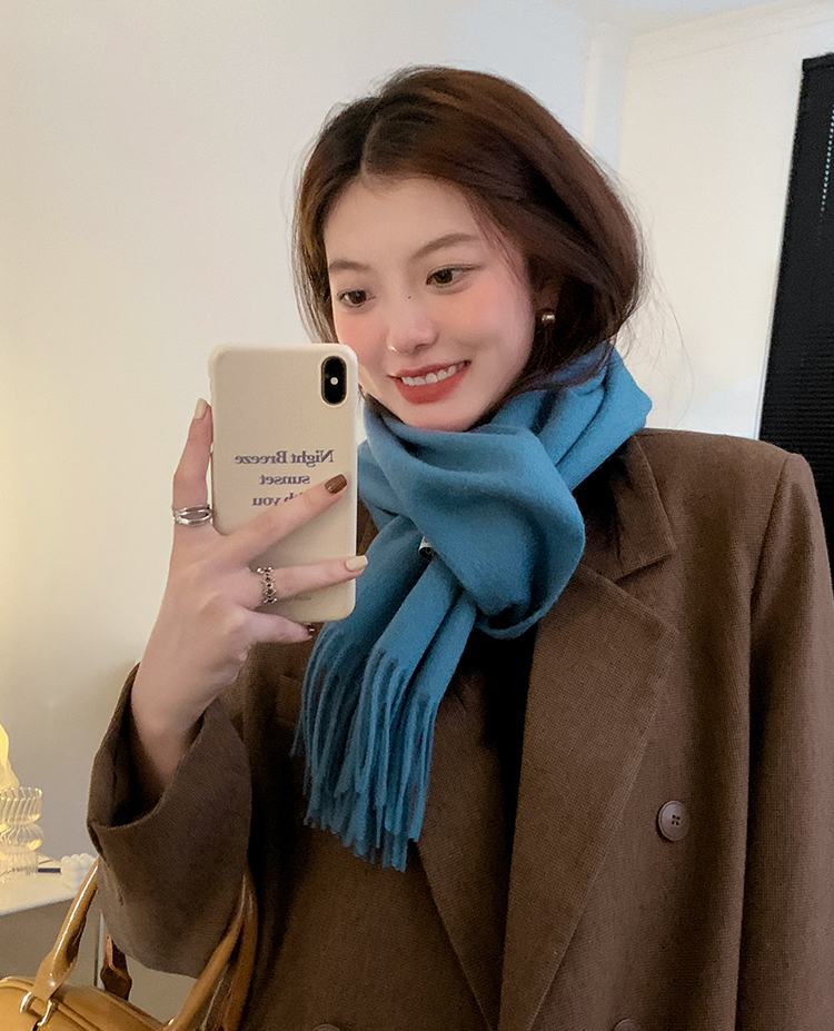 Шерстяной демисезонный шарф, цветная утепленная универсальная синяя накидка для школьников для влюбленных