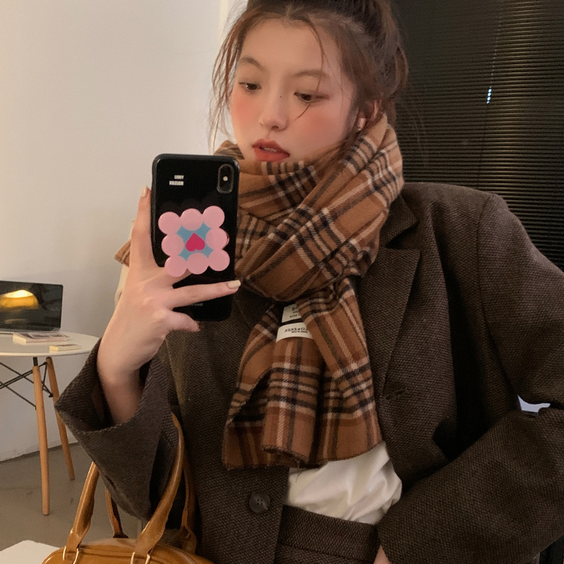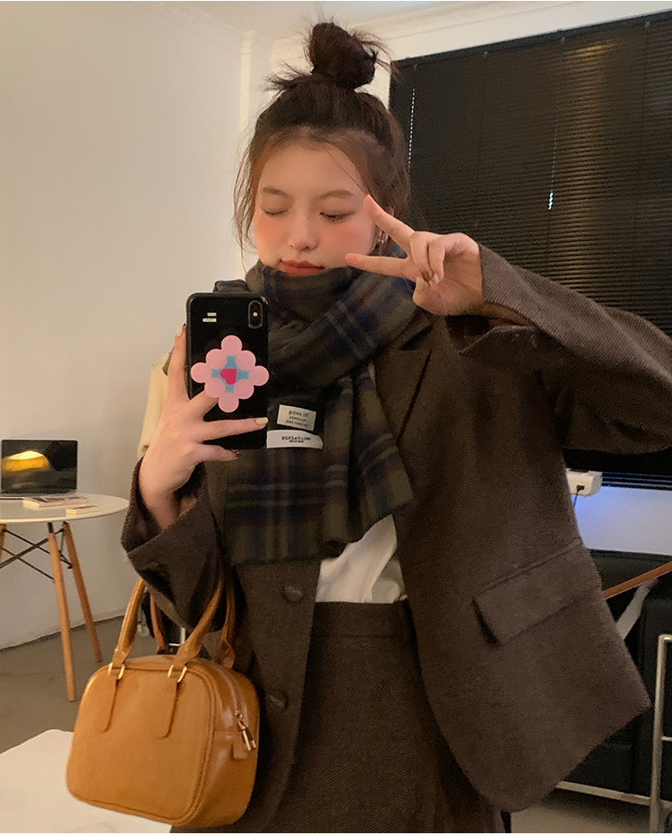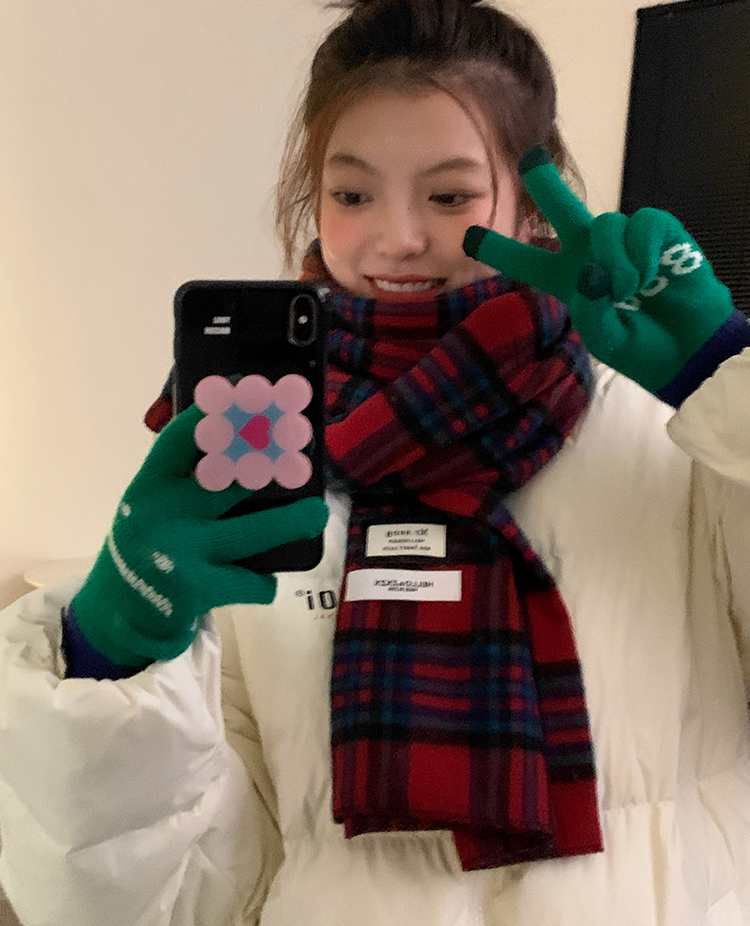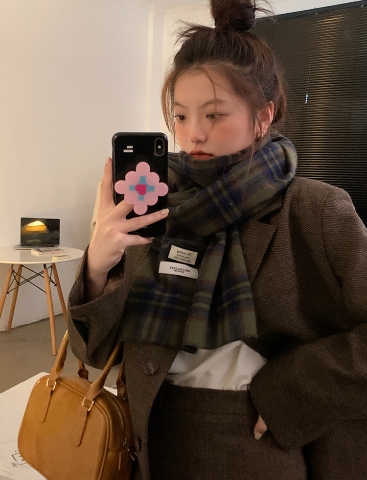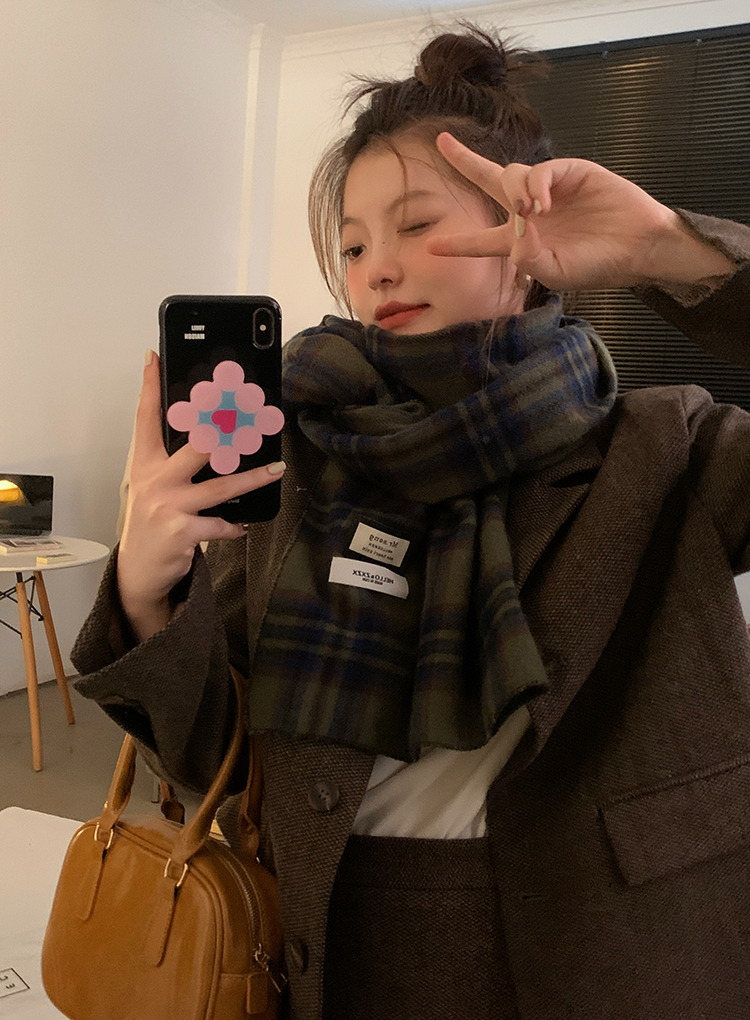 Ретро зимний шарф из искусственного меха, зеленая универсальная удерживающая тепло накидка для школьников, в корейском стиле