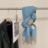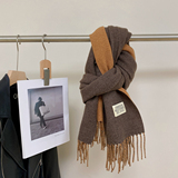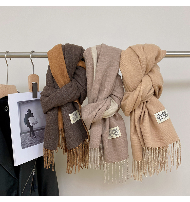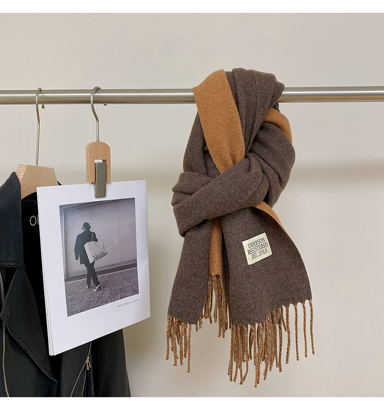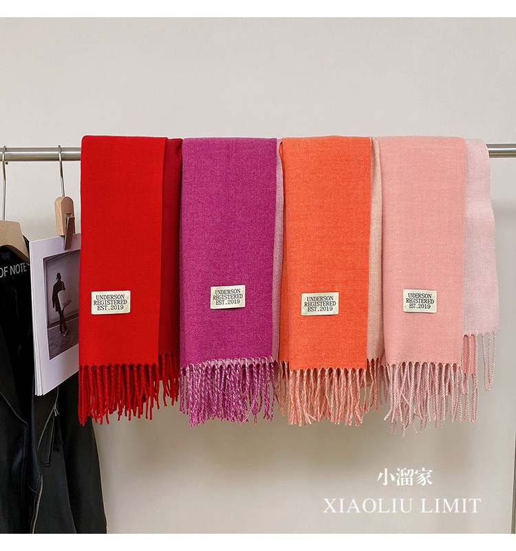 Двусторонний цветной шарф из искусственного меха, шерстяная дорожная удерживающая тепло накидка с кисточками, в корейском стиле