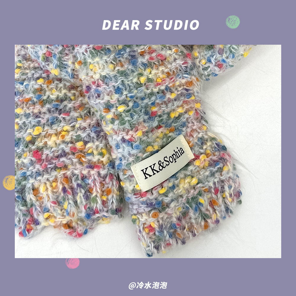 Радужный трикотажный демисезонный милый удерживающий тепло универсальный шарф, в корейском стиле