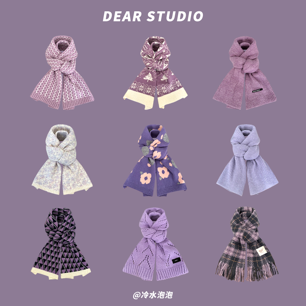 Японский трикотажный удерживающий тепло универсальный сиреневый шарф для влюбленных