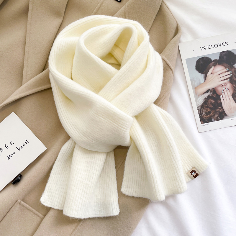 Трикотажный белый удерживающий тепло универсальный шарф подходит для мужчин и женщин, с защитой шеи