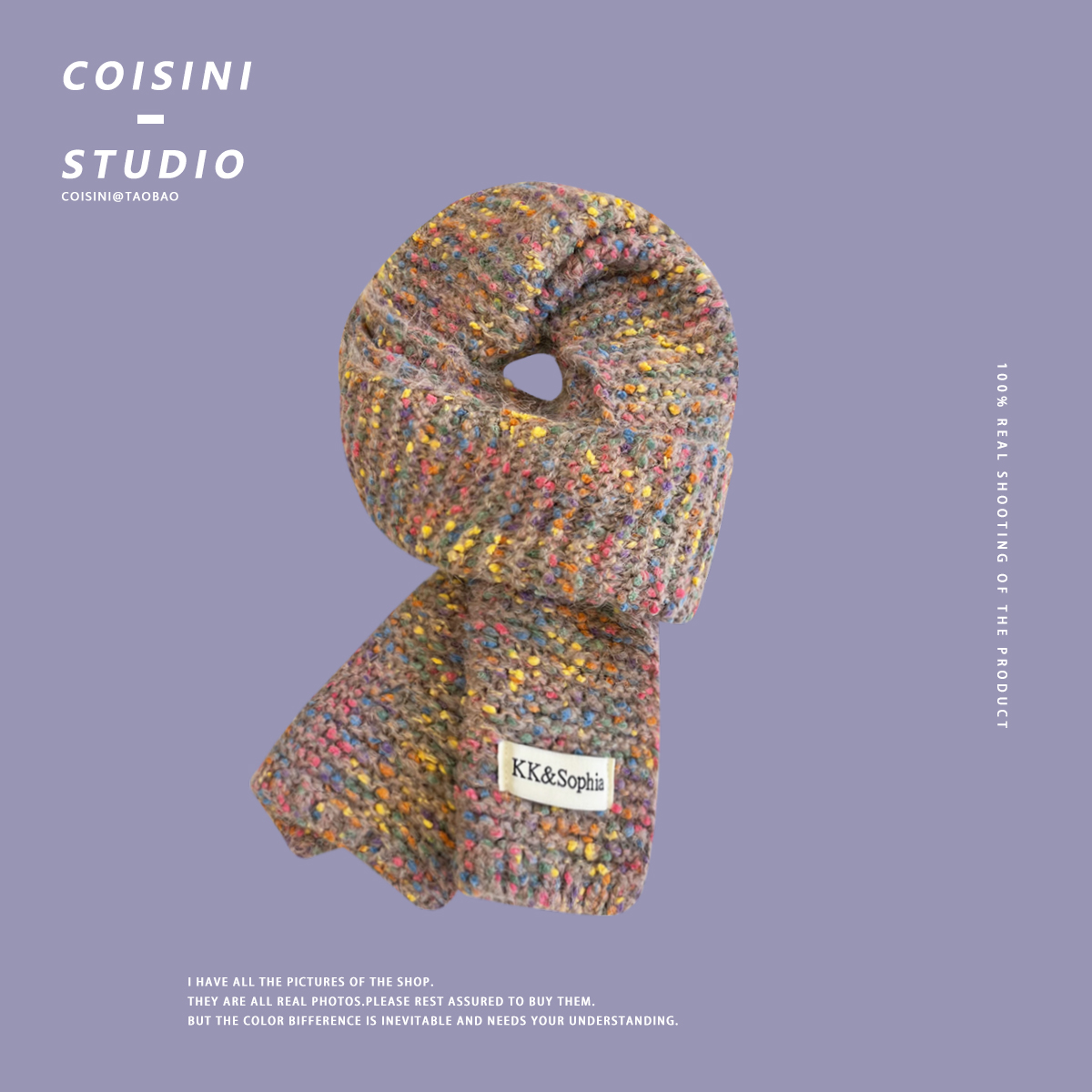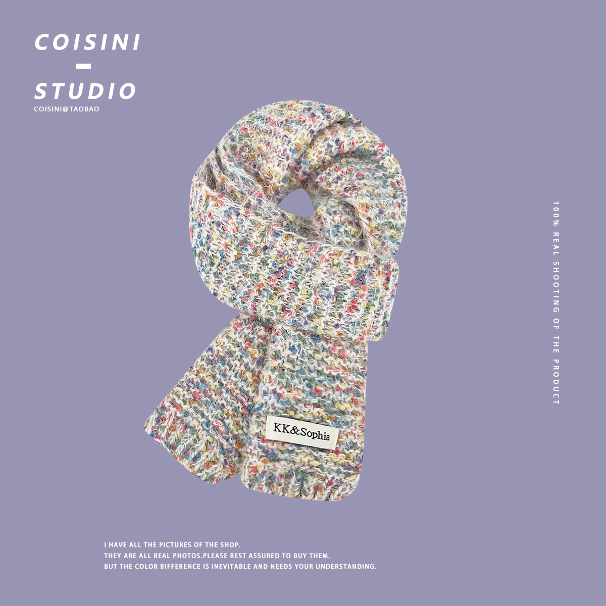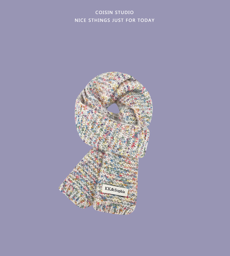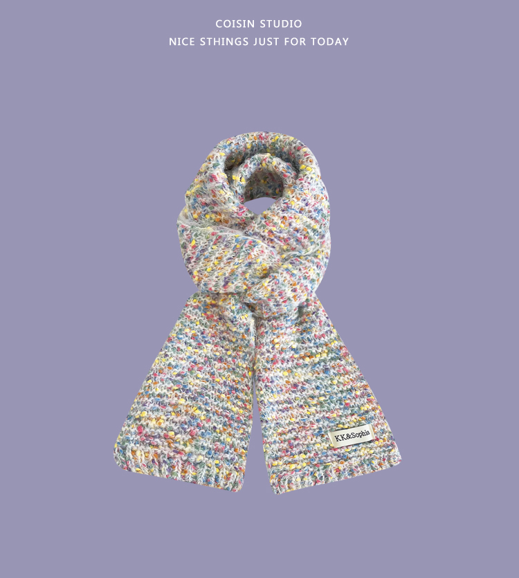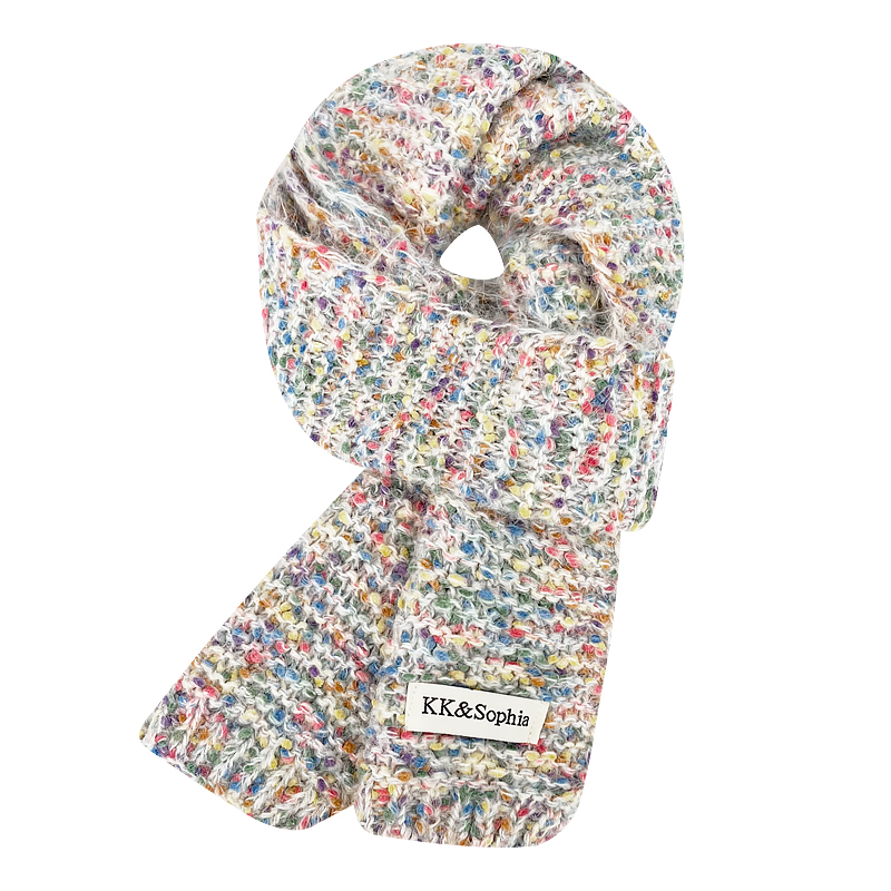 Радужный трикотажный брендовый удерживающий тепло универсальный милый шарф, в корейском стиле