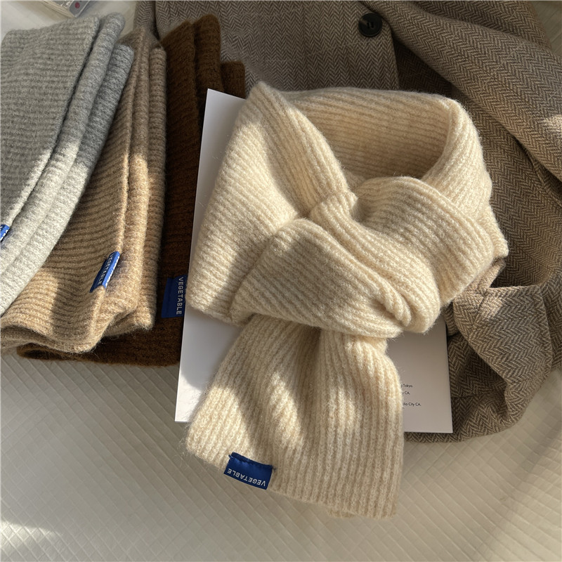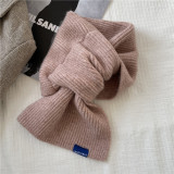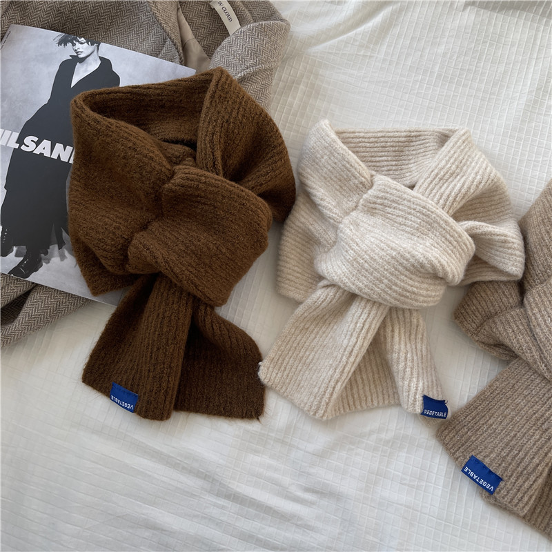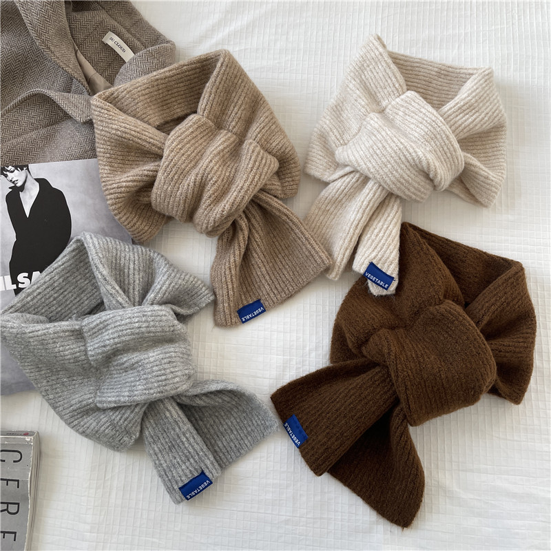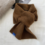 Демисезонный трикотажный универсальный короткий брендовый удерживающий тепло шарф, в корейском стиле
