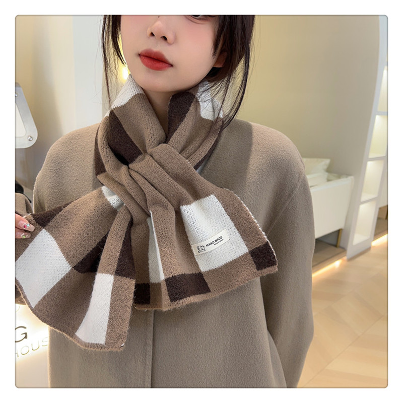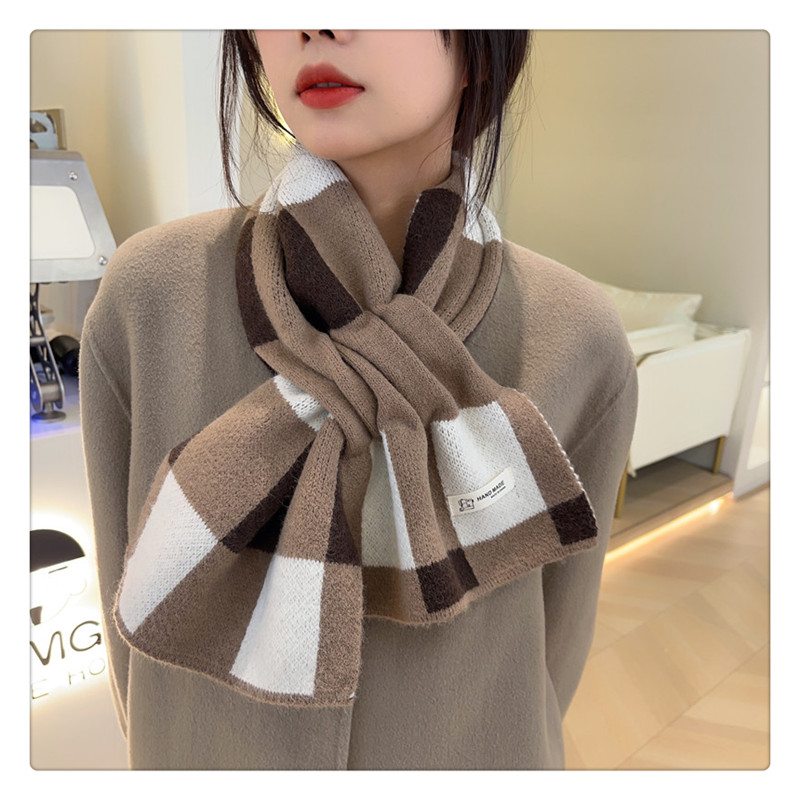 Трикотажный короткий демисезонный универсальный удерживающий тепло шарф, в корейском стиле