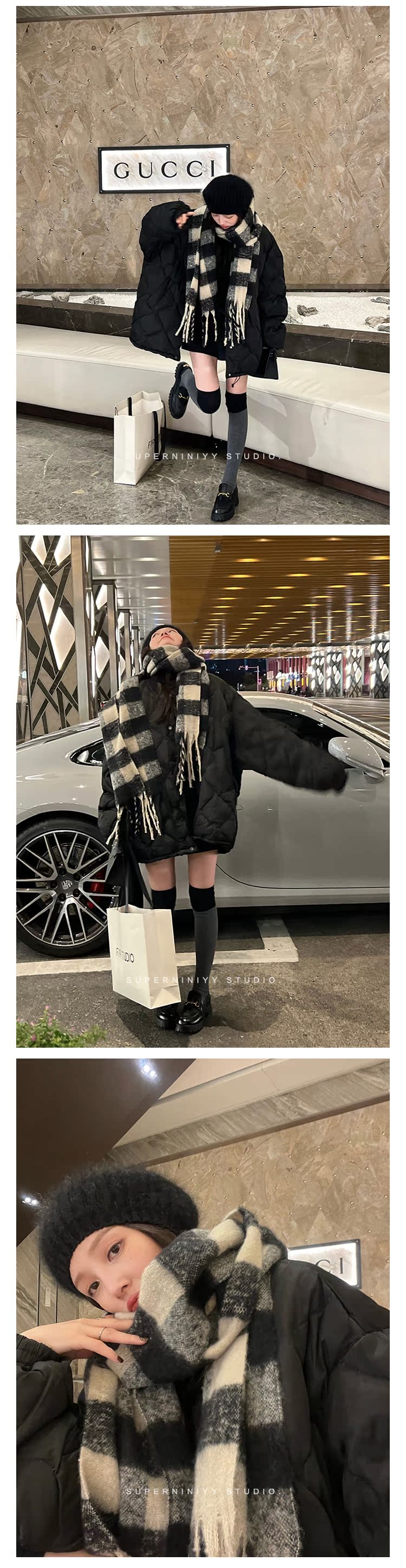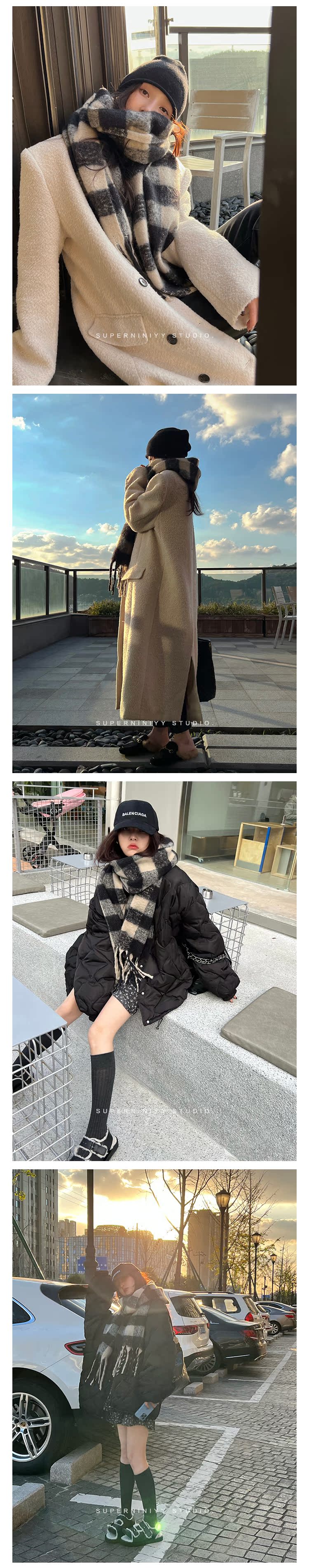 Superniniyy Мягкая клейкая ручная, модная и модная серая сетка Длинные бары, шарфы Soverell Soverell, женщины осень и зима