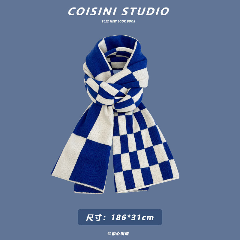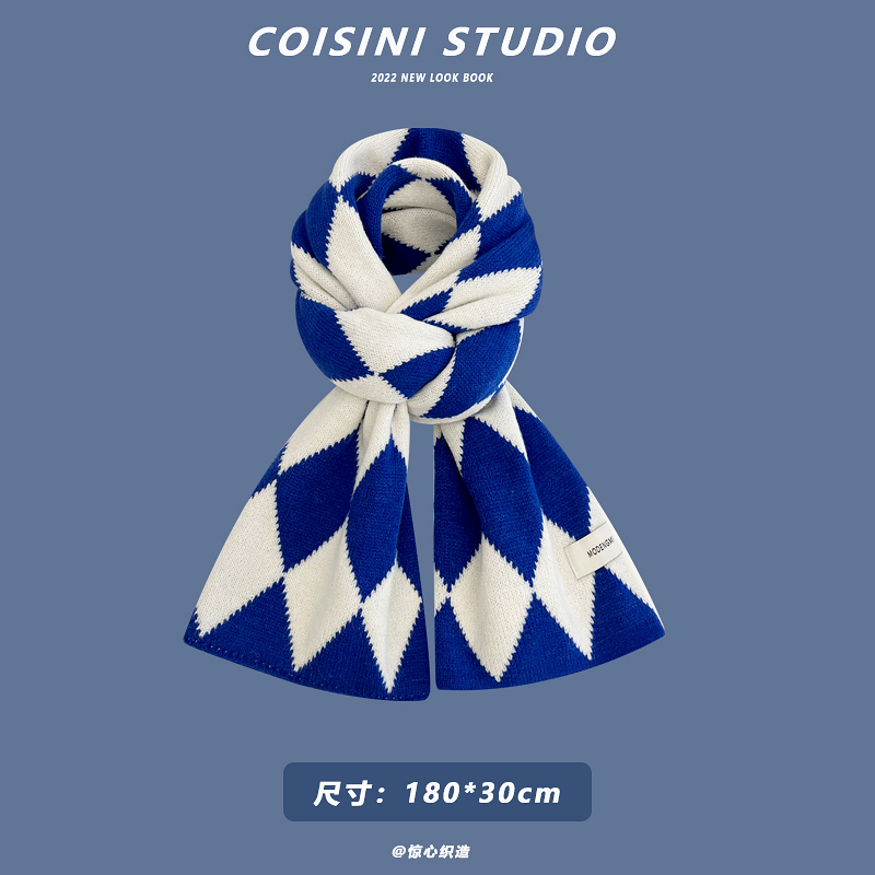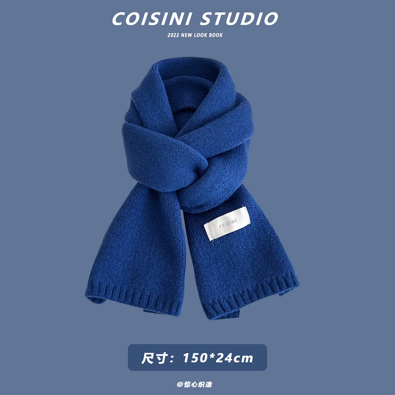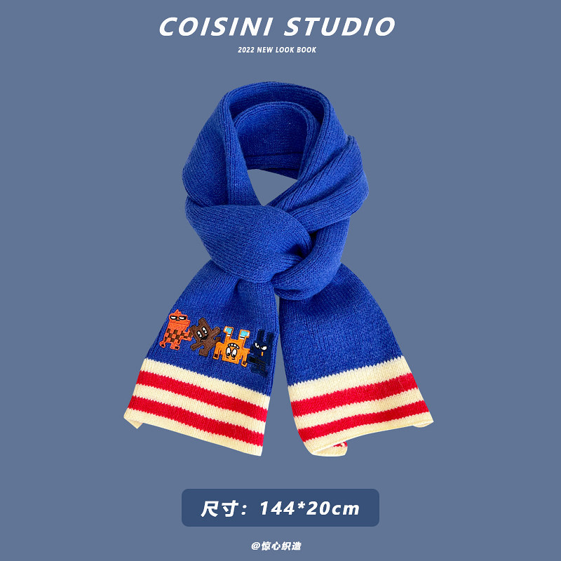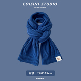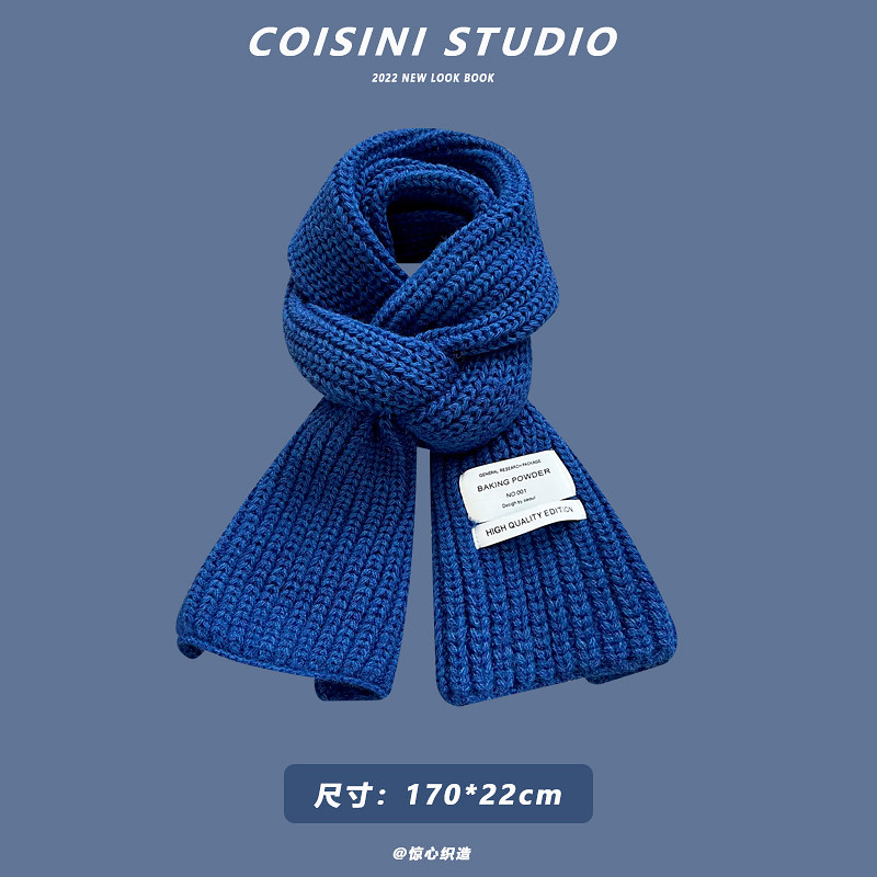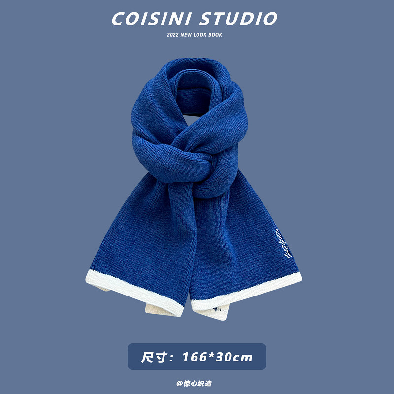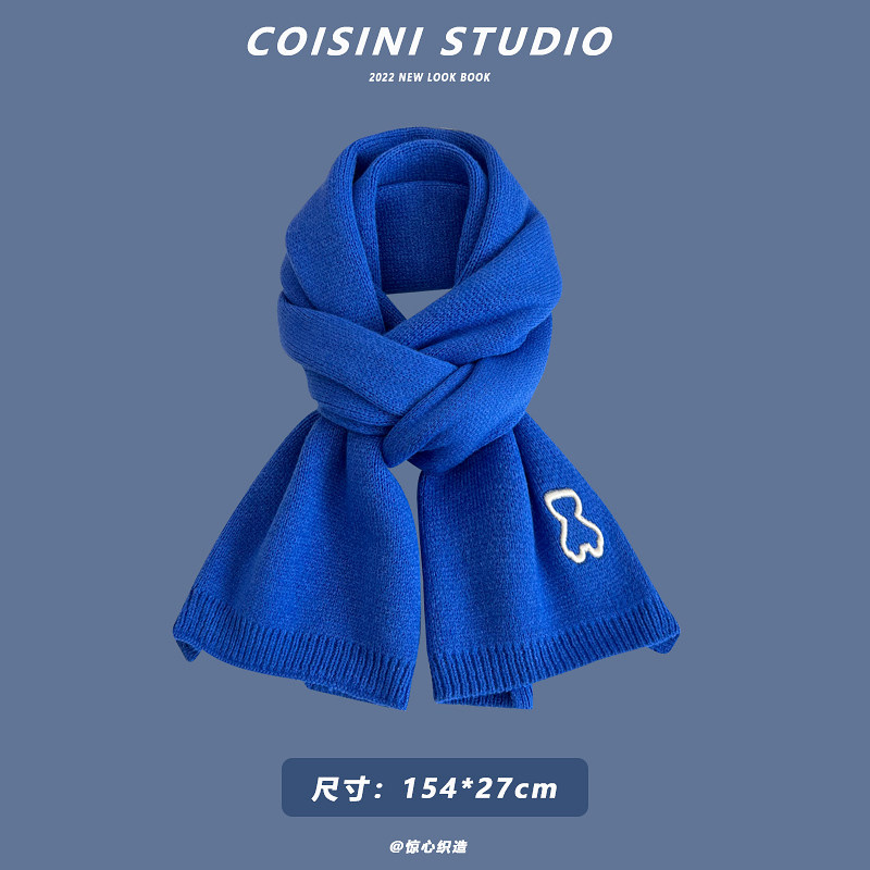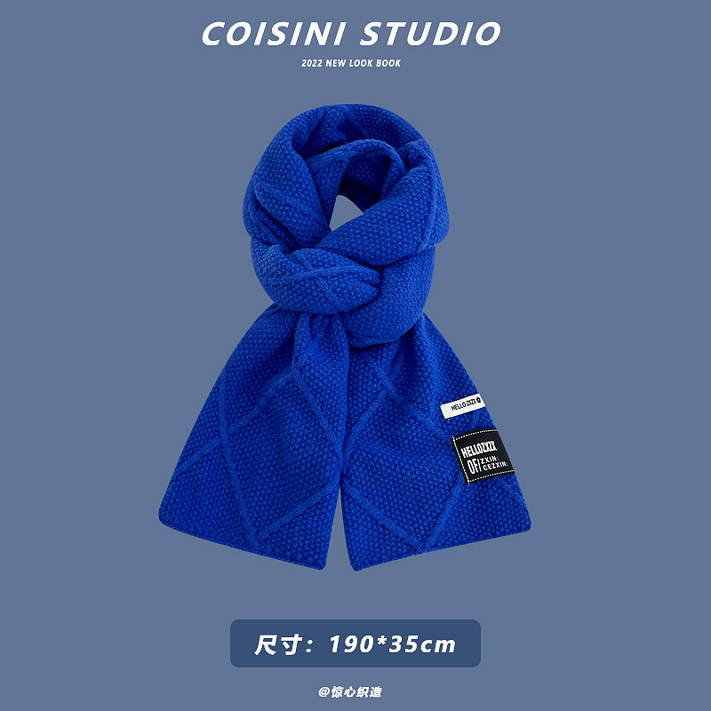 Синий удерживающий тепло универсальный трикотажный шарф с буквами