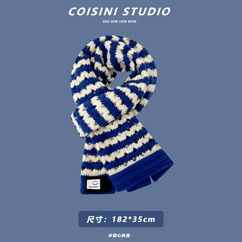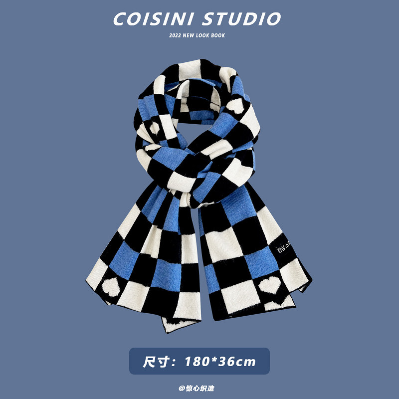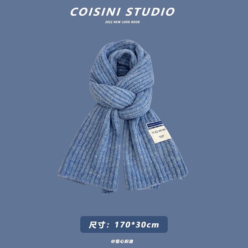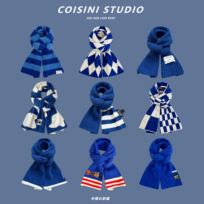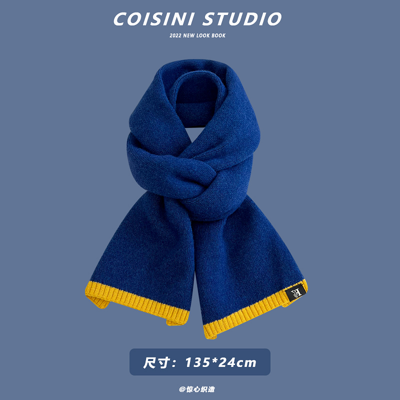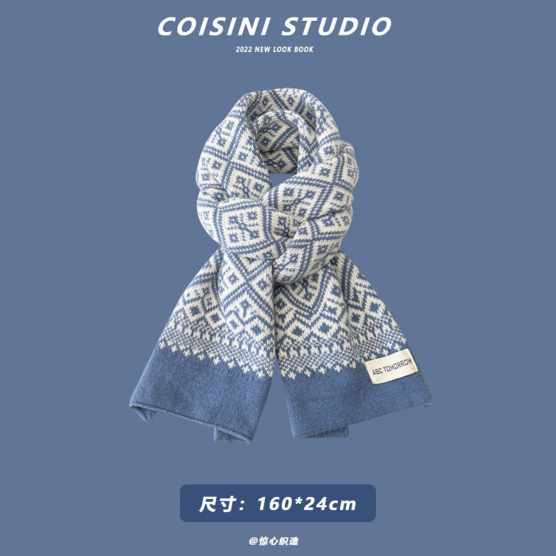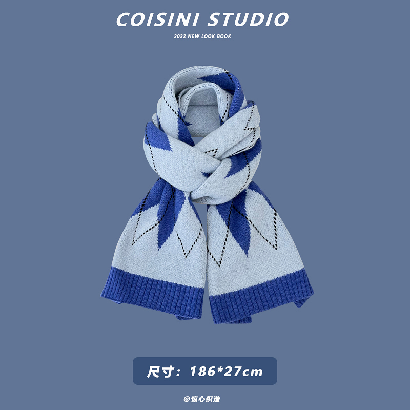 Синий удерживающий тепло универсальный трикотажный шарф с буквами