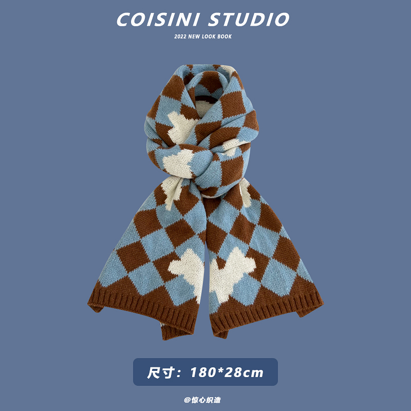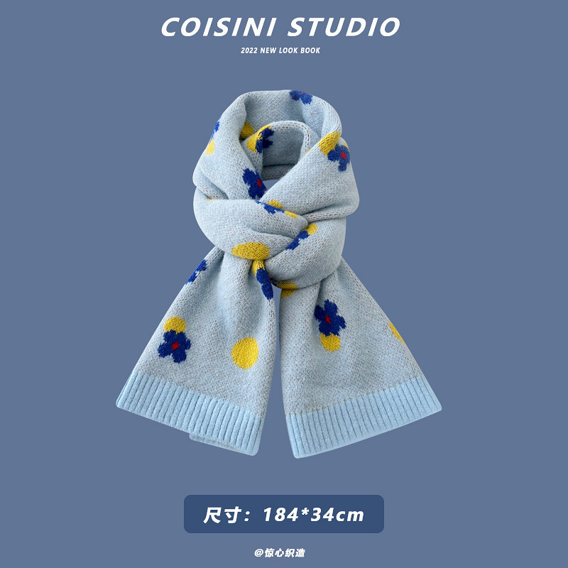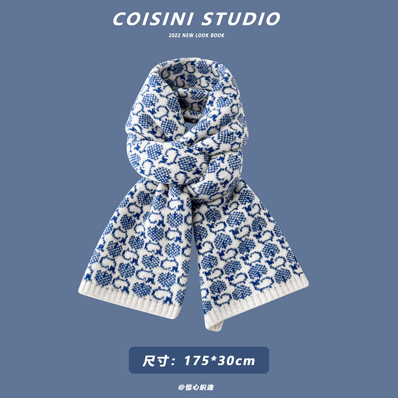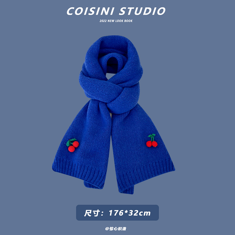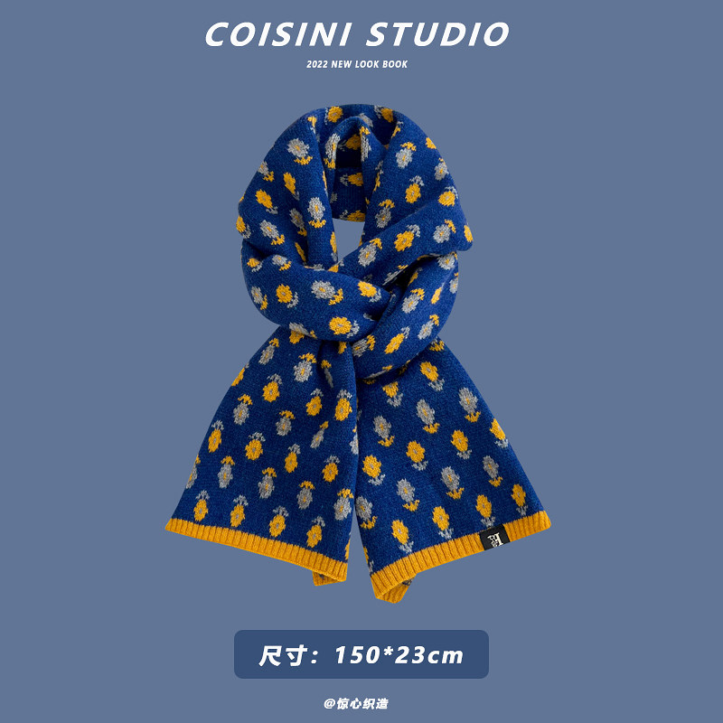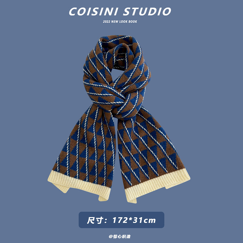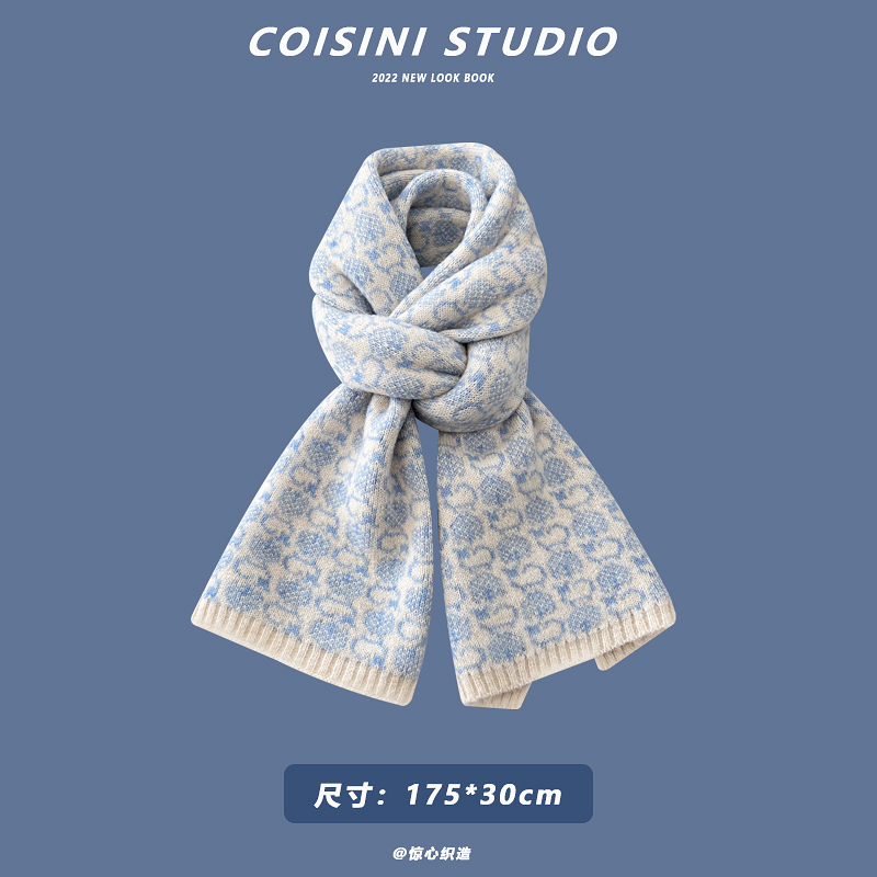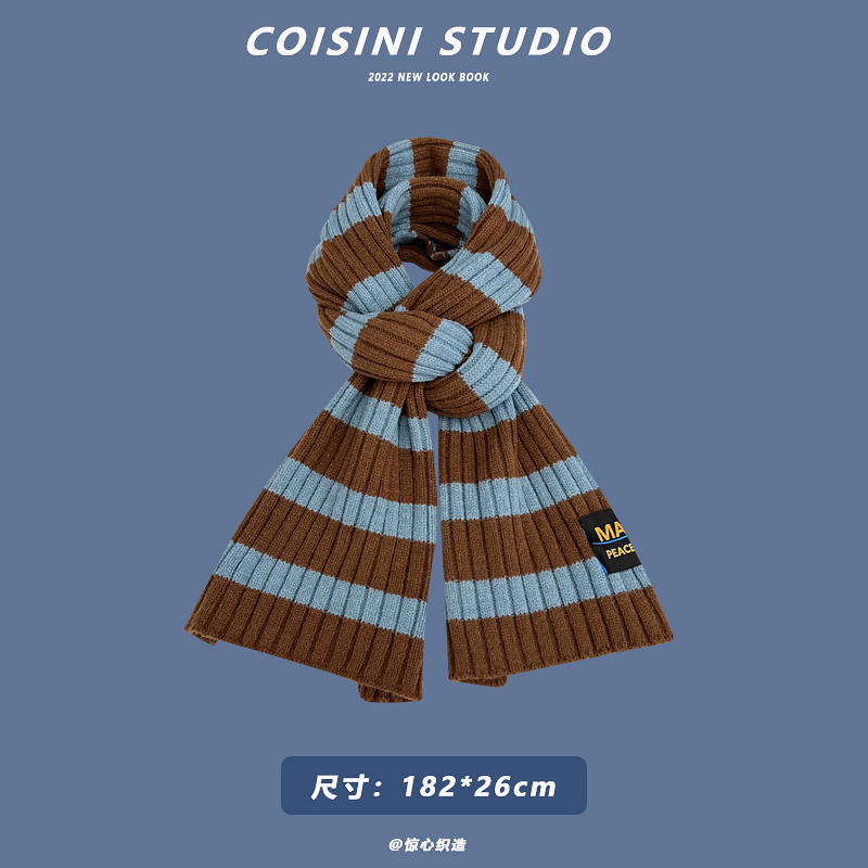 Синий удерживающий тепло универсальный трикотажный шарф с буквами