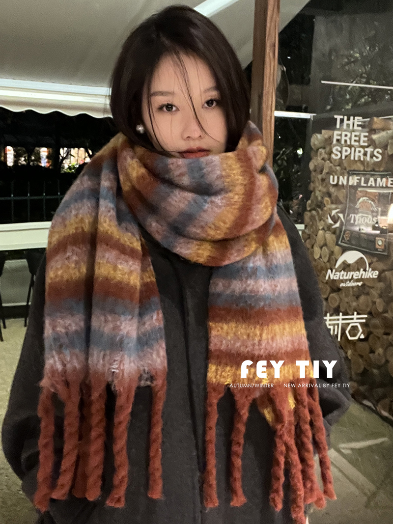 Удерживающий тепло ретро зимний шарф, бархатная накидка из искусственного меха, в корейском стиле, увеличенная толщина