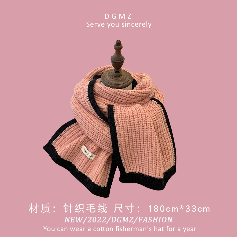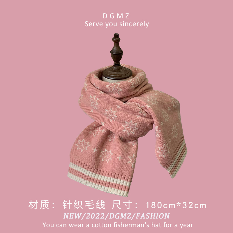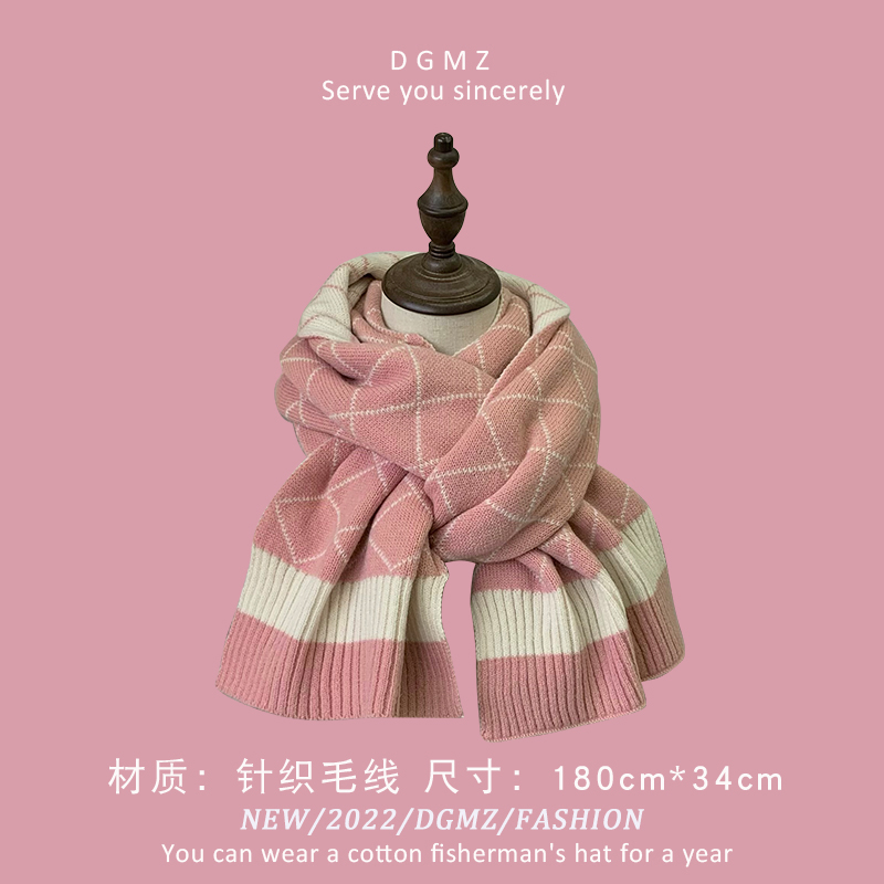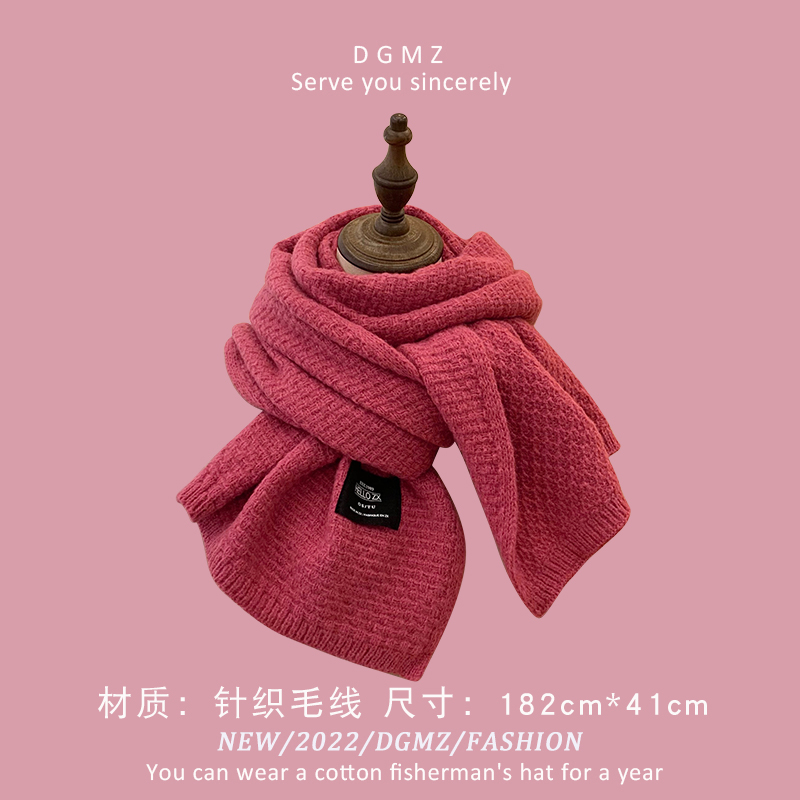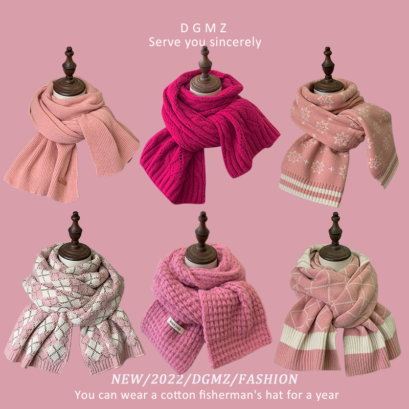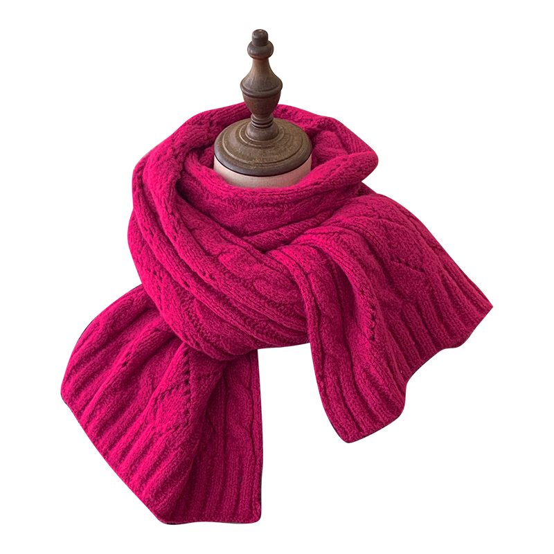 Розовый удерживающий тепло милый красный трикотажный шарф, в корейском стиле