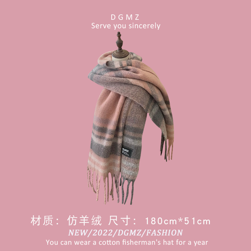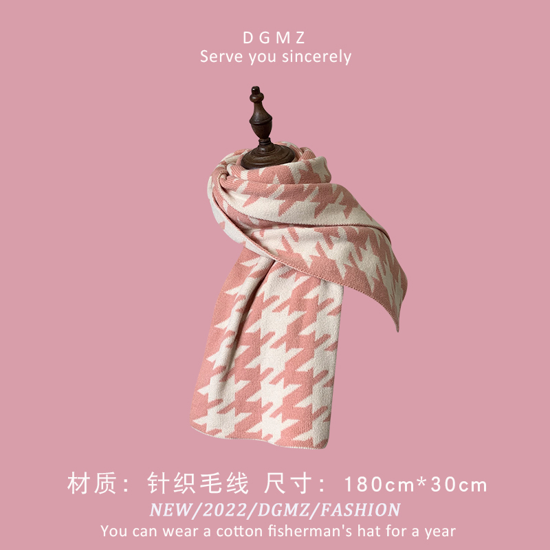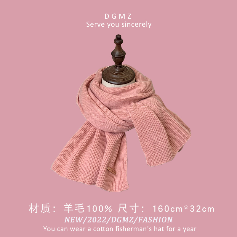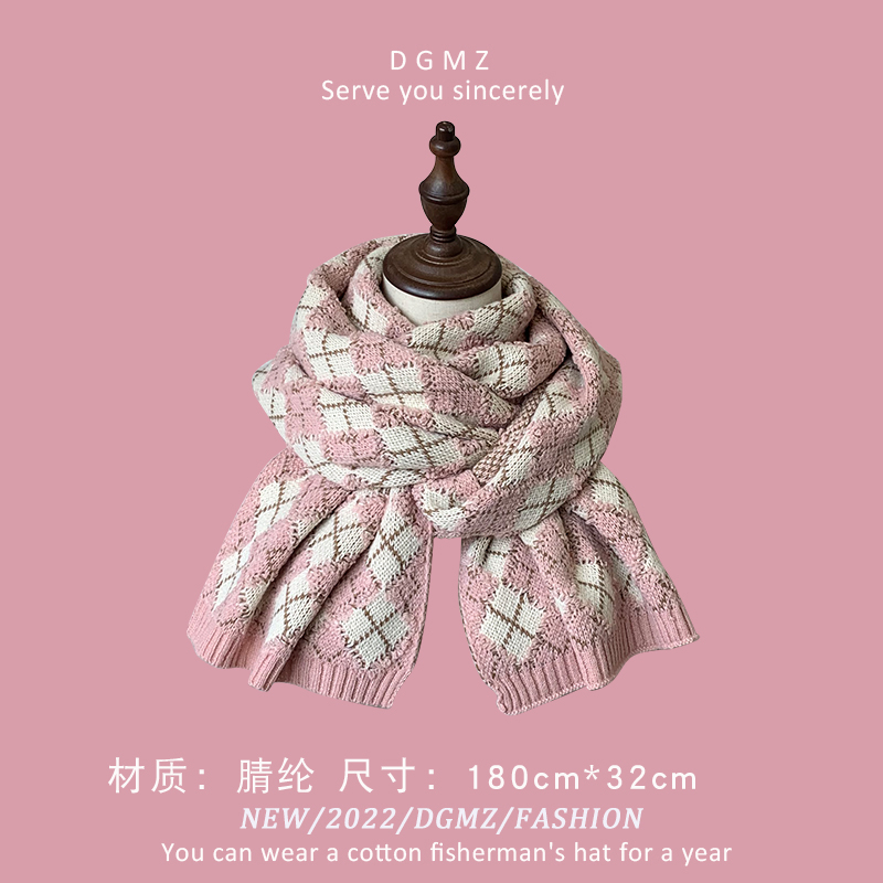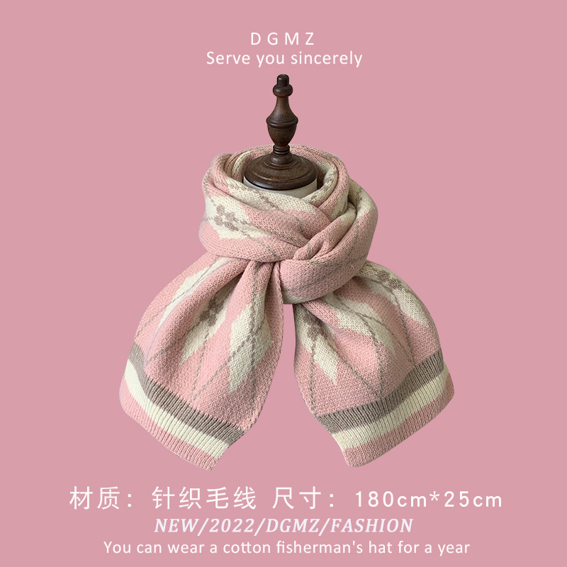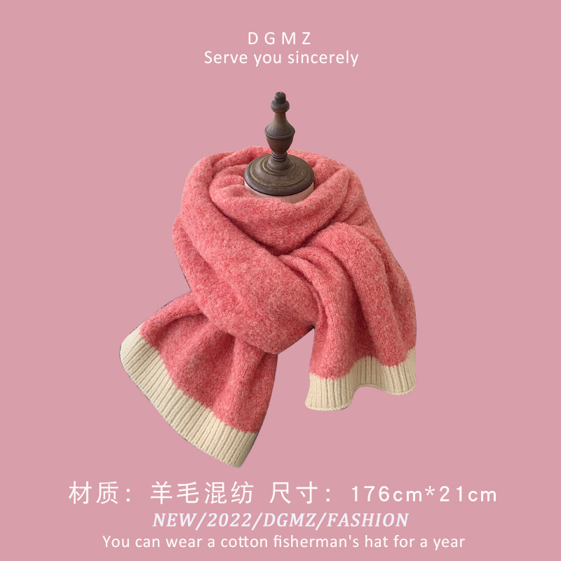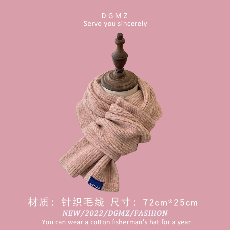 Розовый удерживающий тепло милый красный трикотажный шарф, в корейском стиле
