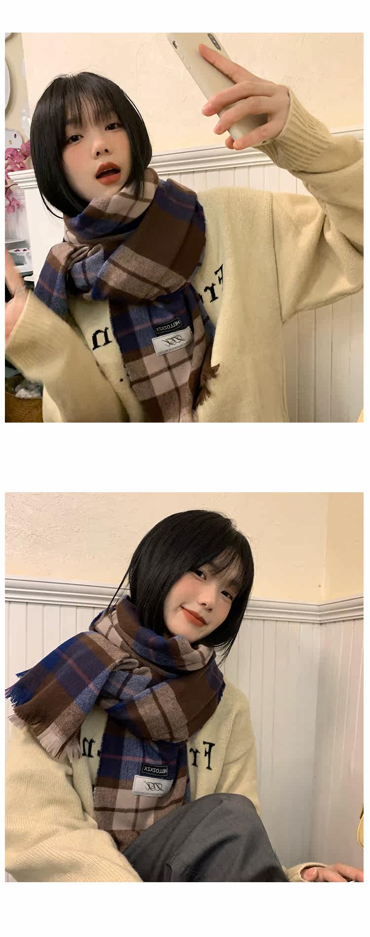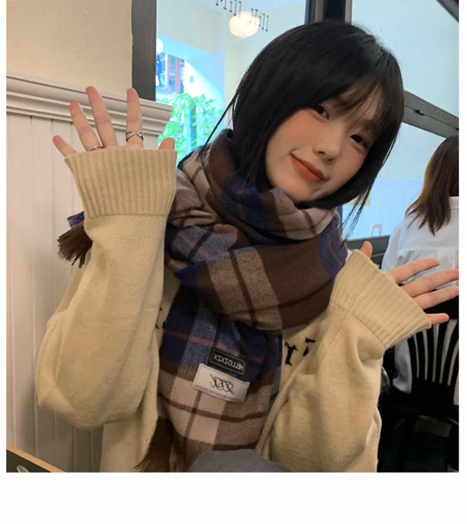 Ретро зимний японский шарф, удерживающая тепло универсальная накидка для школьников, изысканный стиль
