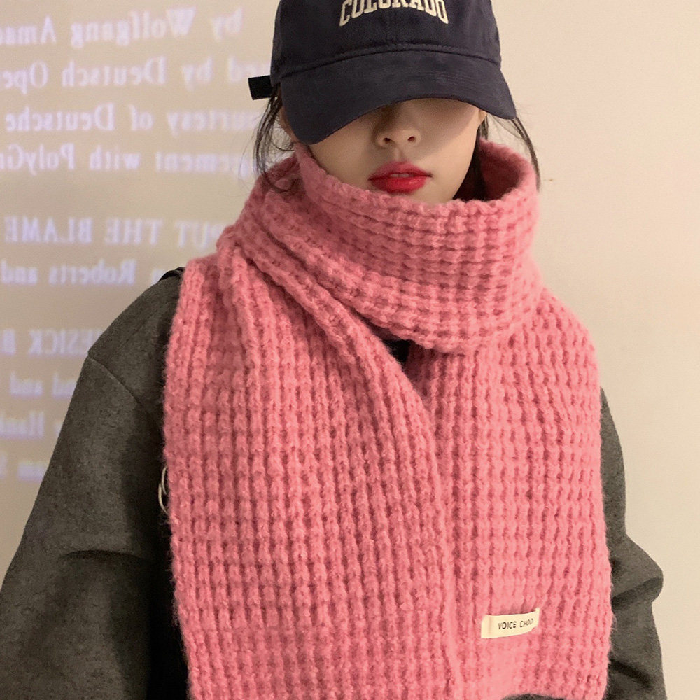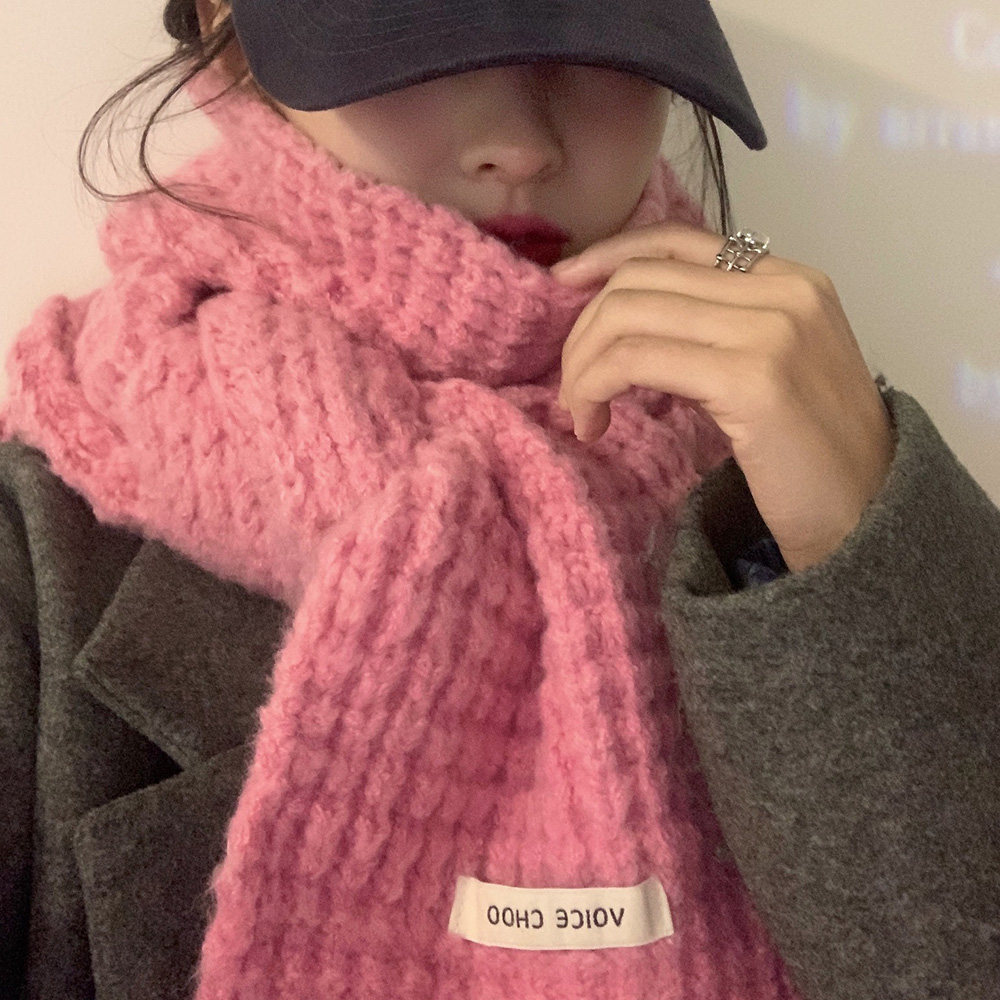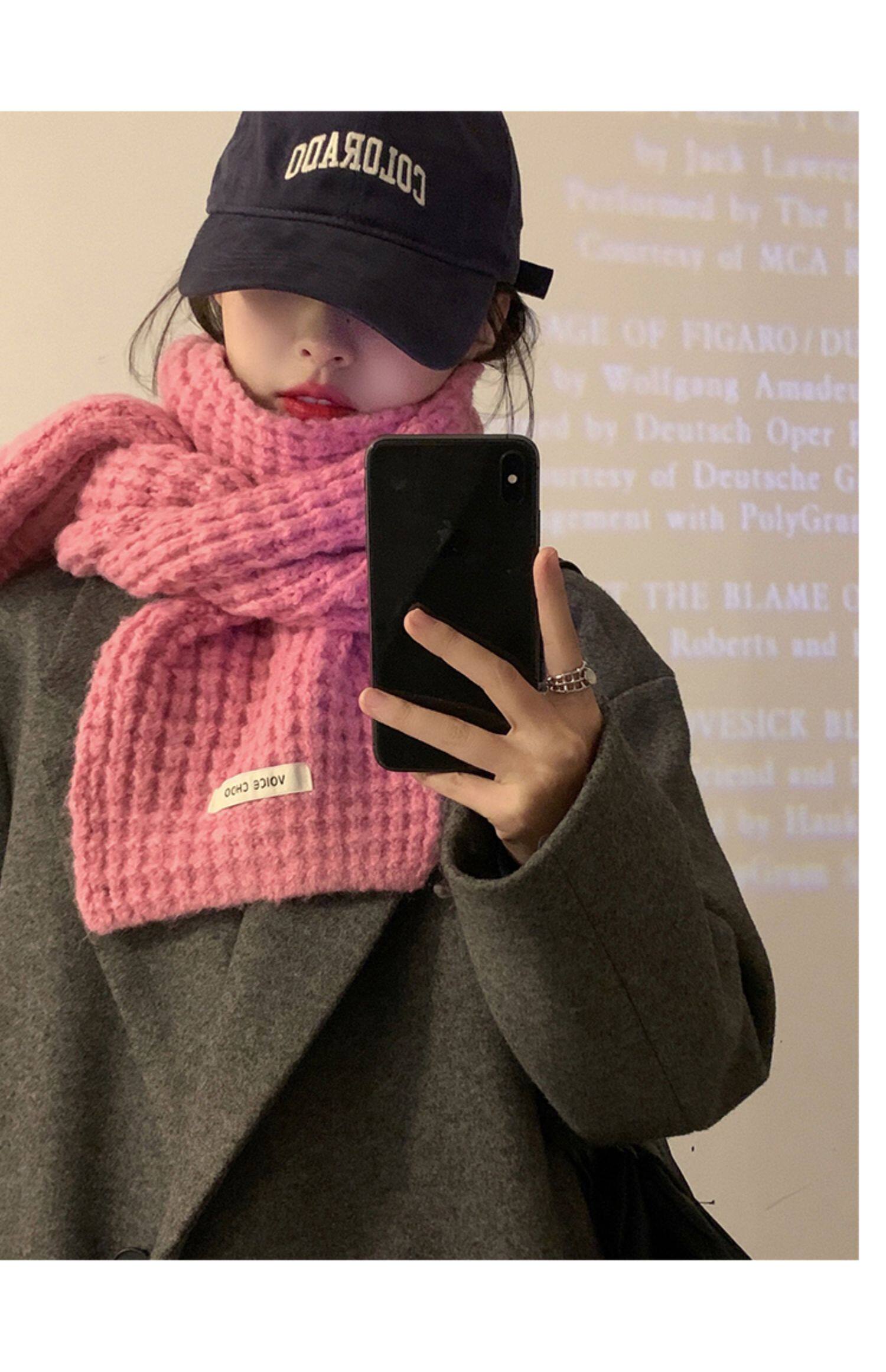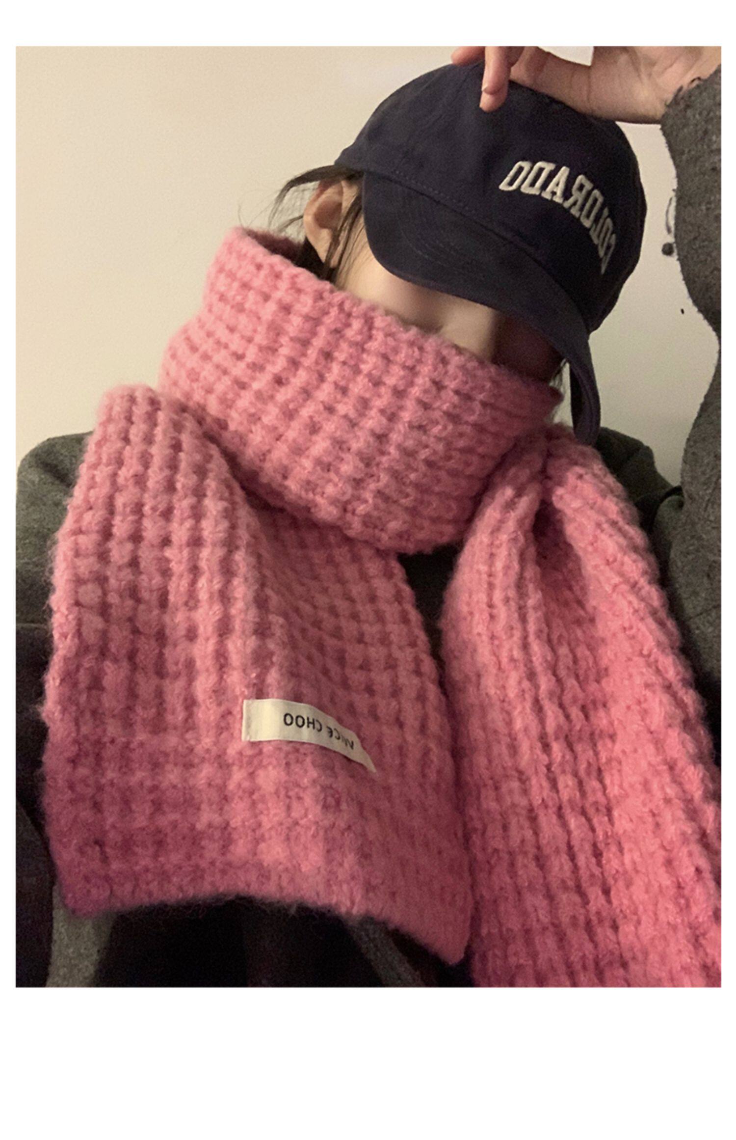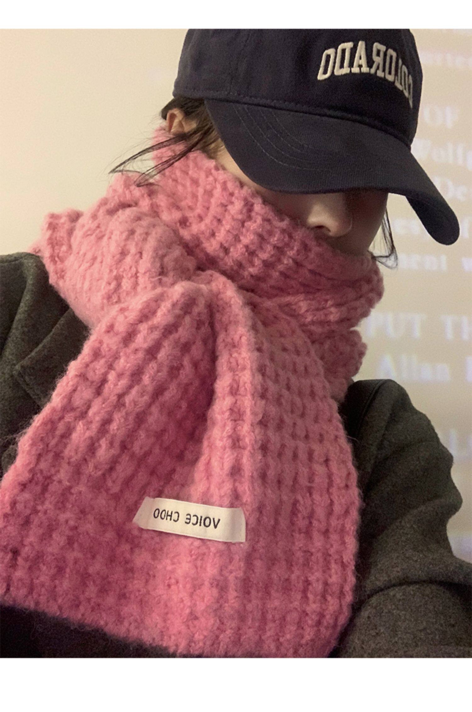 Розовый трикотажный зимний универсальный утепленный шарф, в корейском стиле, изысканный стиль
