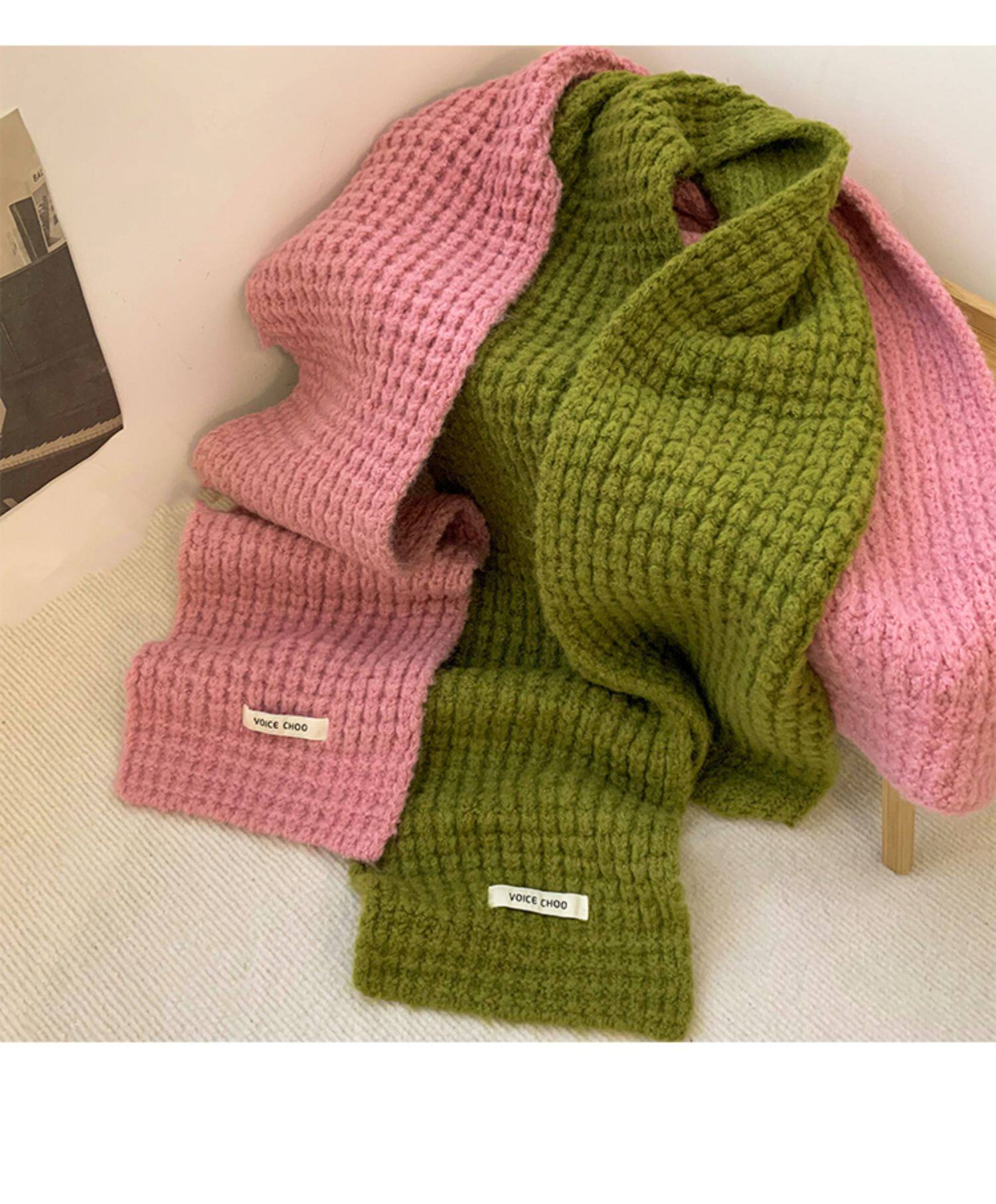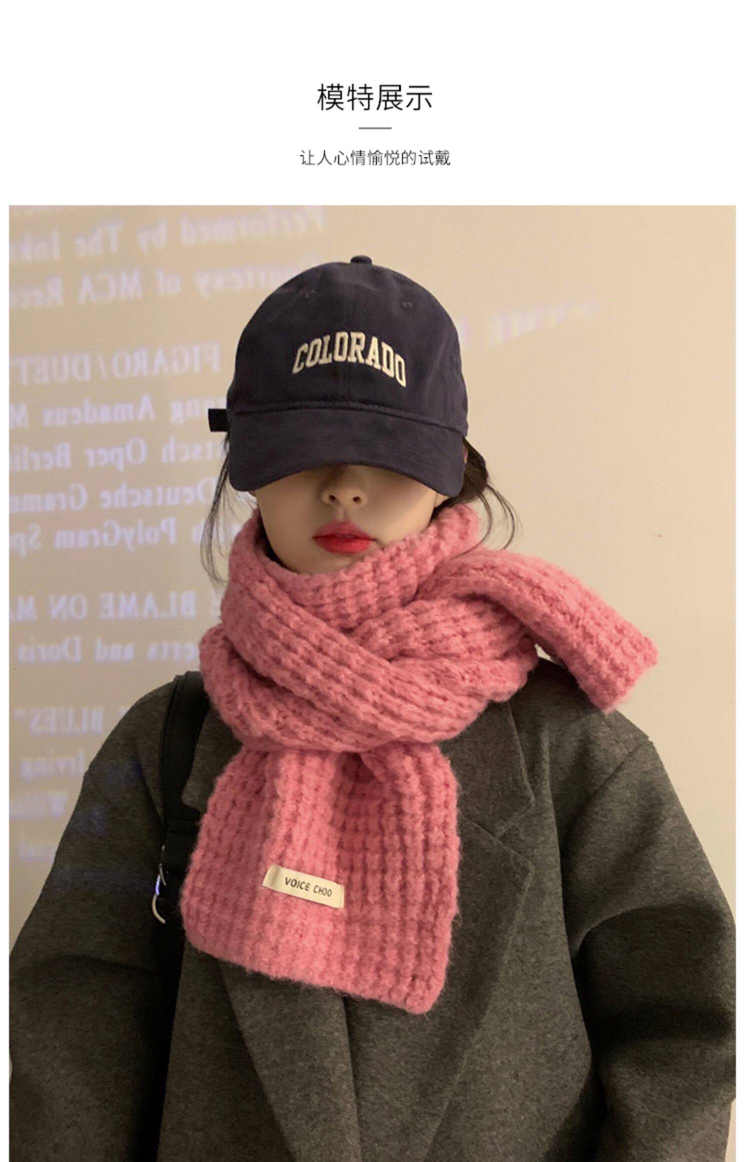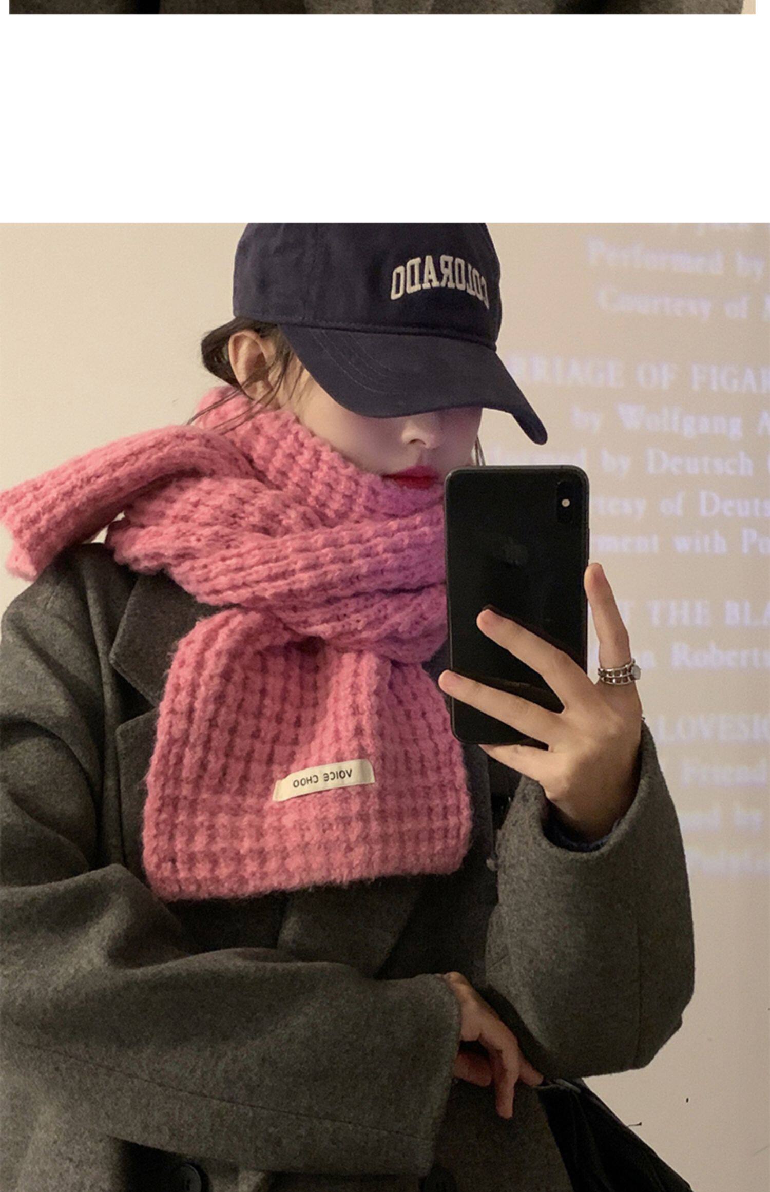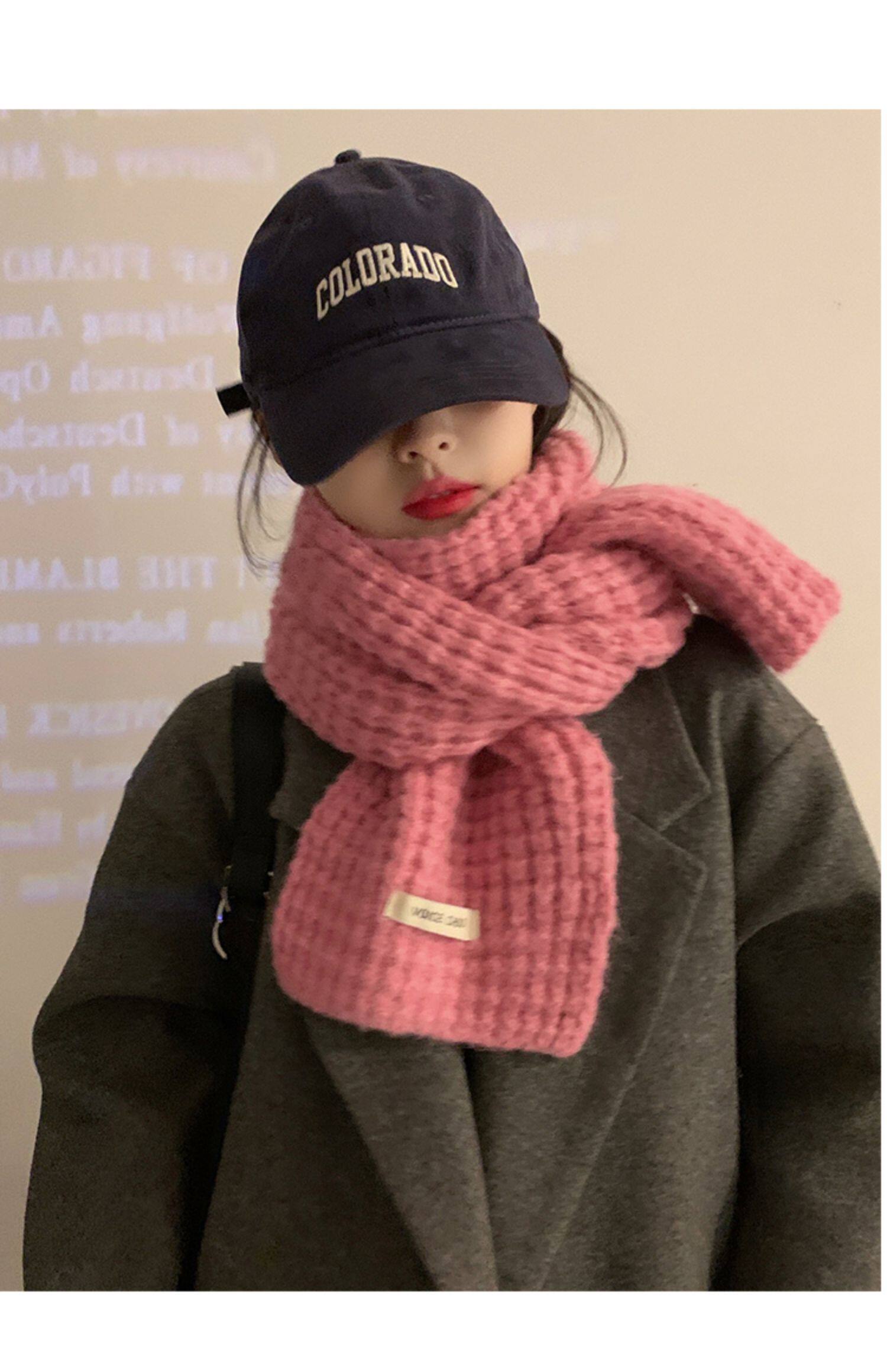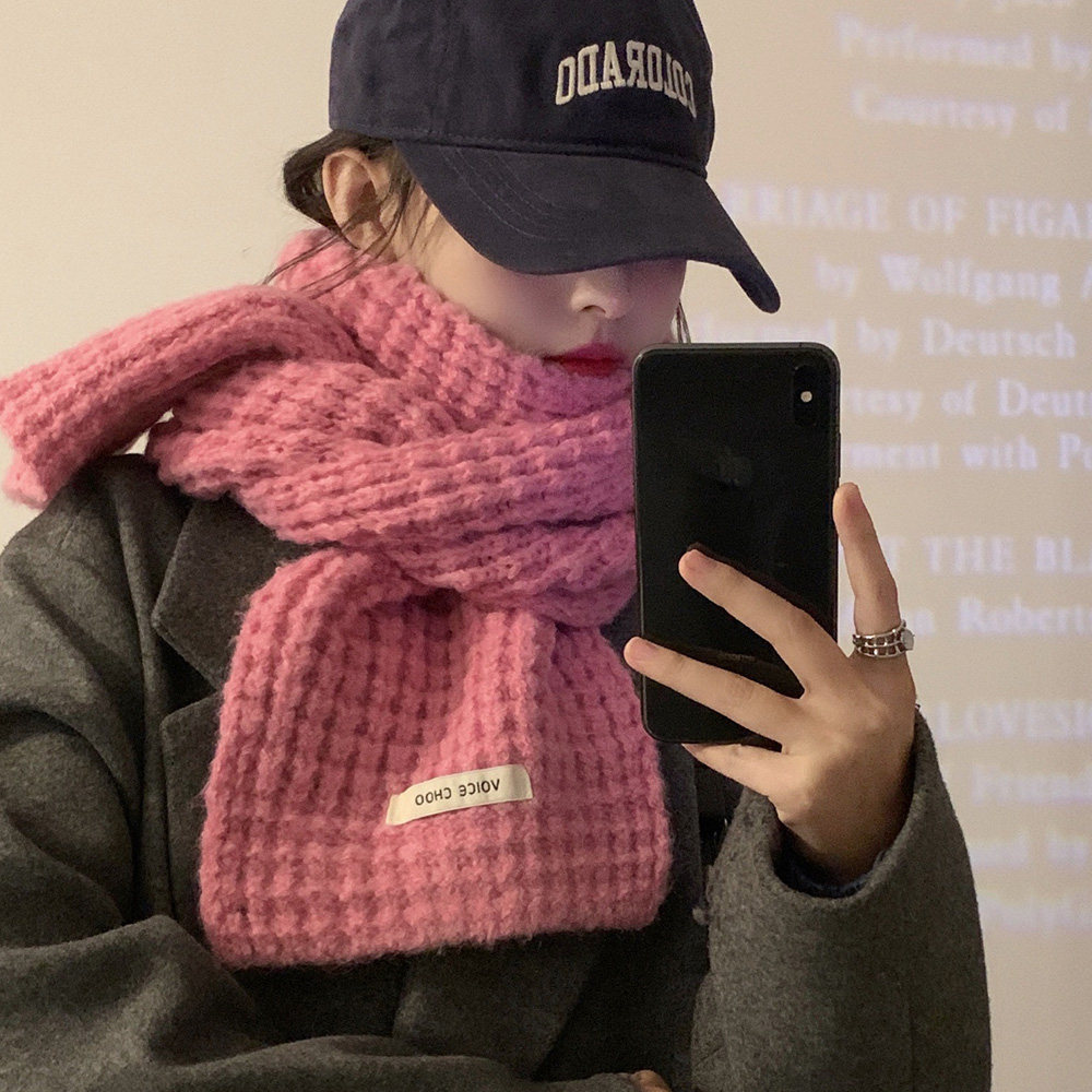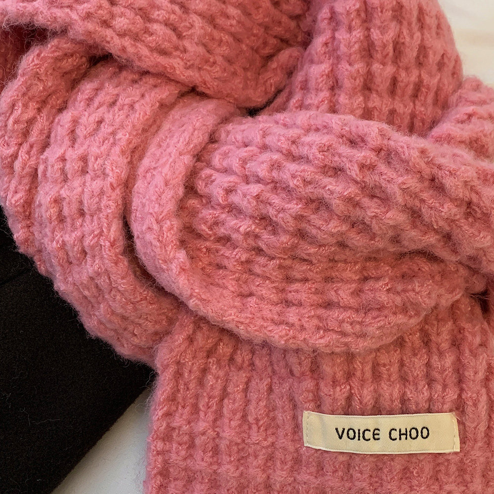 Розовый трикотажный зимний универсальный утепленный шарф, в корейском стиле, изысканный стиль